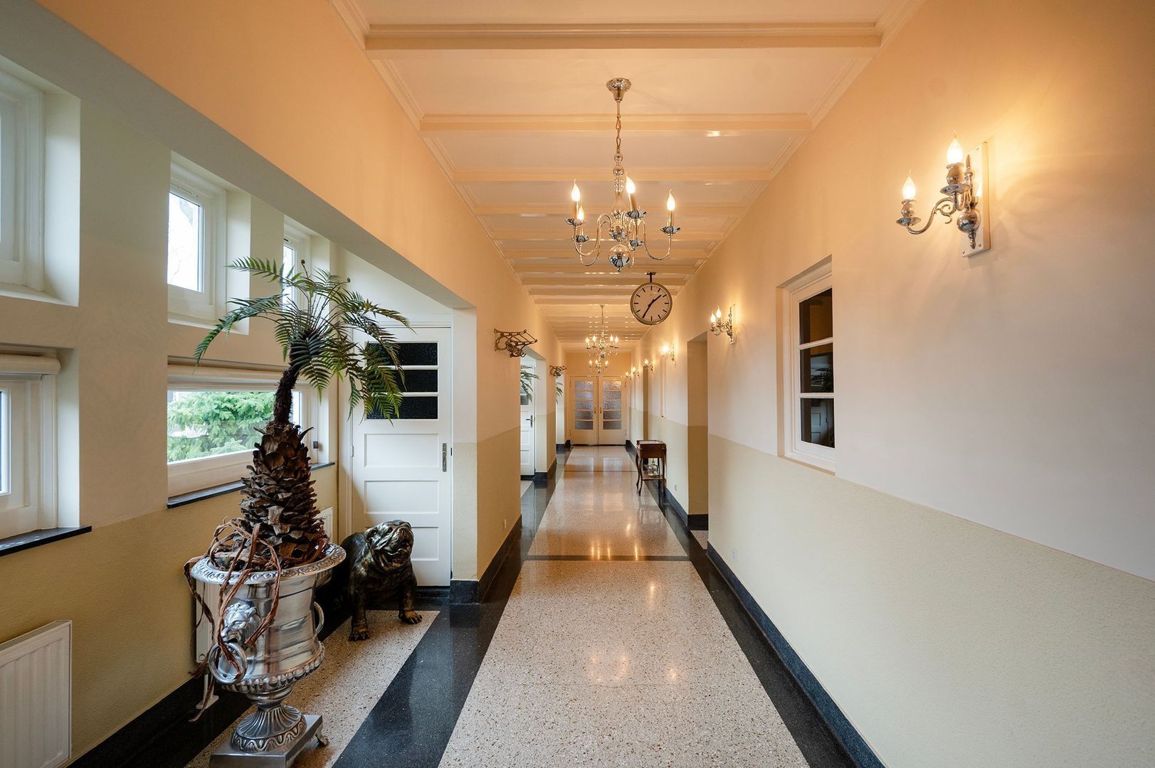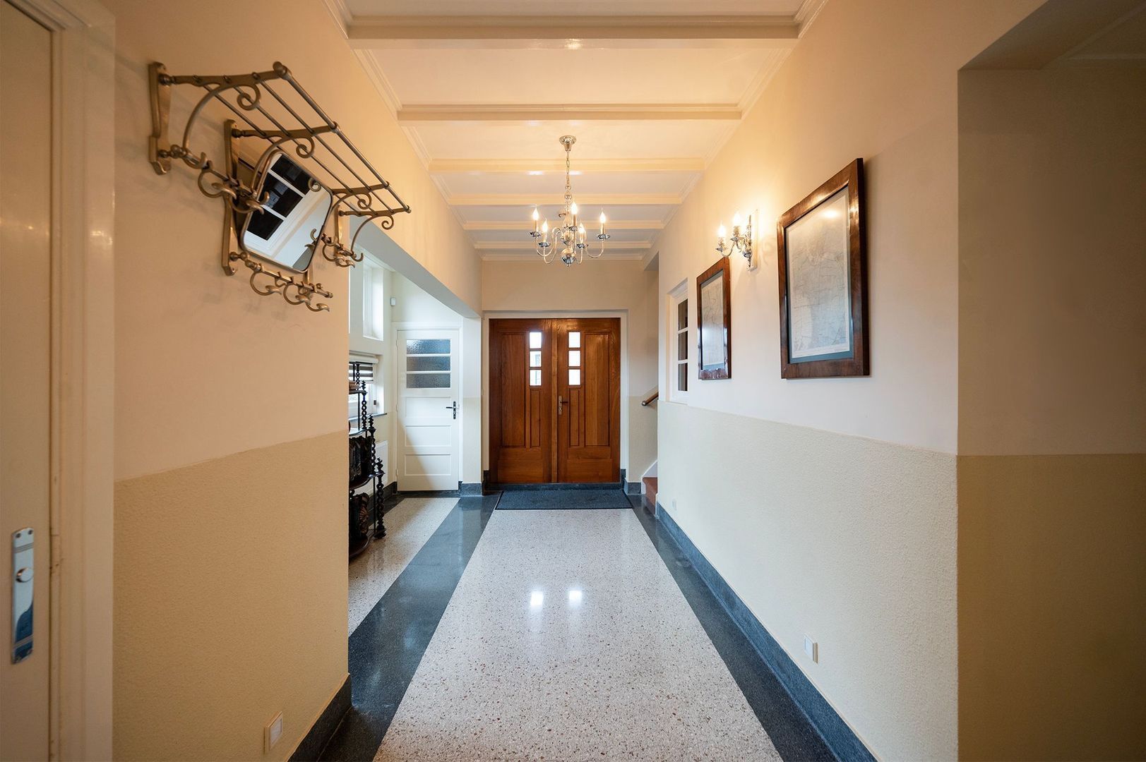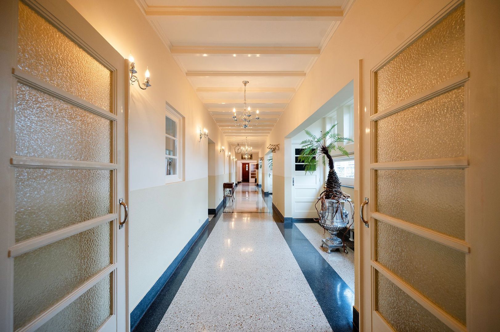 Authentieke details zoals glas-in-loodramen en paneeldeuren