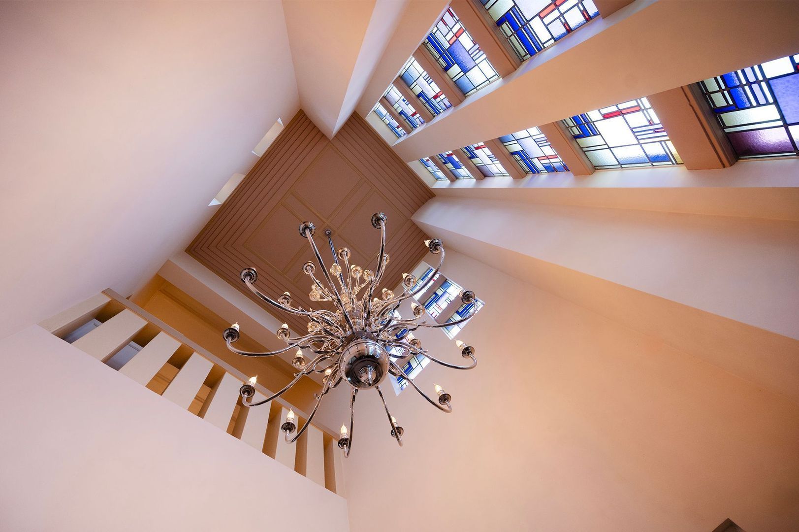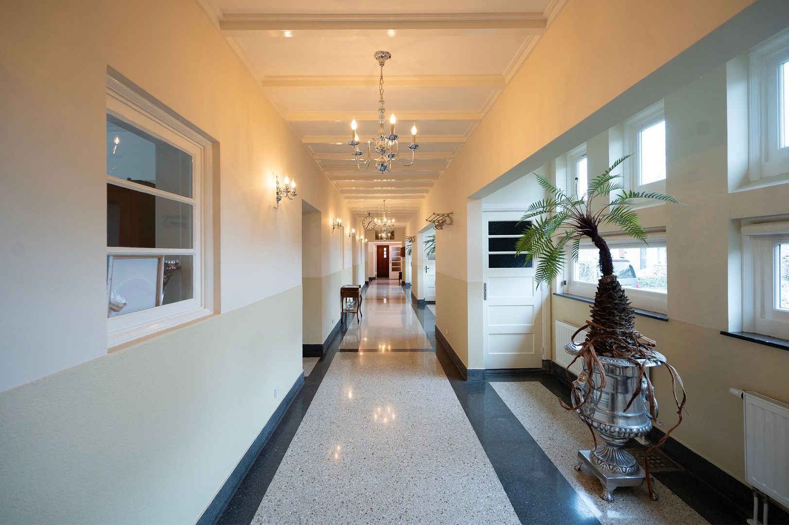 De oorspronkelijke gangstructuur van het schoolgebouw is hier nog goed herkenbaar en draagt bij aan het karakter en de bijzondere sfeer van deze verdieping.