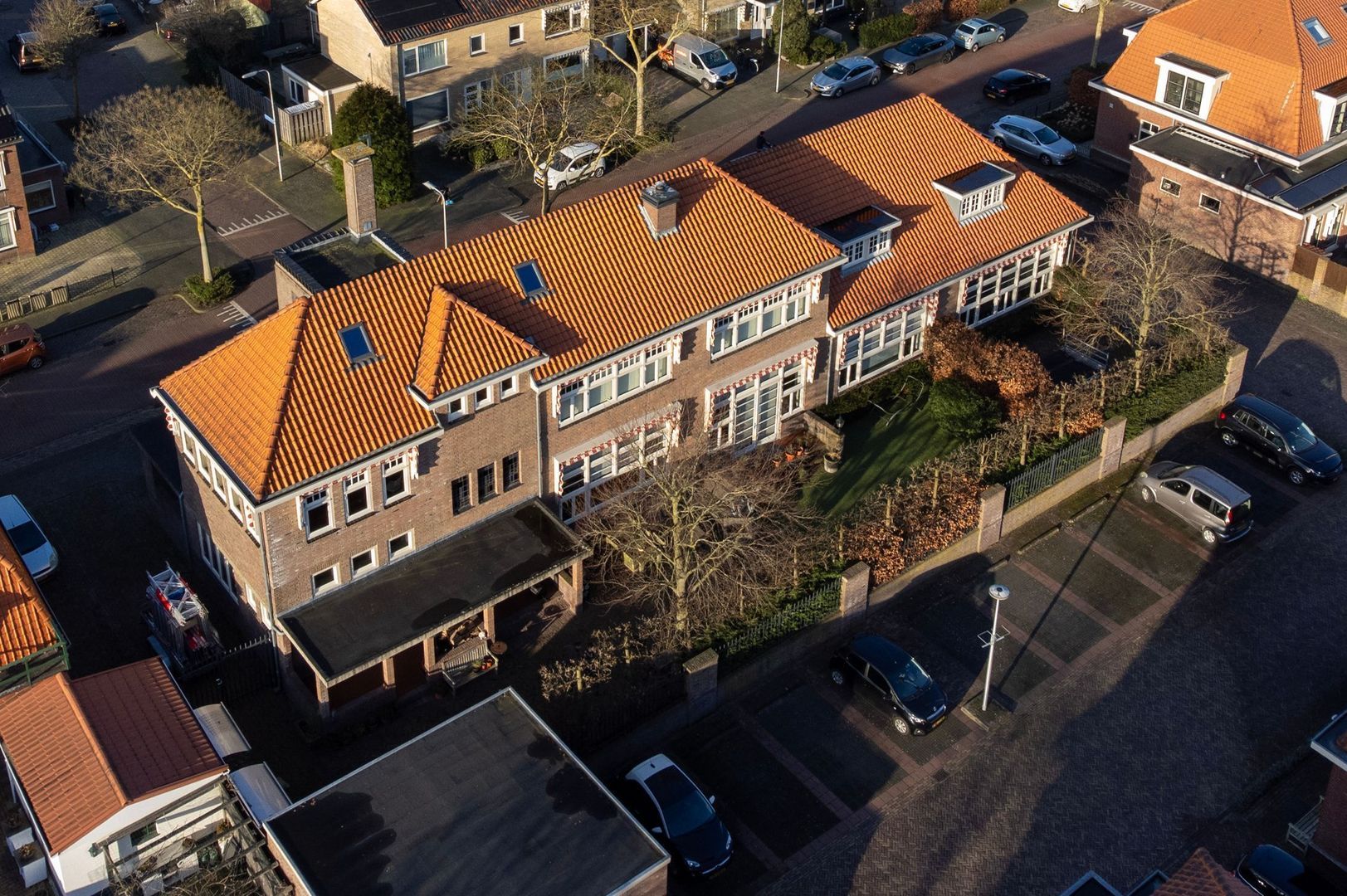 Aan een rustige straat in Alphen aan den Rijn staat dit bijzondere gemeentelijke monument: de voormalige school “De Zonnebloem”. Het gebouw werd in 1931 ontworpen door de architecten W. Brouwer en W.B. Kroon in de stijl van het zakelijk expressionisme (Amsterdamse School) en vormt nog altijd een markant en herkenbaar onderdeel van de omgeving. In de loop der jaren is het schoolgebouw getransformeerd tot een zeer ruim woonhuis, waarbij veel van de oorspronkelijke architectonische elementen behouden zijn gebleven. Denk aan de monumentale entree met glas-in-lood, de karakteristieke gangenstructuur, paneeldeuren, hoge plafonds en de indrukwekkende kapconstructie.