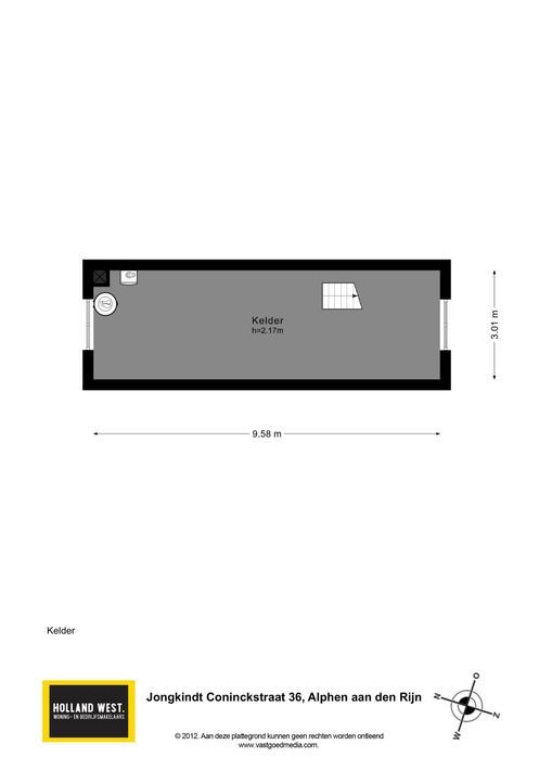 Onder een deel van het gebouw bevindt zich een praktische kelderruimte van circa 29 m² met een hoogte van ongeveer 2,17 meter. De kelder is bereikbaar via een vaste trap en beschikt over een waterpunt. Deze ruimte is ideaal te gebruiken als voorraadruimte, wijnkelder, hobbyruimte of technische ruimte.