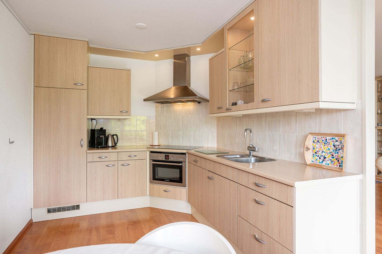 De keuken staat in halfopen verbinding met de woonkamer. Deze keuken is uitgerust met inbouwapparatuur, waaronder een combimagnetron, vaatwasser, (2-fase) inductieplaat, koelkast, vriezer en een afzuigkap. Het werkblad biedt ruim voldoende plek om te koken, bakken of gezellig borrelen.