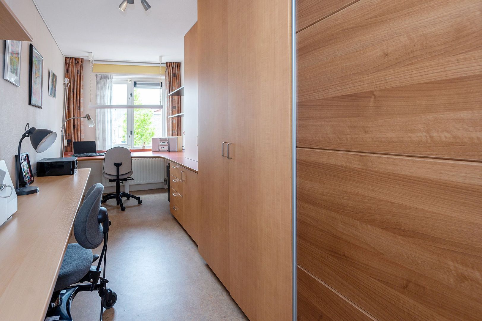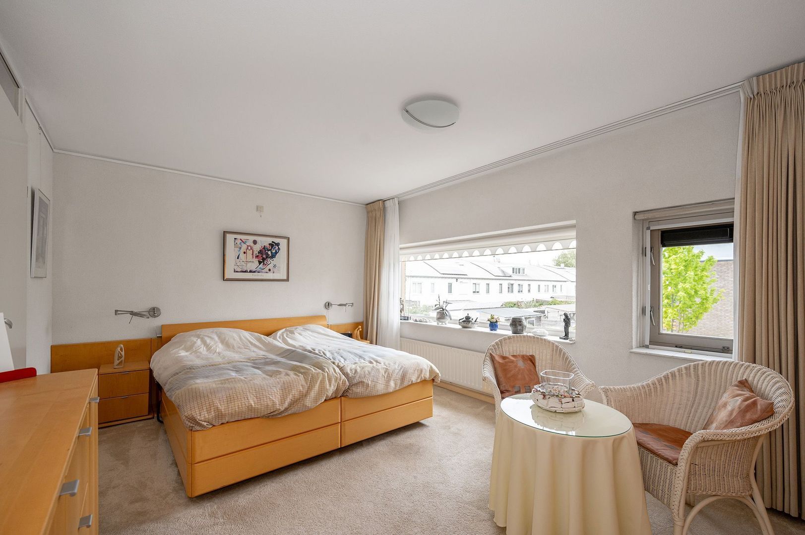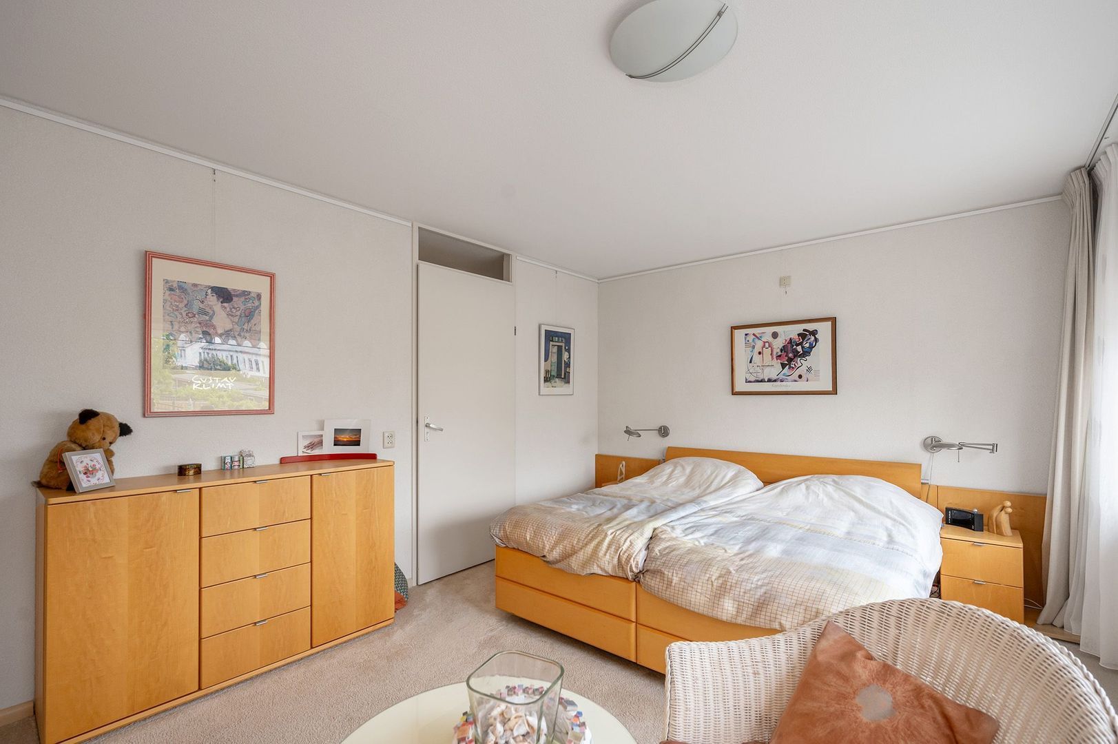 Aan de rustige achterzijde van het appartement bevinden zich twee slaapkamers. De hoofdslaapkamer is bijzonder royaal en biedt ruimte voor een groot tweepersoonsbed en een kastenwand. De tweede slaapkamer is momenteel in gebruik als werkkamer, maar kan ook uitstekend dienstdoen als logeerkamer of hobbyruimte. Beide kamers zijn voorzien van grote ramen, waardoor ook hier het daglicht volop binnenvalt.