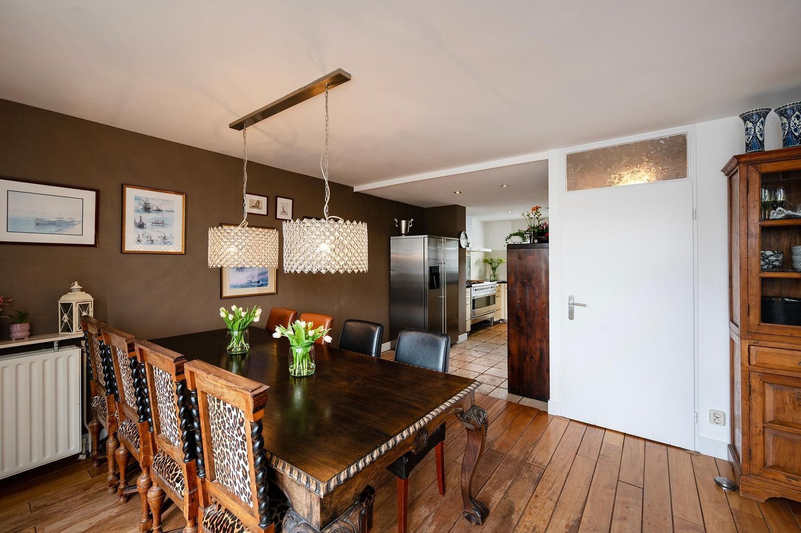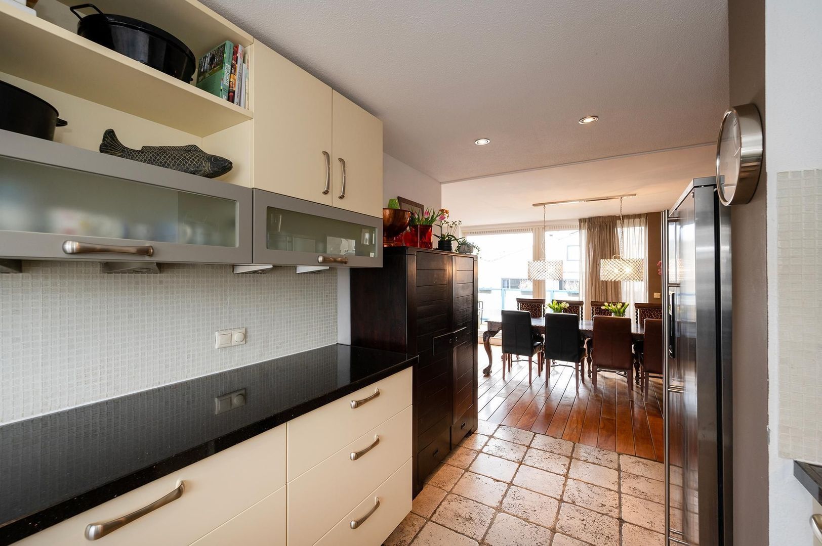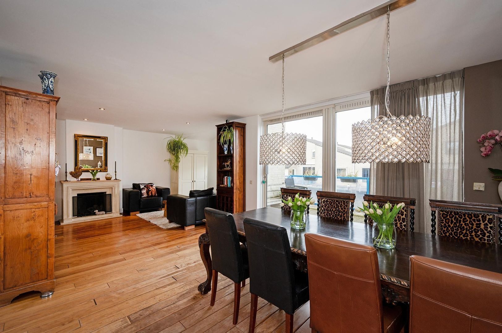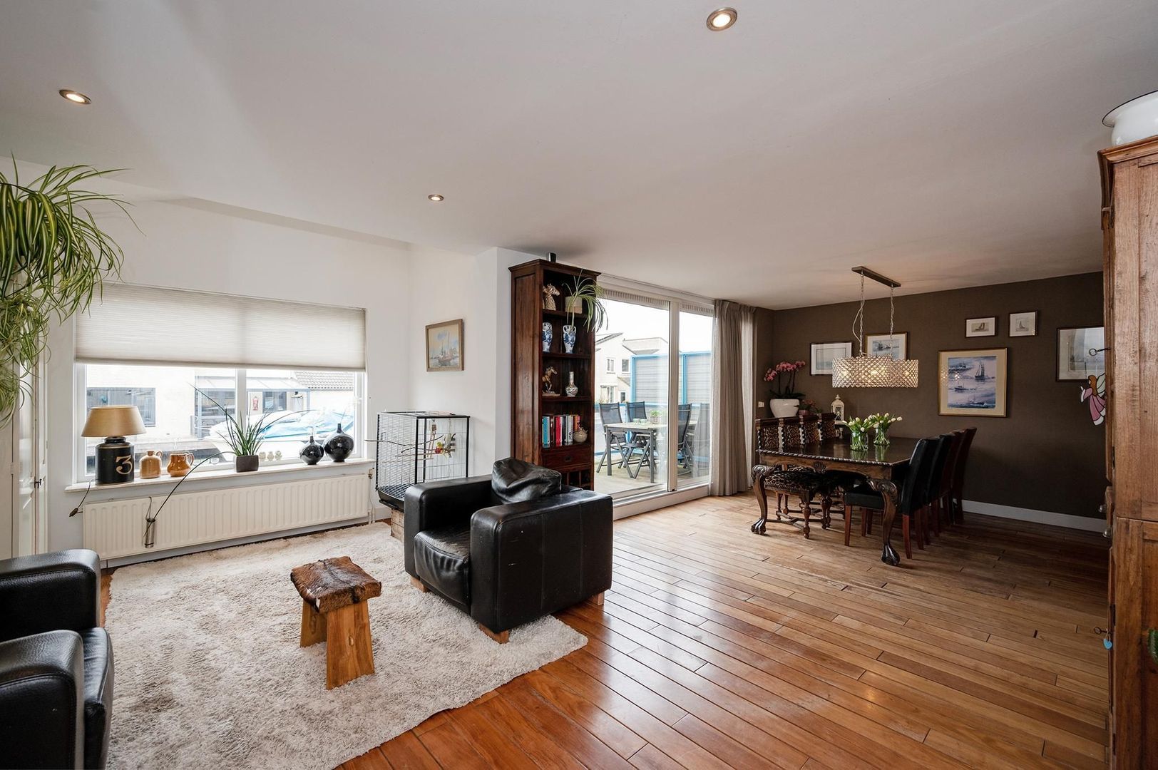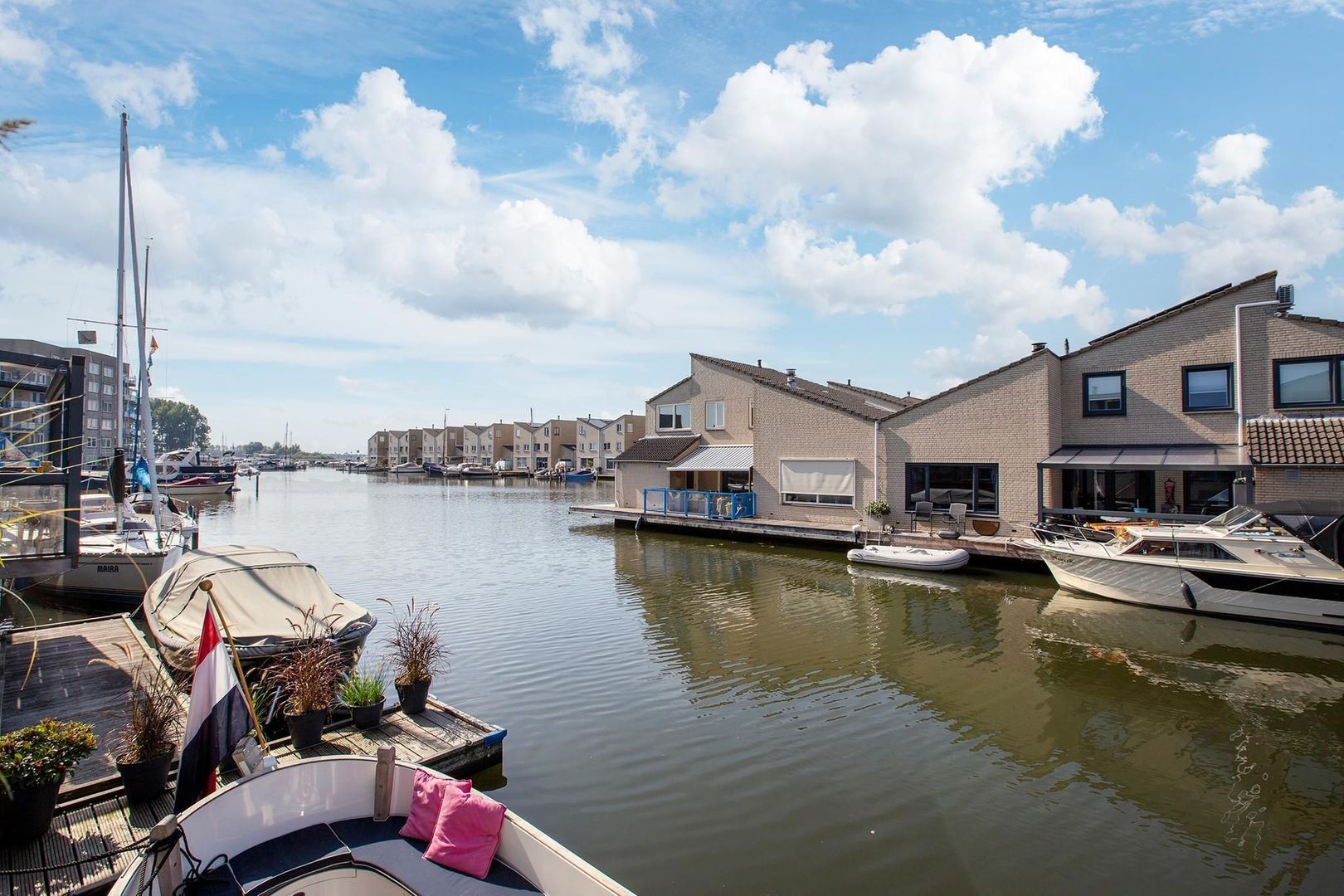 In de living valt gelijk op hoe mooi de lichtinval hier is. Door de weerspiegeling van het water en de glazen schuifpui is het hier aangenaam toeven. De living heeft in het midden een gashaard met chique schouw. Aan de voorzijde van de woning is de keuken gesitueerd welke is voorzien van alle wenselijke apparatuur. Vanuit de eethoek heeft u wederom uitzicht over het water en de haven wat elk moment van de dag een feestje is. Middels een schuifpui bereikt u het zonnige terras en met een trapje bereikt u de aanlegsteiger.