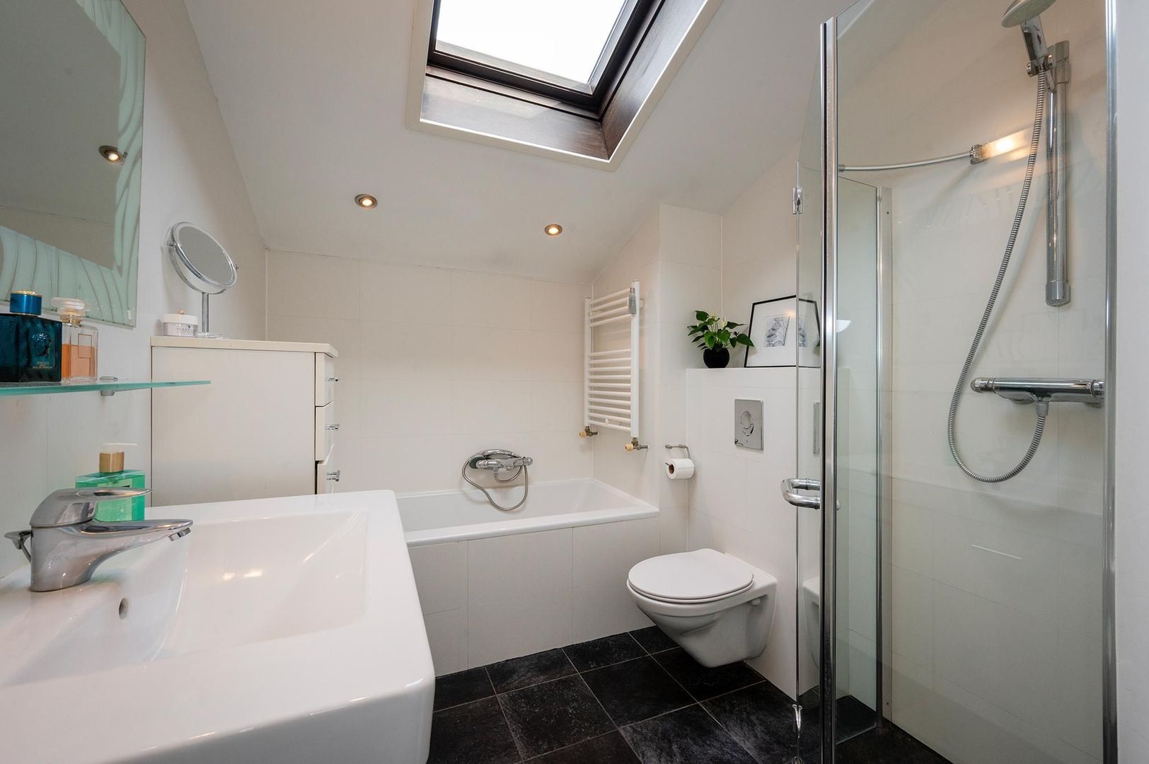 Lichte overloop met toegang tot de drie slaapkamers wat mede te danken is aan de dakopbouw. Daarnaast is op deze verdieping de tweede en lichte badkamer gelegen welke voorzien is van wastafelmeubel, ligbad, douchehoek en toilet.
