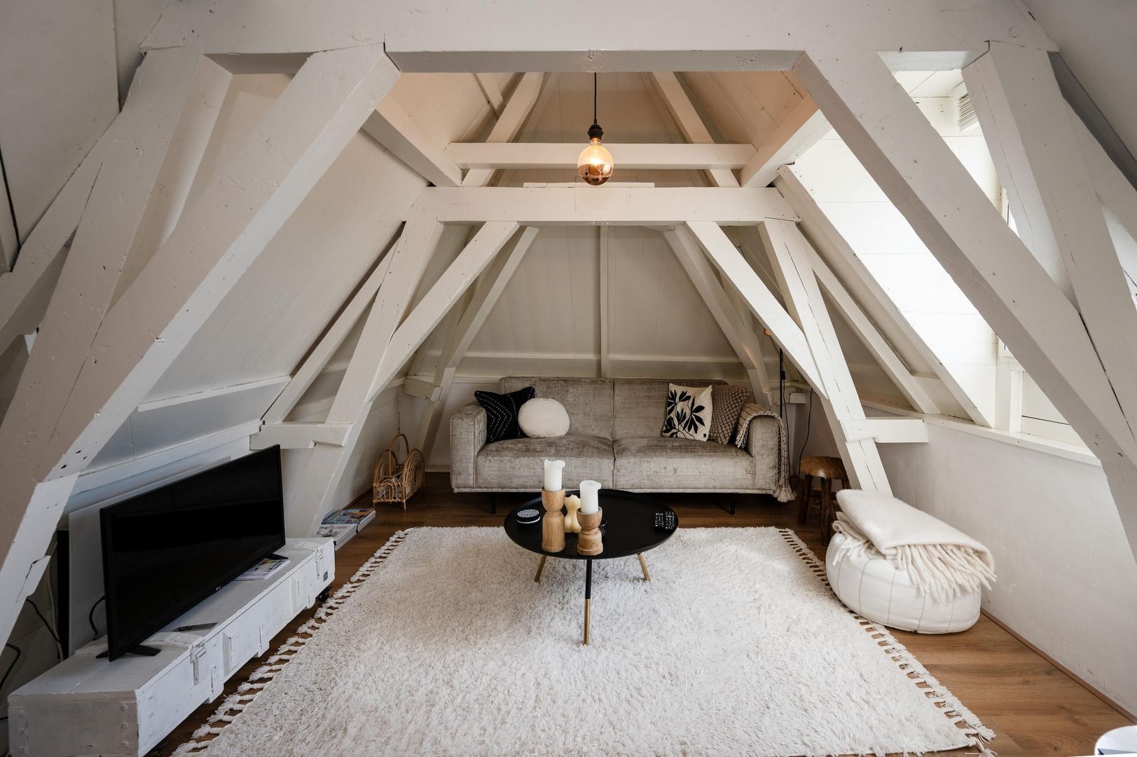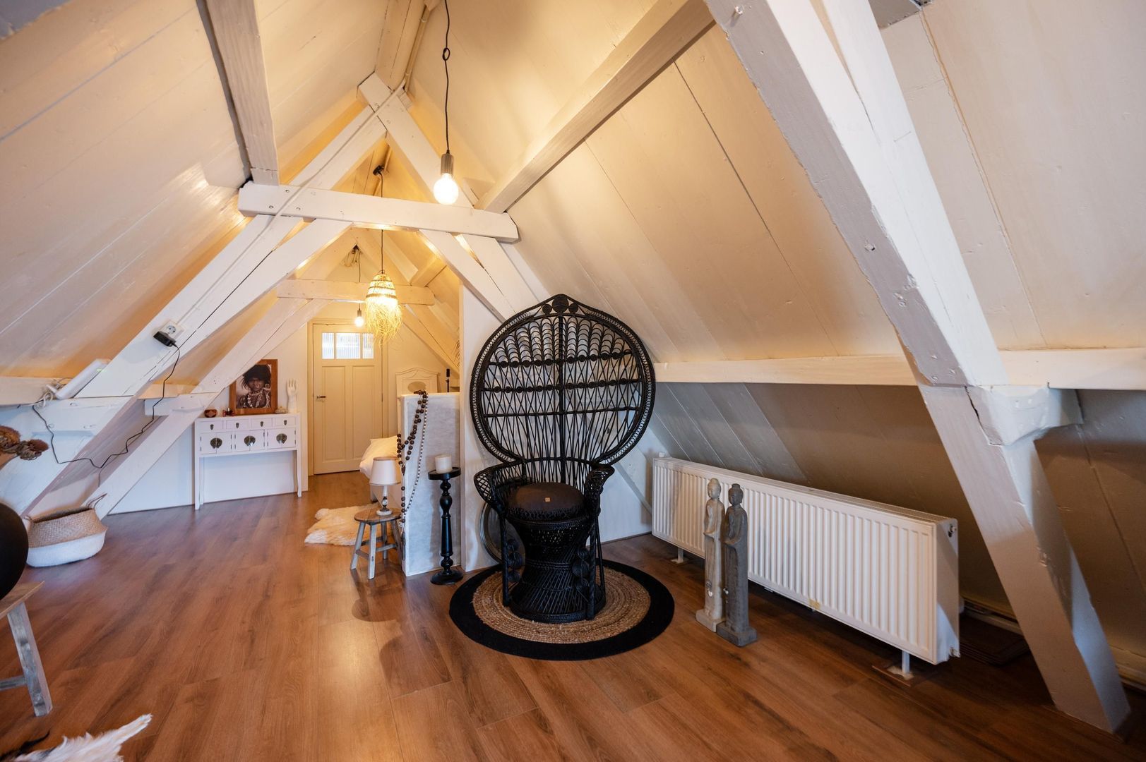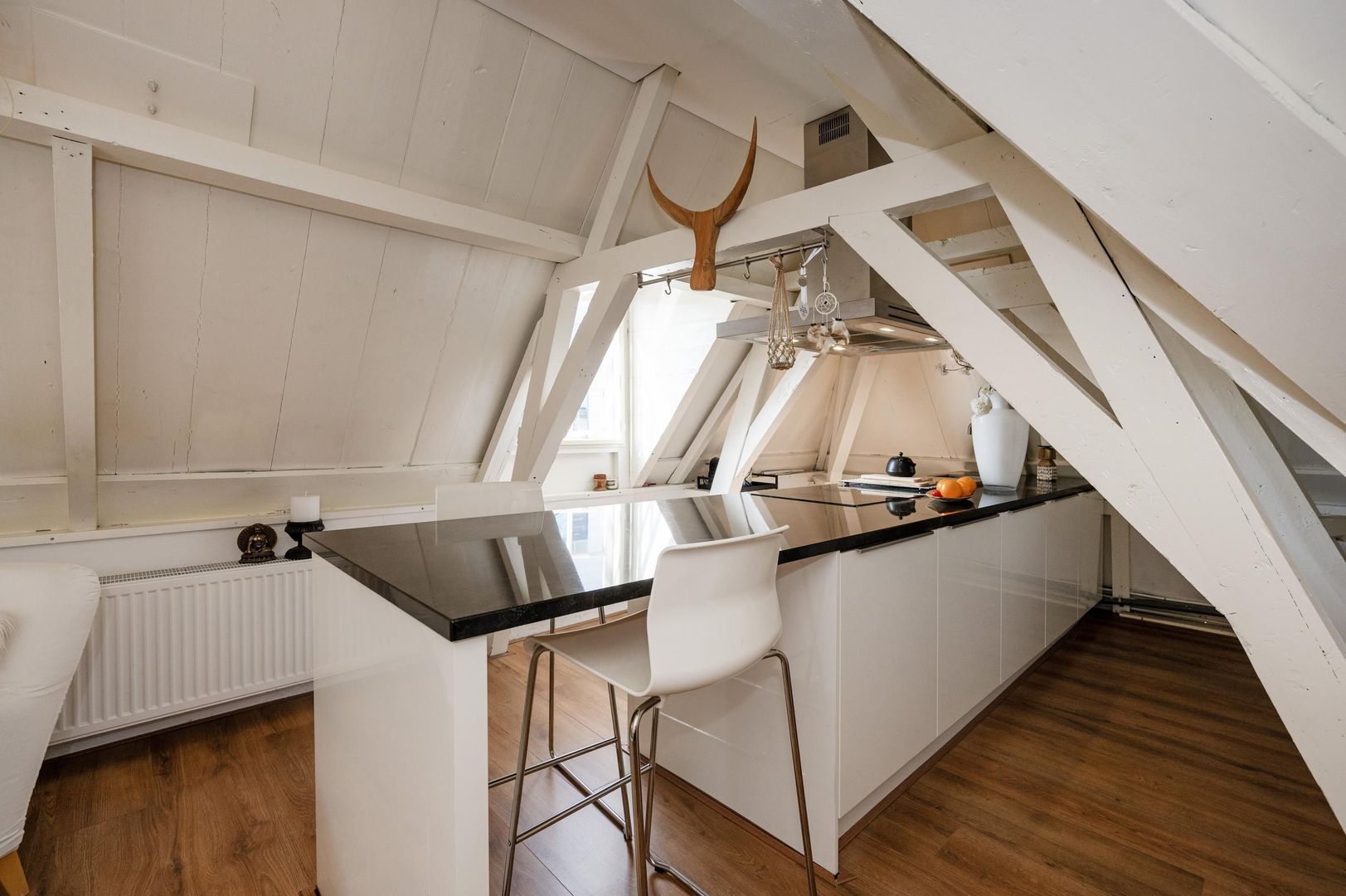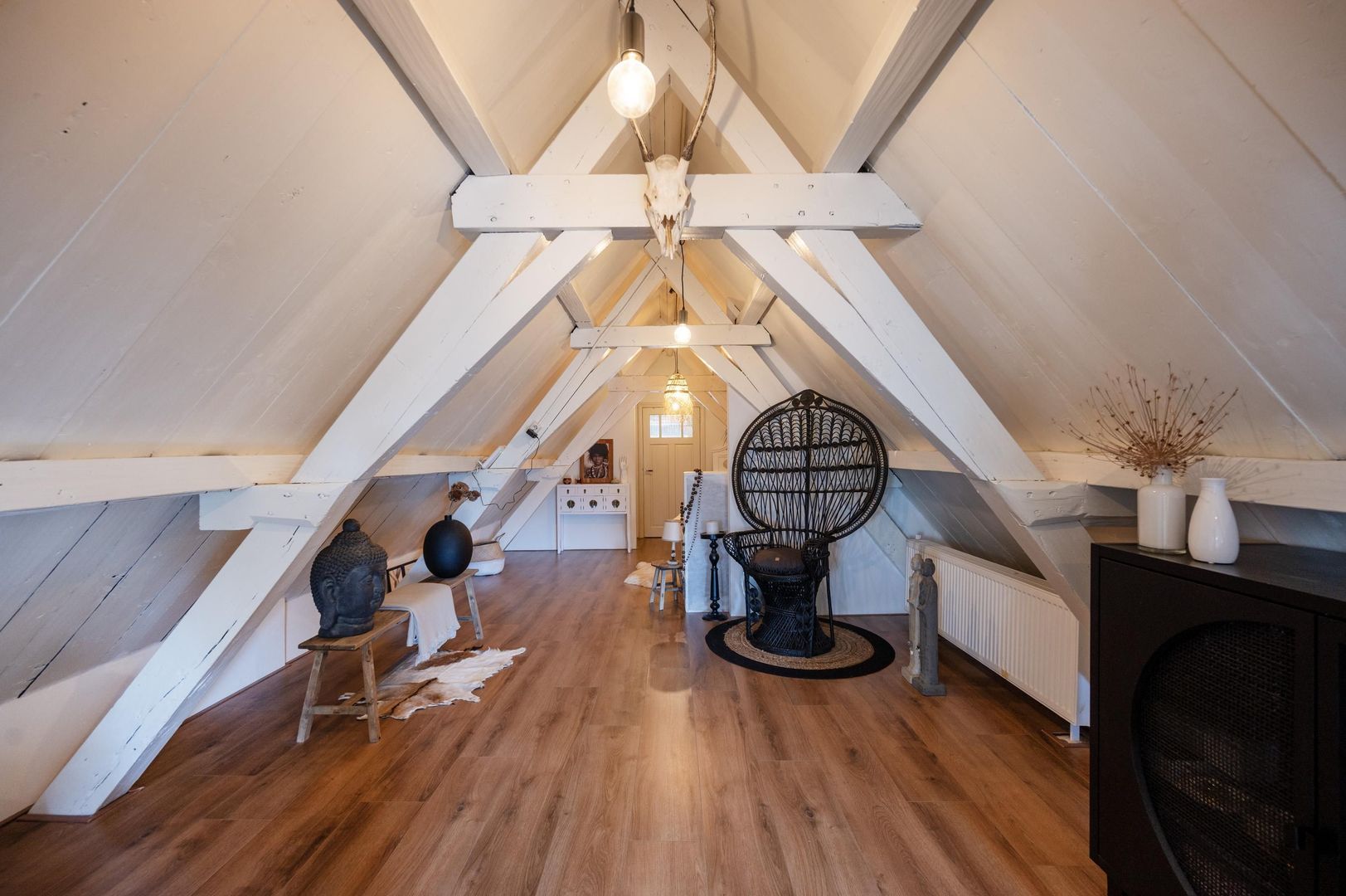 Authentieke elementen zoals de oude dakconstructie en verhuishaak.