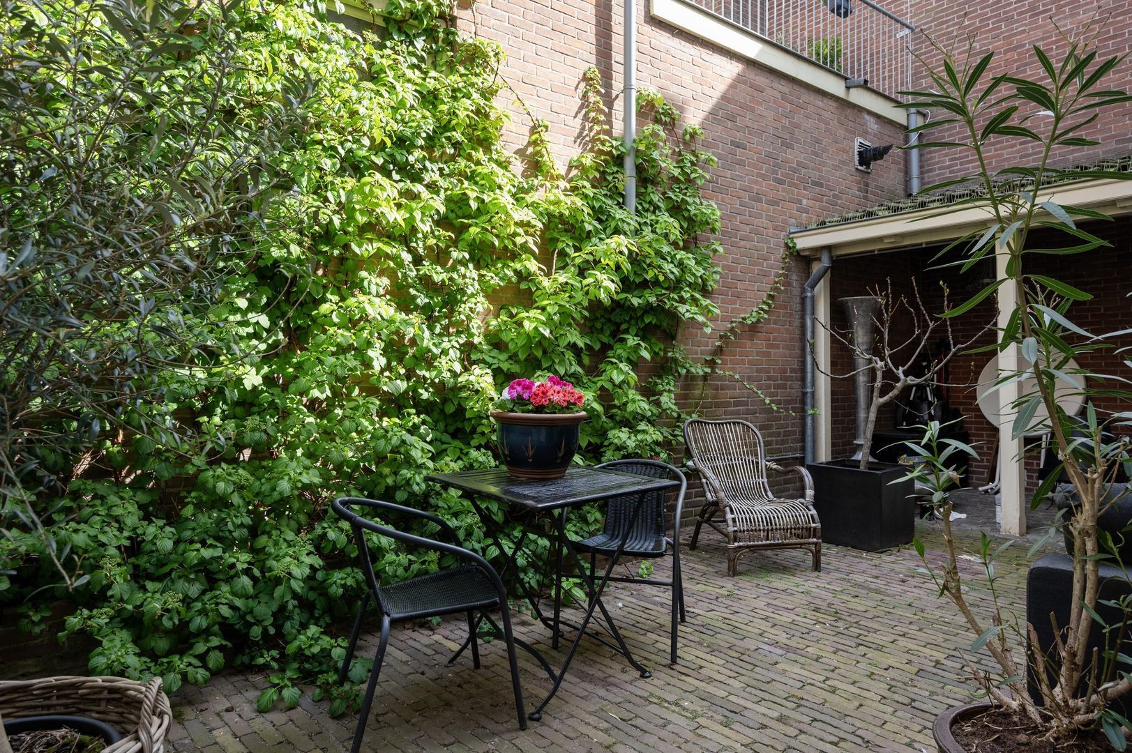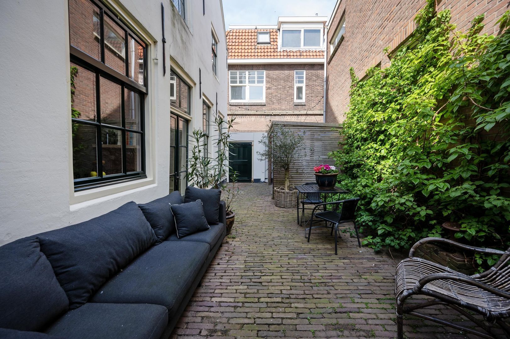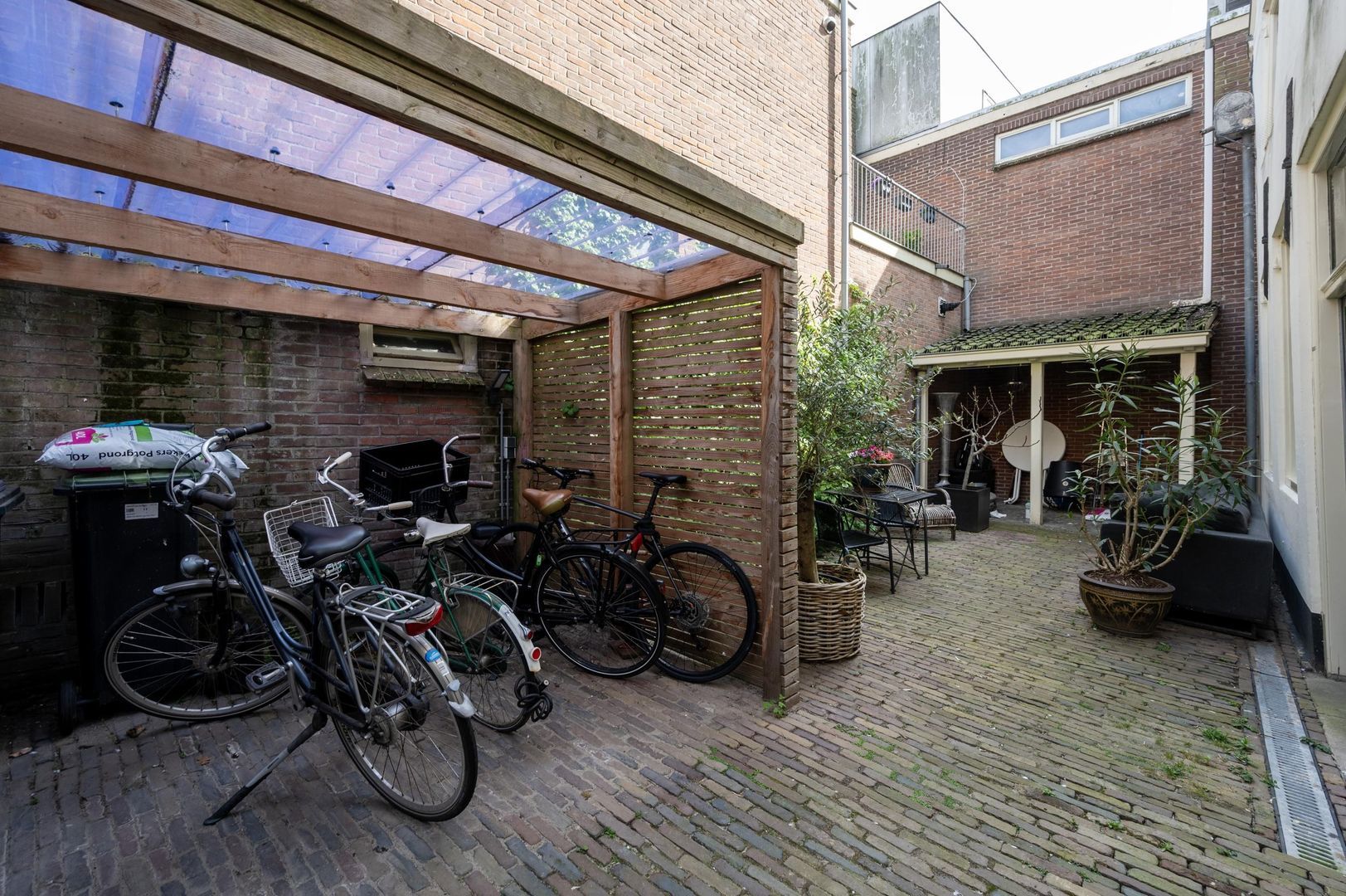 Gezamenlijke achtertuin met veranda en overdekte fietsenstalling