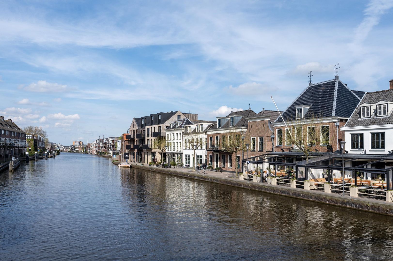 Centrale locatie aan de Oude Rijn, dicht bij winkels, restaurants en cultuur.