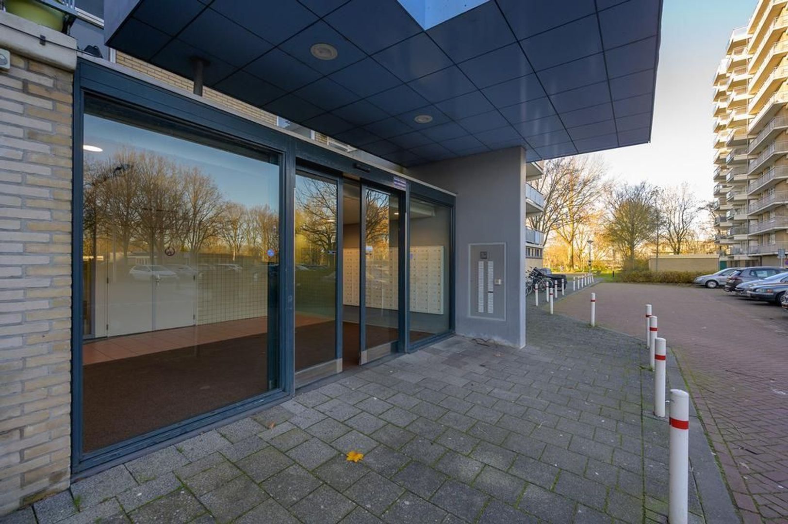 Een verzorgde entree met een belpaneel, intercom en brievenbussen. Via het trappenhuis of de lift bereikt men de voordeur, met de toegang tot de berging op de begane grond.