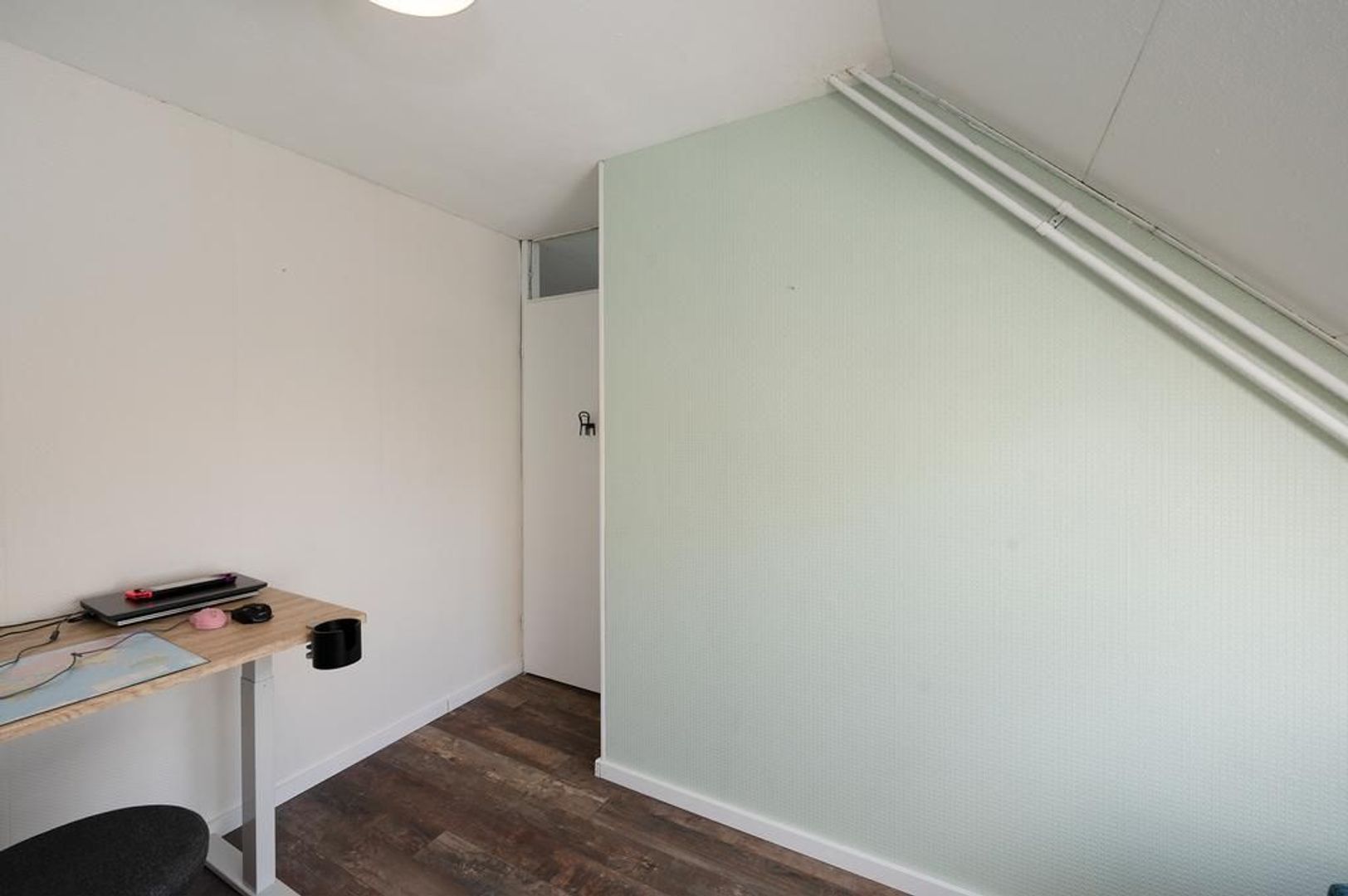 Na de trap komt u direct in de vierde slaapkamer. Deze is ook ruim van formaat en beschikt over veel bergruimte achter de knieschotten. Ook is hier de cv-ketel opstelling en zijn er de aansluitingen voor de wasmachine en de droger.