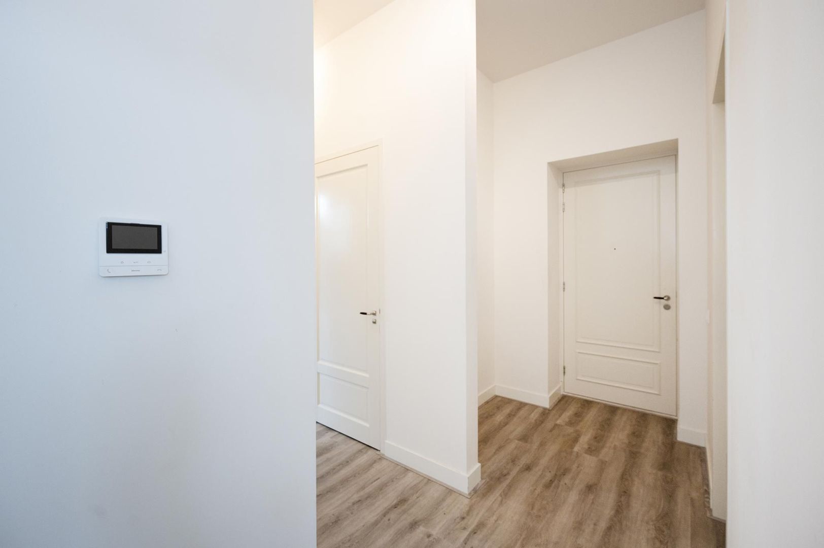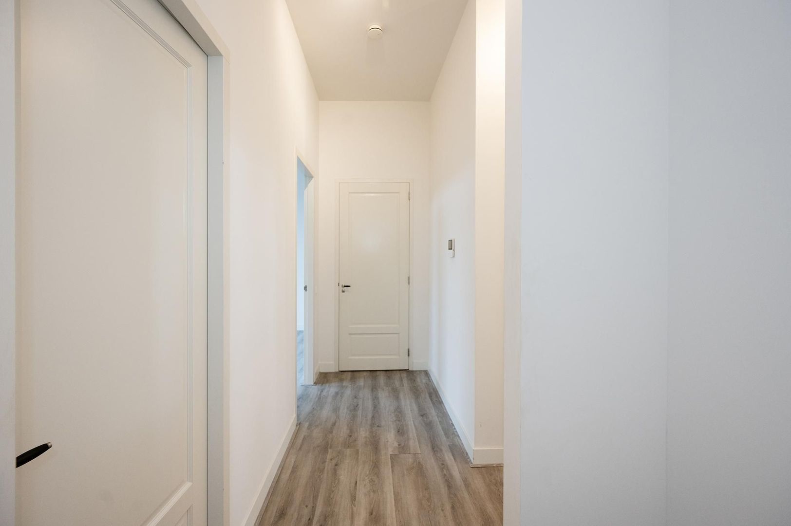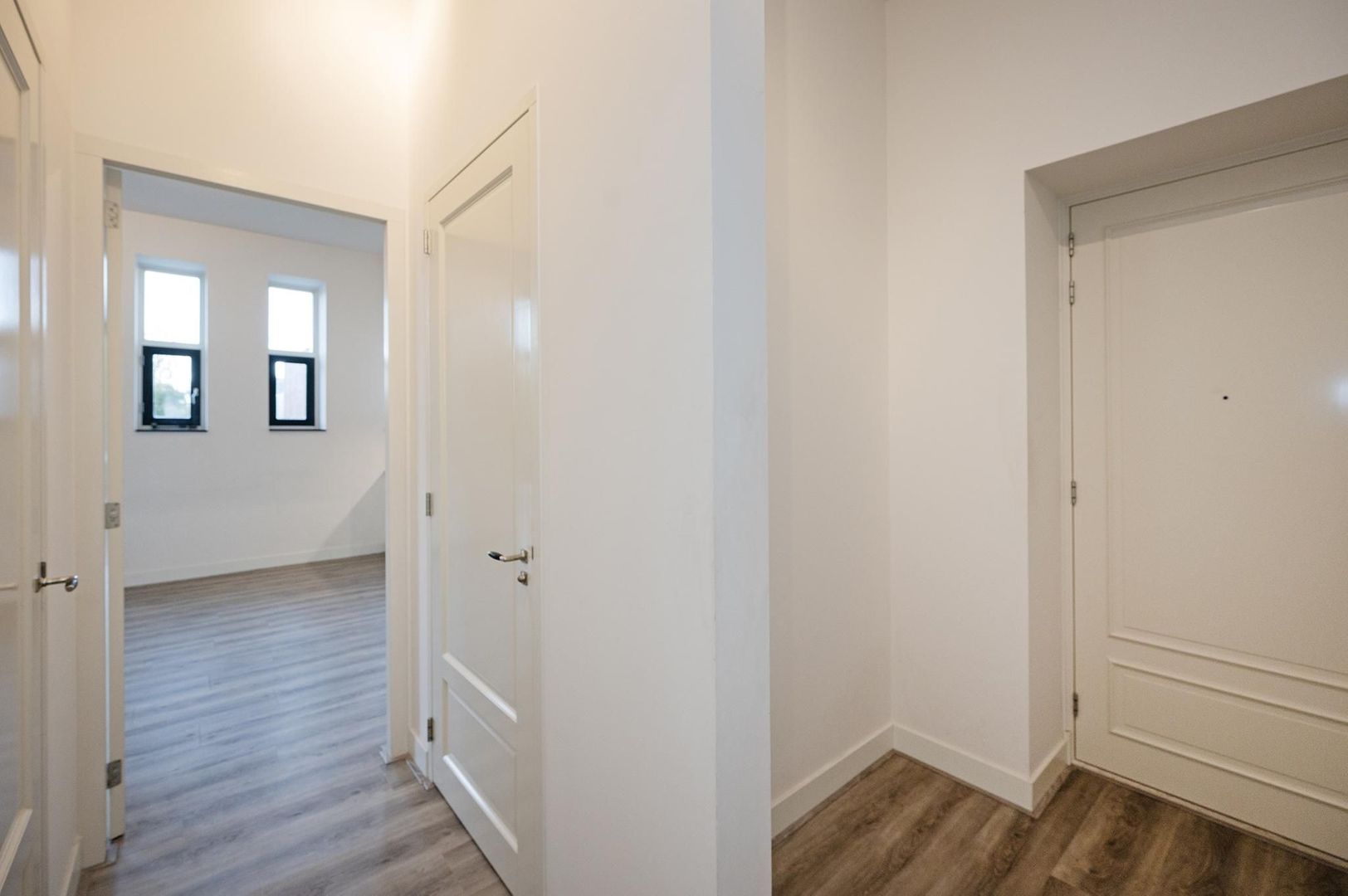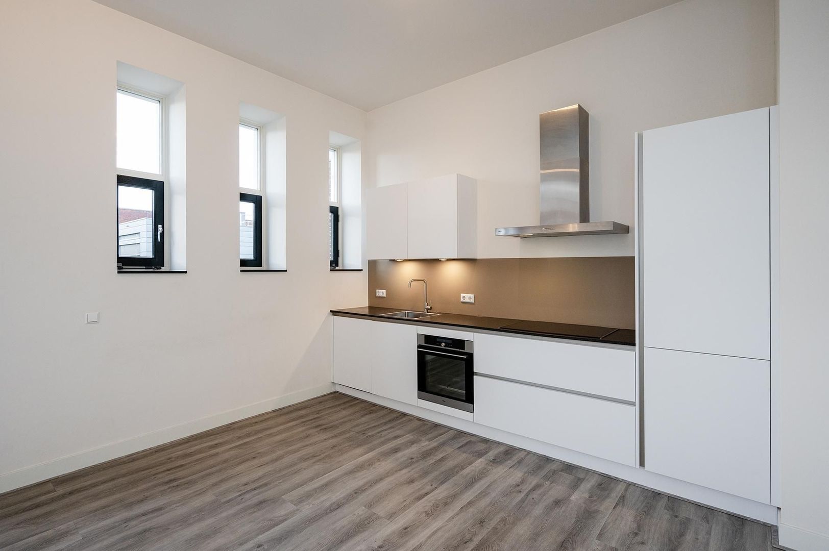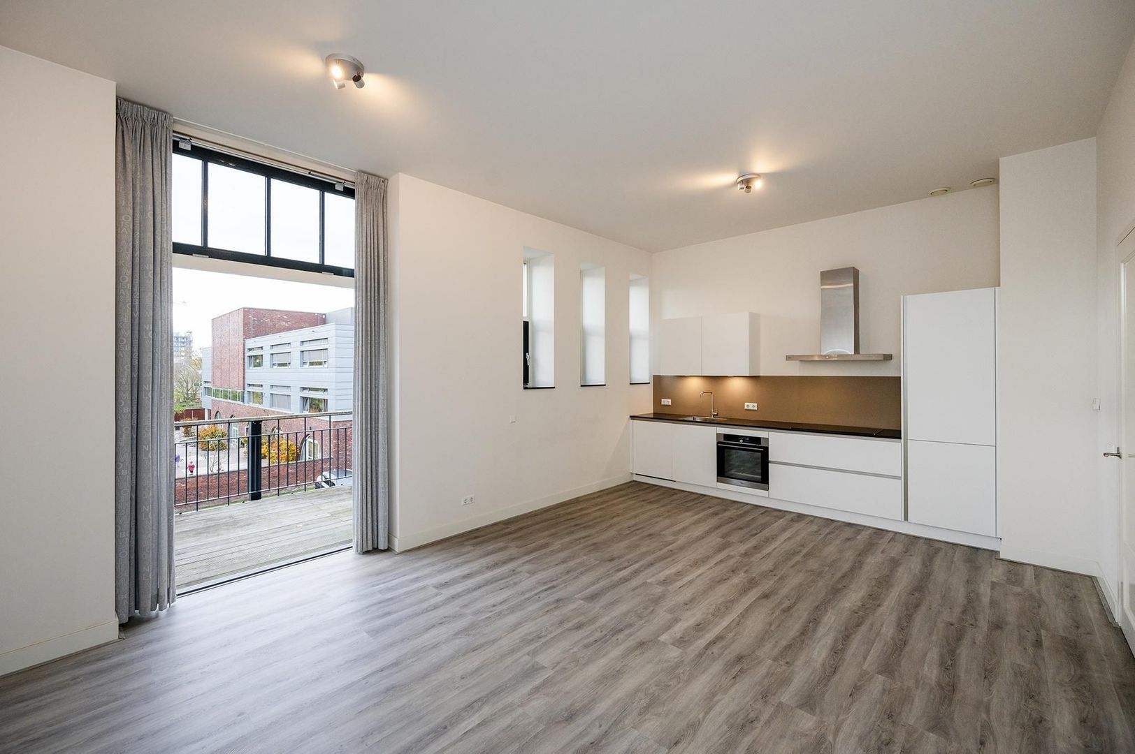 Bij binnenkomst door de karakteristieke voordeur van het appartement wordt u direct verwelkomd door een ruime en lichte hal. Deze hal, voorzien van een praktische garderobenis, biedt toegang tot alle vertrekken van het appartement. Vanuit hier stapt u de sfeervolle woonkamer binnen, waar moderne elegantie en historische charme samenkomen. De royale raampartijen laten een overvloed aan daglicht binnenstromen, waardoor de ruimte aangenaam licht en uitnodigend aanvoelt. De woonkamer is bovendien voorzien van een open keuken, die naadloos in het geheel is geïntegreerd. Deze moderne keuken is strak vormgegeven en biedt alles wat u nodig heeft voor comfortabel koken en tafelen. Via de openslaande deuren bereikt u het riante balkon, waar u heerlijk kunt genieten van de buitenlucht en een prachtige zonsondergang.