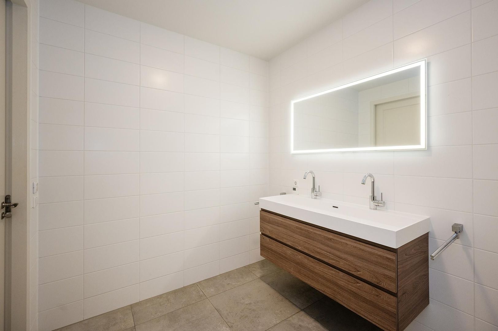Vanuit de hal heeft u daarnaast toegang tot een separate toiletruimte, die eveneens luxe is afgewerkt en voorzien van een modern wandcloset en een fonteintje.