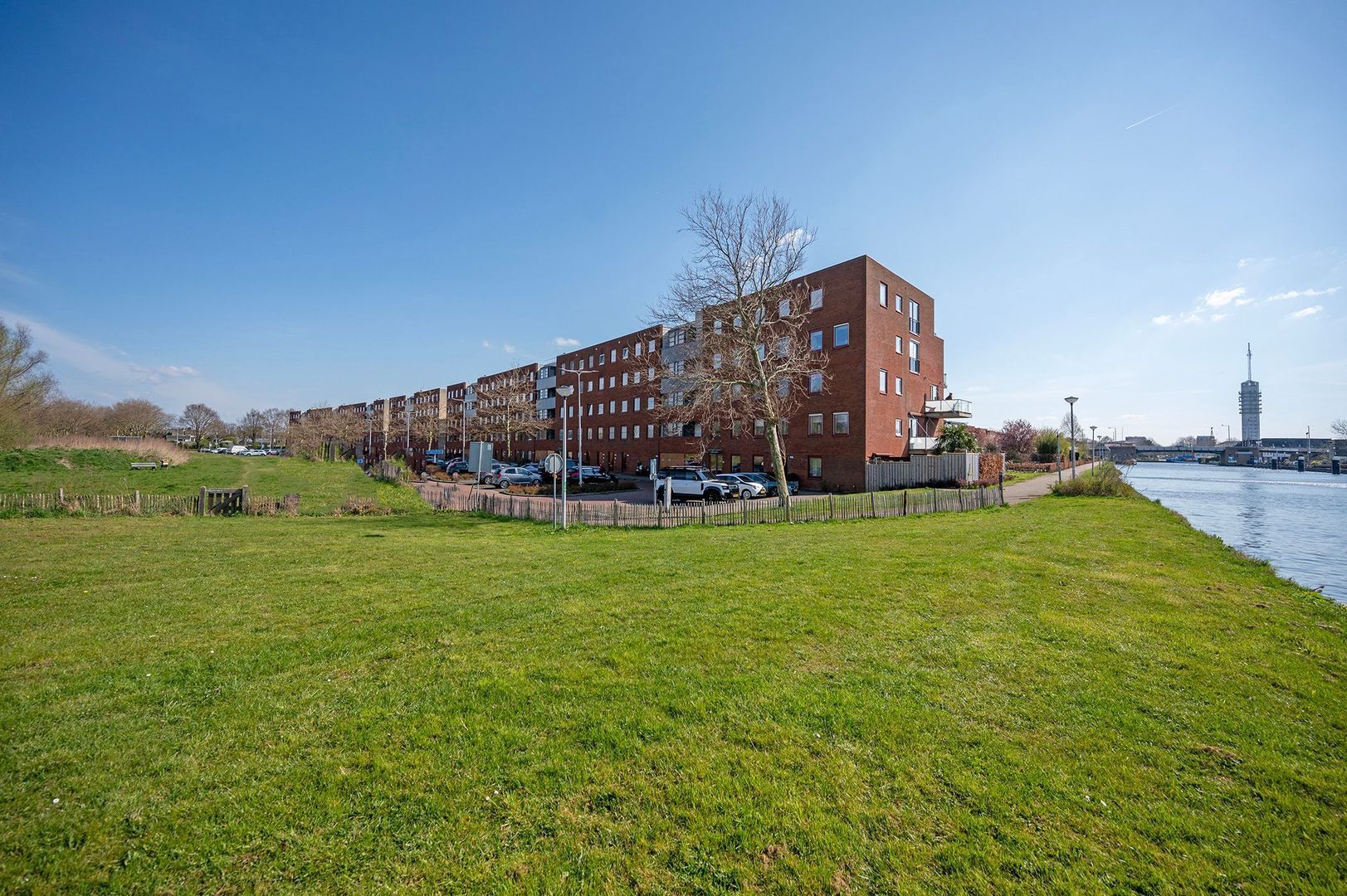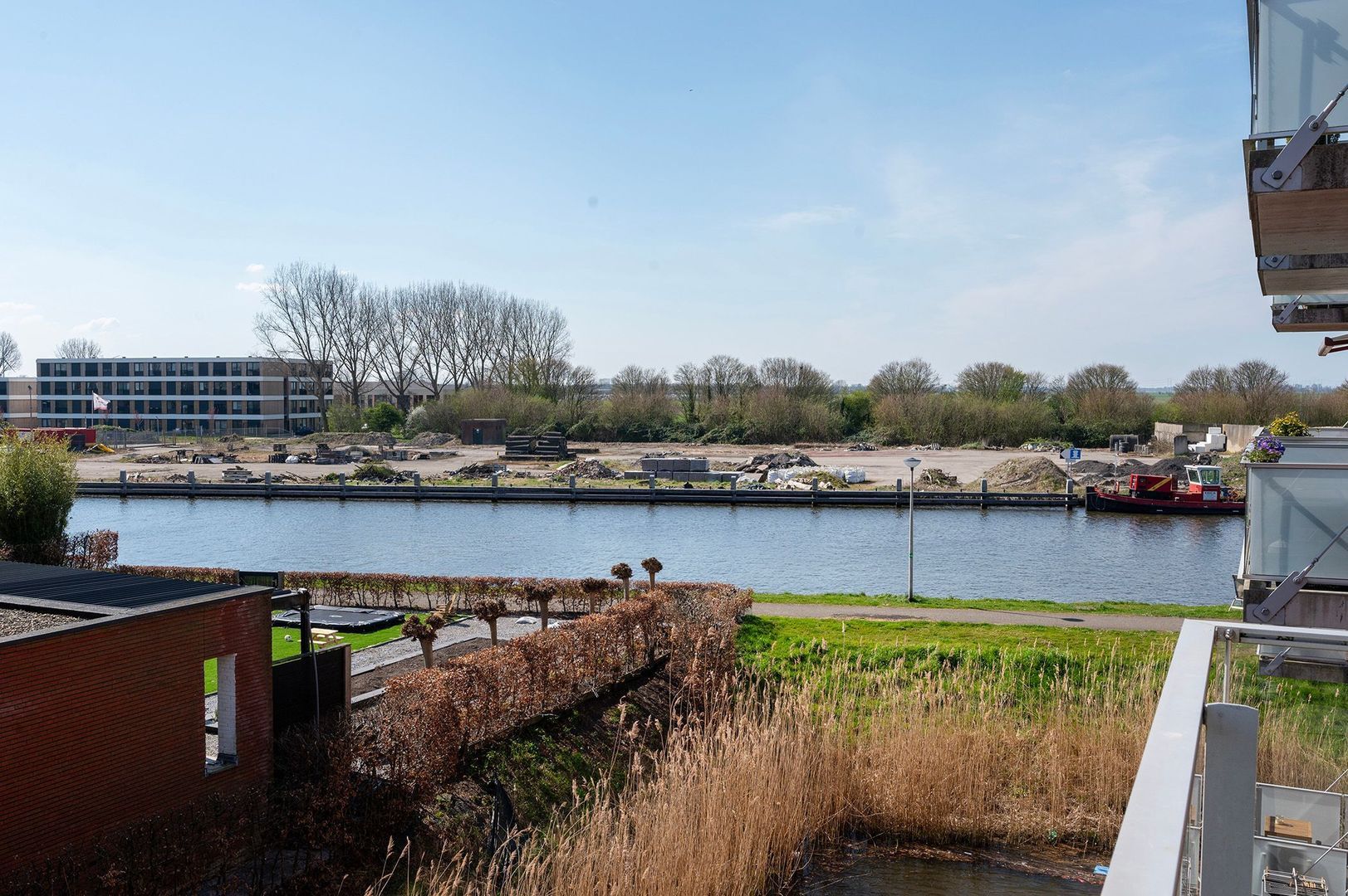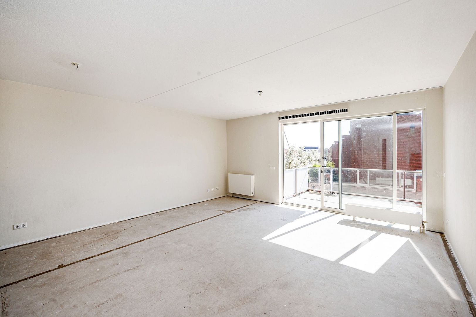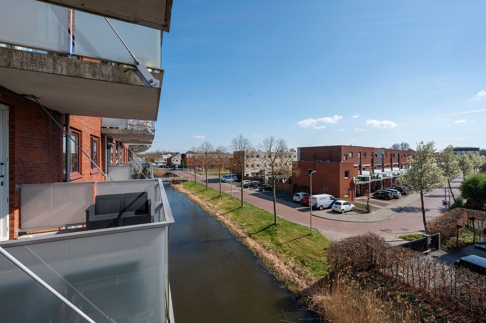 De schuifpui in de woonkamer geeft toegang tot het balkon, dat gunstig gelegen is op het zuiden. Door de ruime afmetingen kun je hier een gezellige zithoek creëren. Daarnaast heb je heerlijk zicht op de rijn.