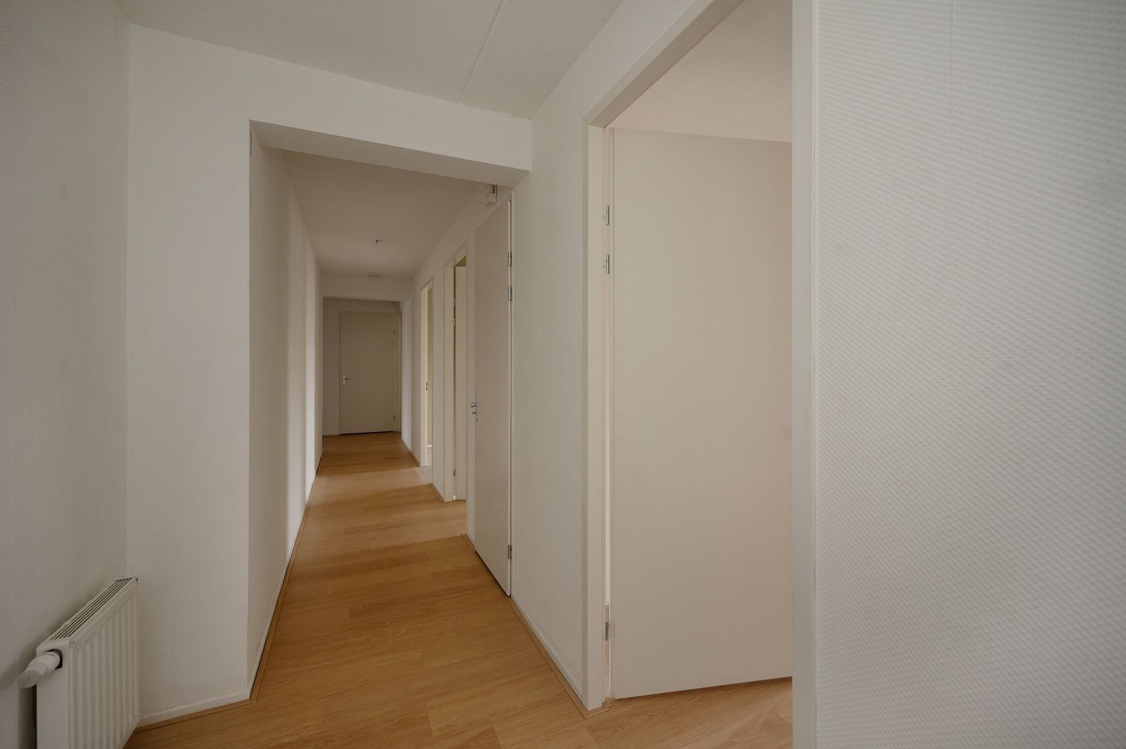De woonkamer is licht door de grote raampartij aan de achterzijde met schuifpui. Door de breedte van de kamer kun je deze op verschillende manieren inrichten. Vanuit de woonkamer is het ruim bemeten balkon via een schuifpui bereikbaar.