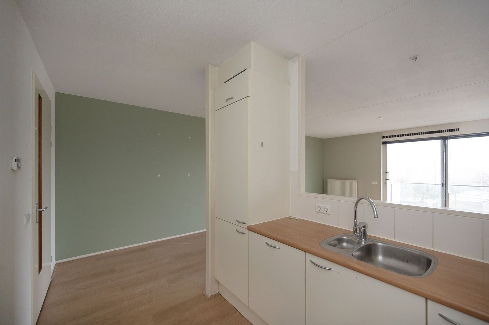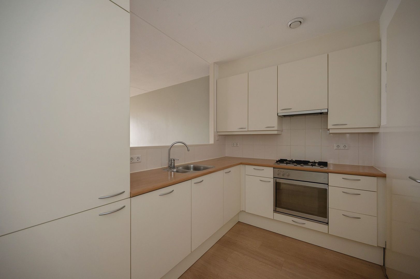 De keuken bevindt in de woonkamer van het appartement. Door de ruime opzet zijn er veel indelingsmogelijkheden. Er staat een recht keukenblok met lichte kastfronten en voldoende opbergruimte boven en onder het werkblad.