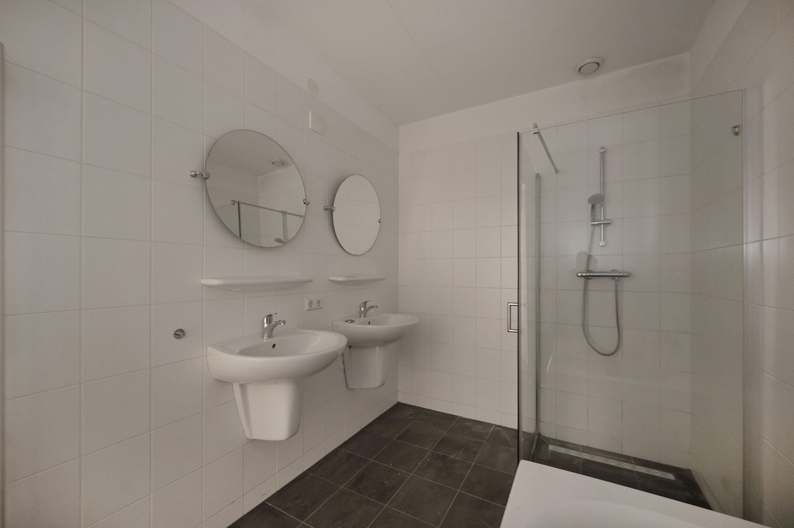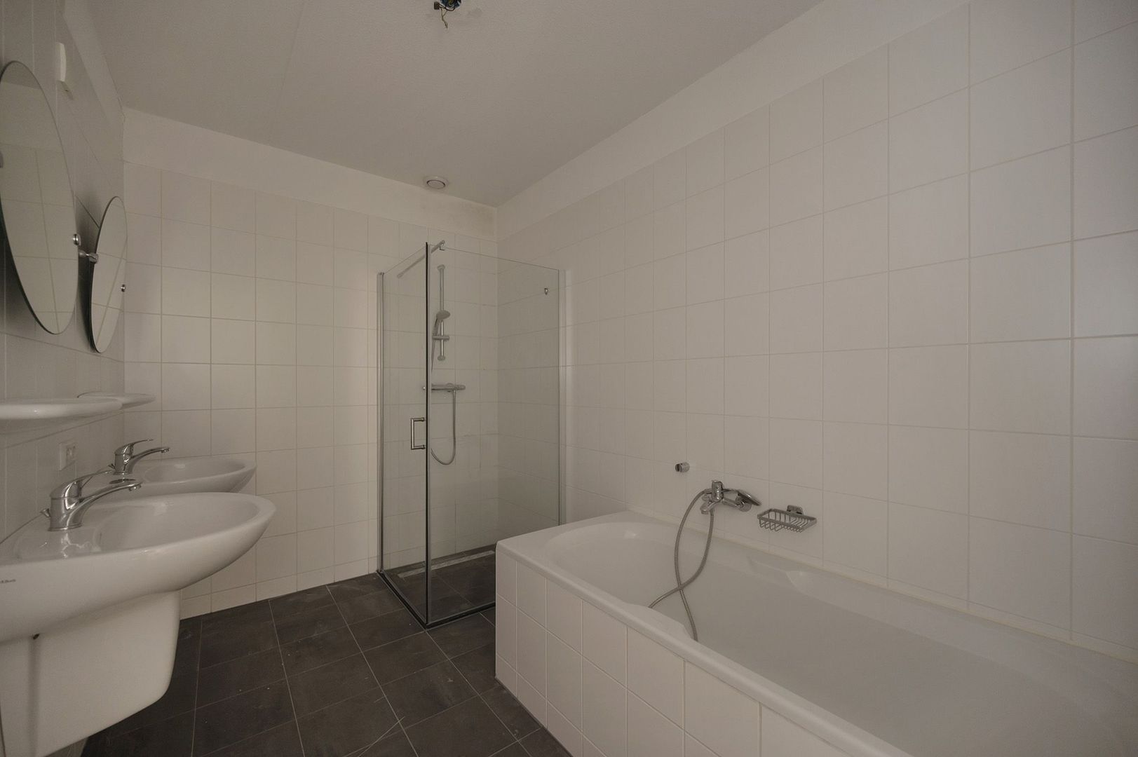 De grotendeels betegelde badkamer is bereikbaar vanuit de centraal gelegen hal. De badkamer heeft een douchegelegenheid, ligbad/bad-douchecombinatie, wastafel en een spiegel met planchet. De toiletruimte is apart en voorzien van een fonteintje.
