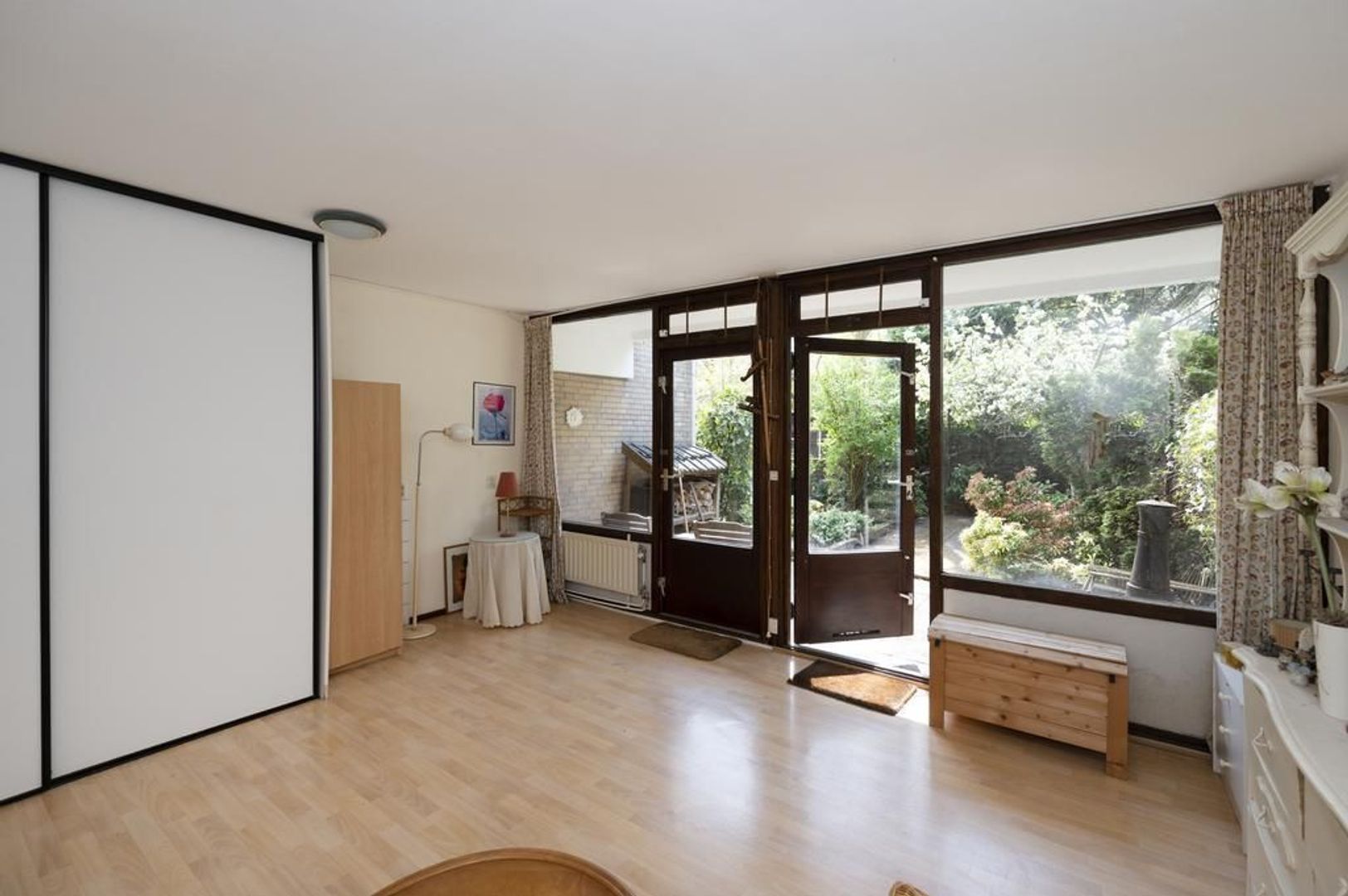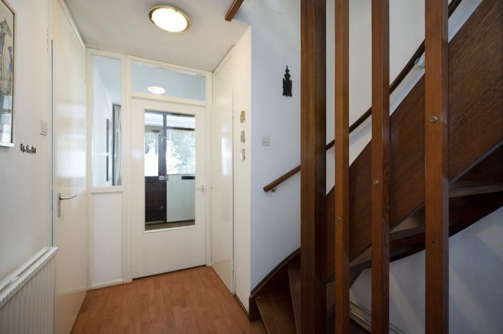 Hal met meterkast, toegang tot de garage, tuinkamer en trapopgang naar de eerste verdieping. De tuinkamer is mooi licht door de grote raampartij en biedt toegang tot de achtertuin, ook is hier momenteel de opstelling voor de wasmachine en droger geplaatst.