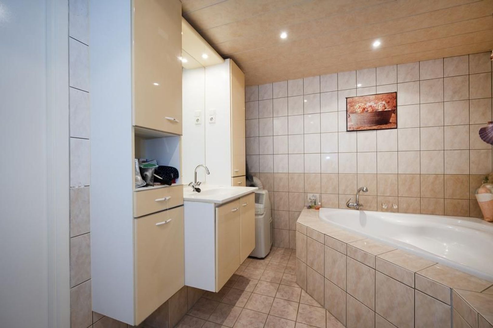 De badkamer is in het midden van de slaapkamers gesitueerd en uitgevoerd met een toilet, ligbad, douchehoek, designradiator, en wastafelmeubel.