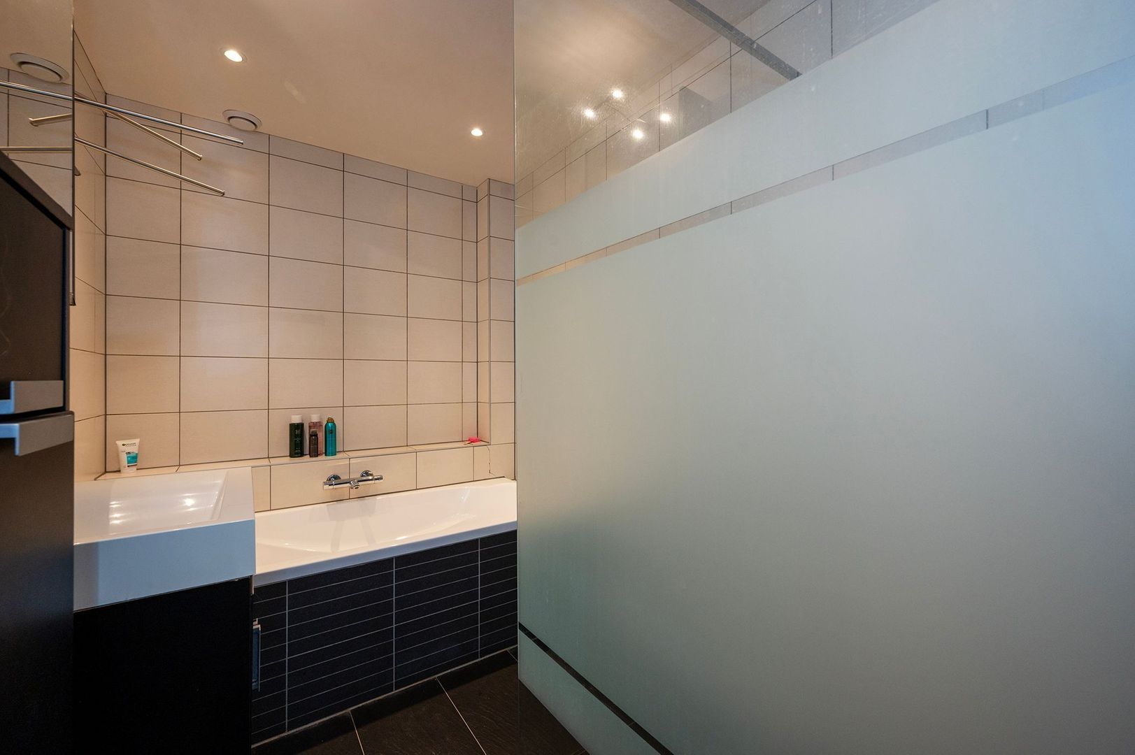 - Badkamer voorzien van een wastafelmeubel, ligbad en inloop douche