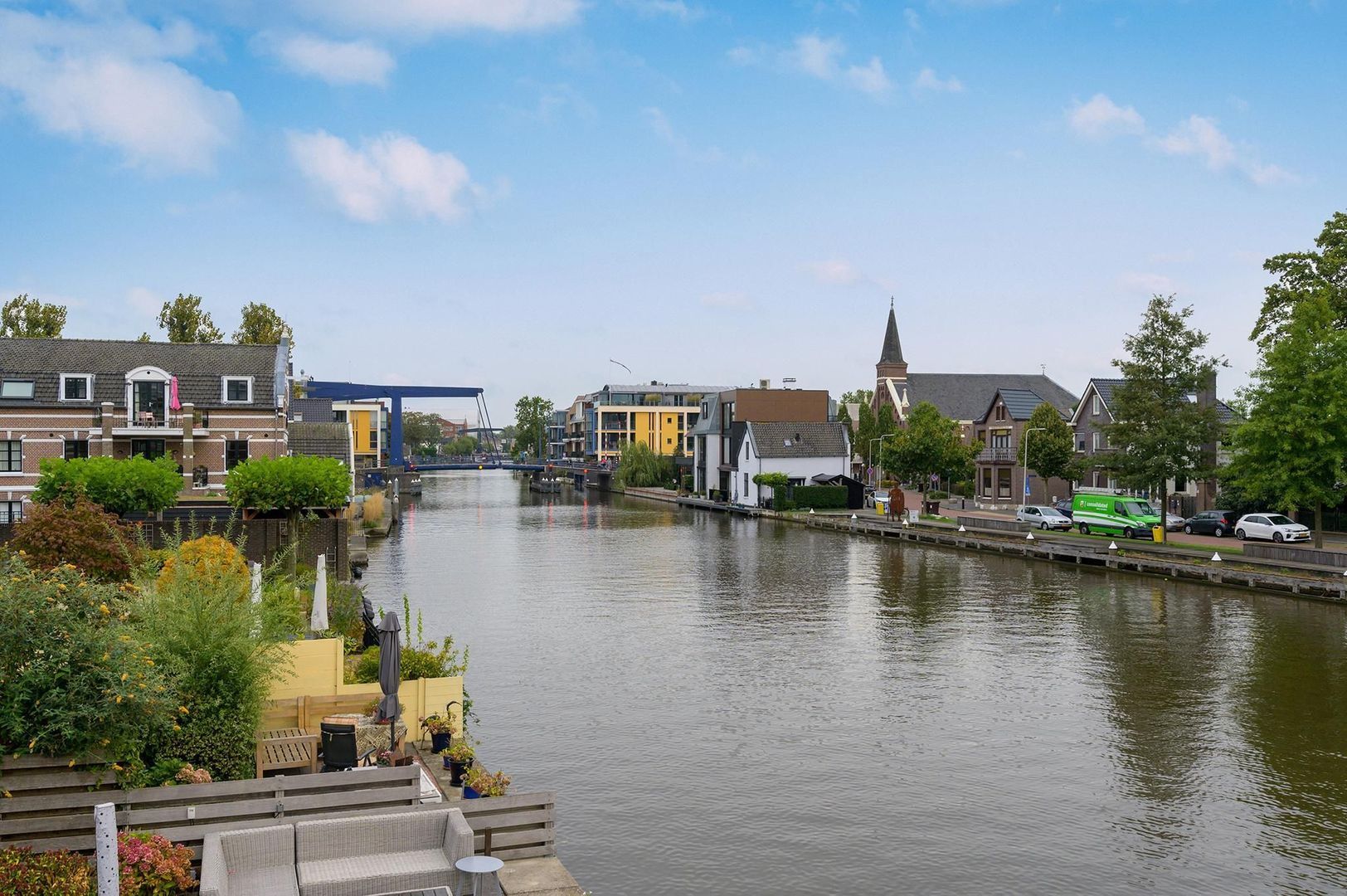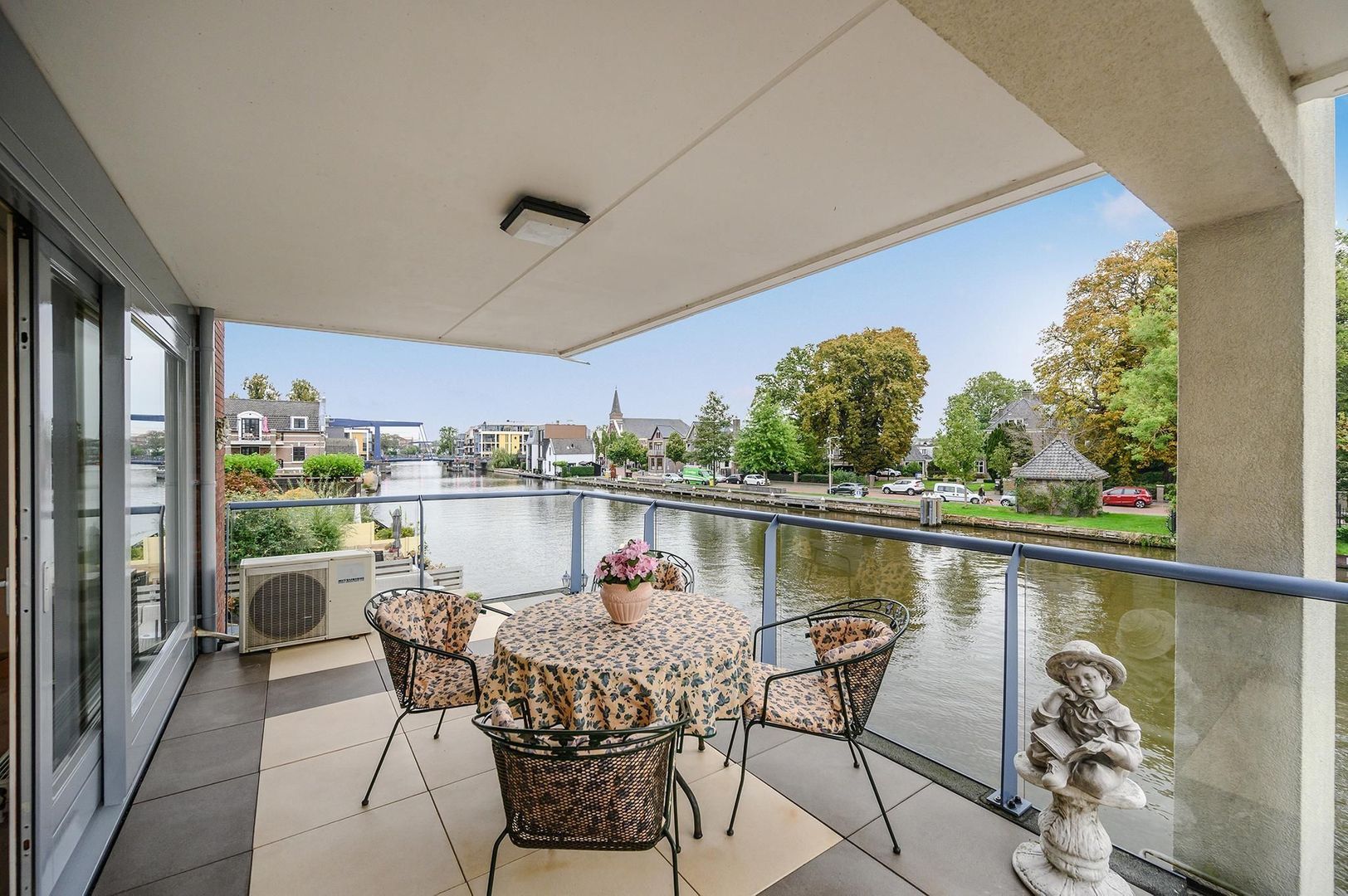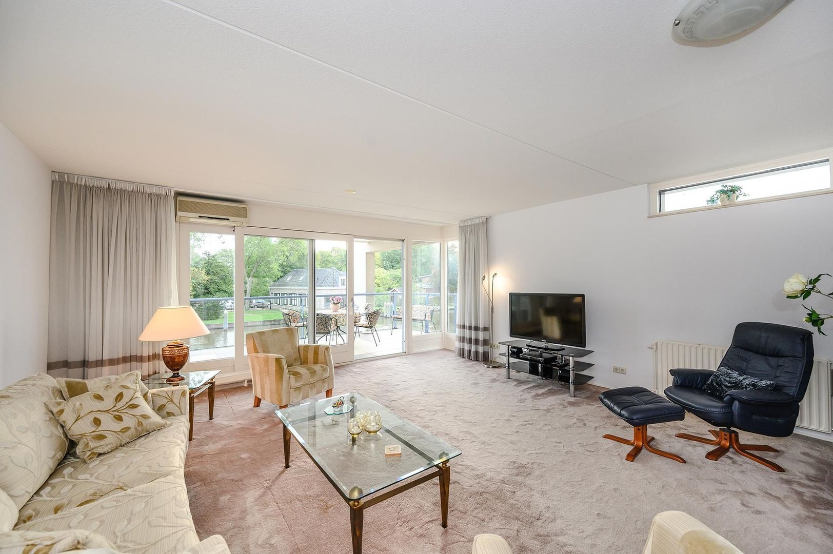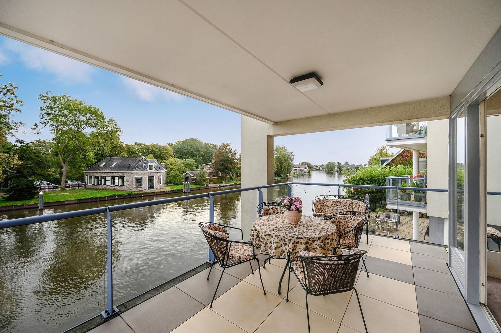Living met riant overdekt balkon aan het water (de Oude Rijn)