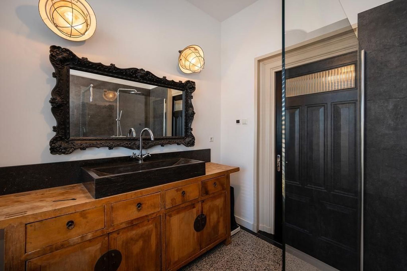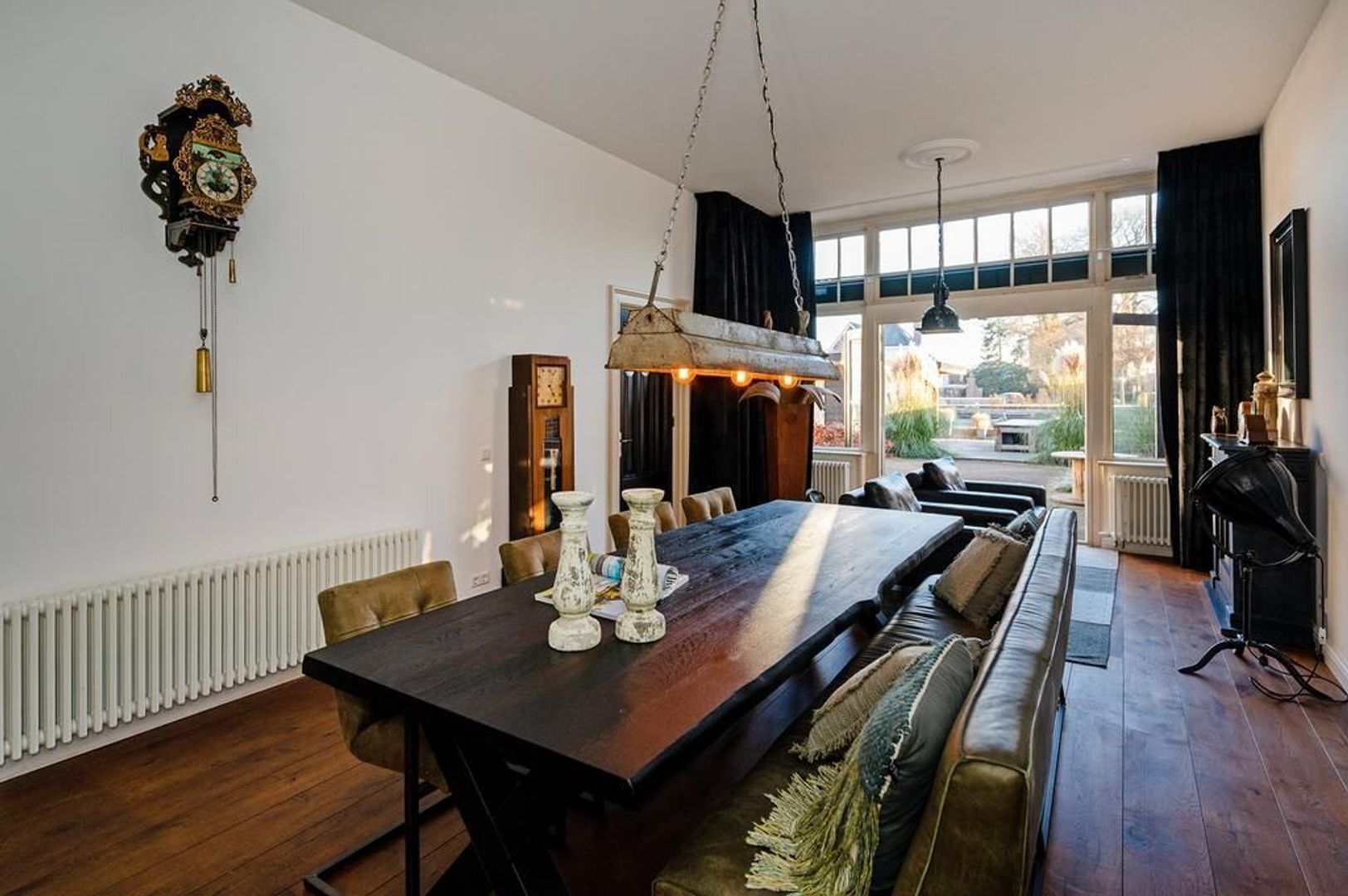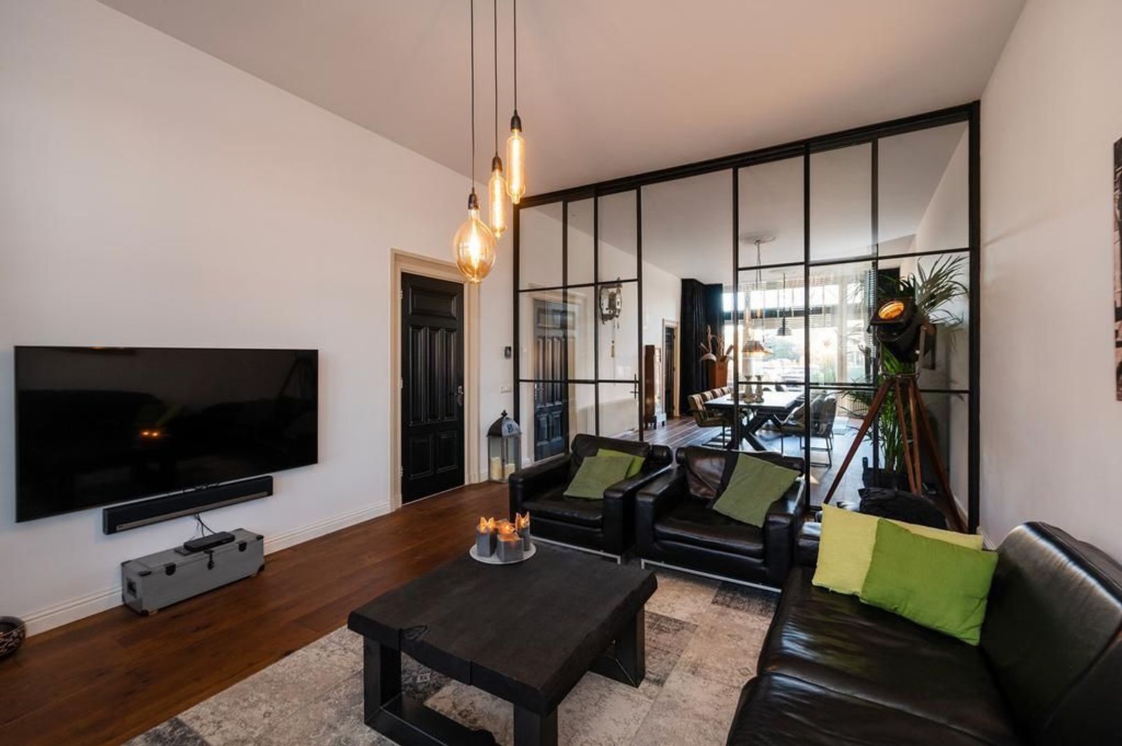 De zitkamer staat in verbinding met de eet-/woonkamer maar is eenvoudig af te sluiten door de modern hoge stalen schuifdeuren. Deze mooi bemeten ruimte leent zicht bij uitstek voor diners met een groot gezelschap. Middels de openslaande deuren is de tuin een geweldig verlengstuk van de woning.