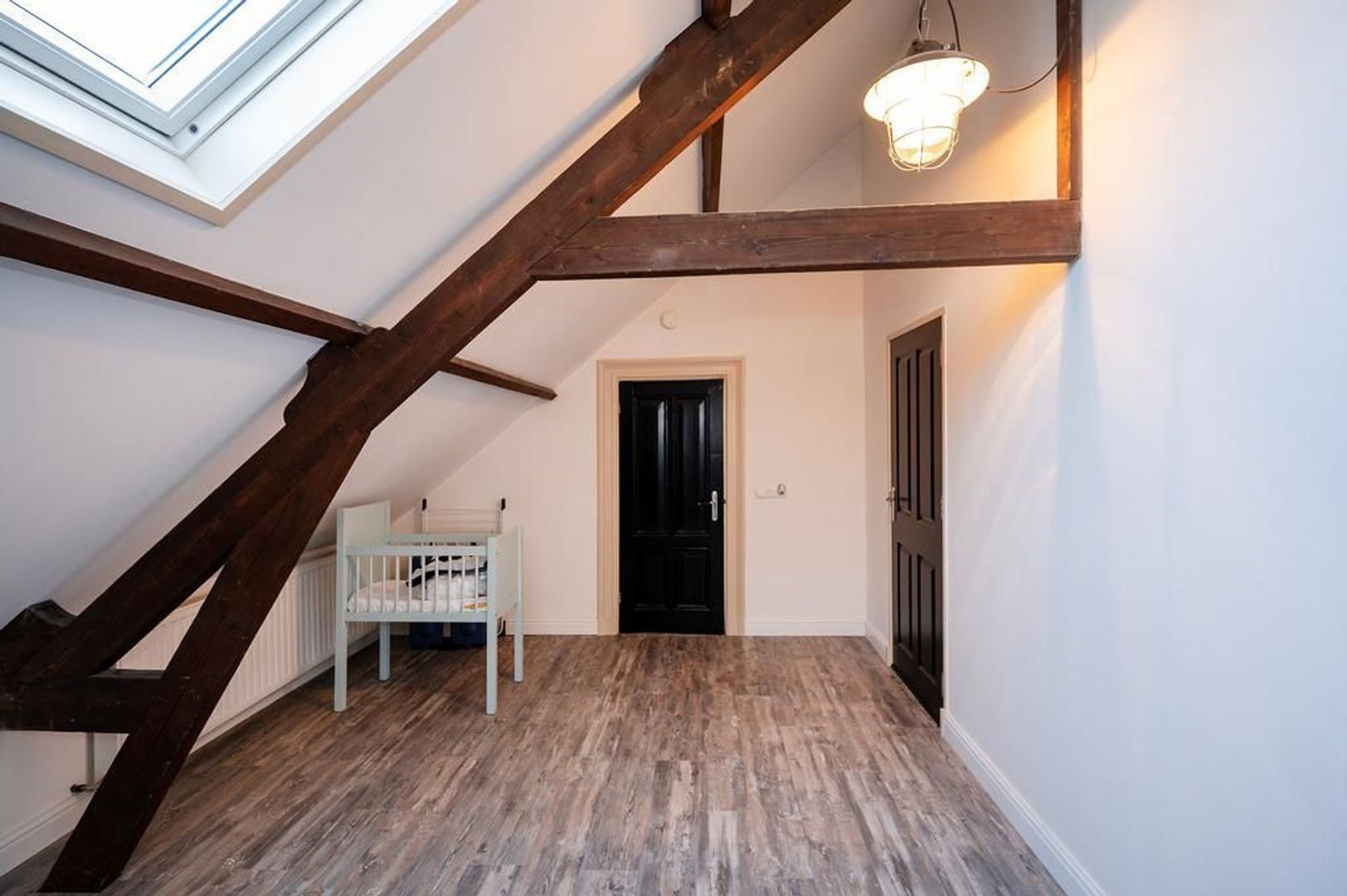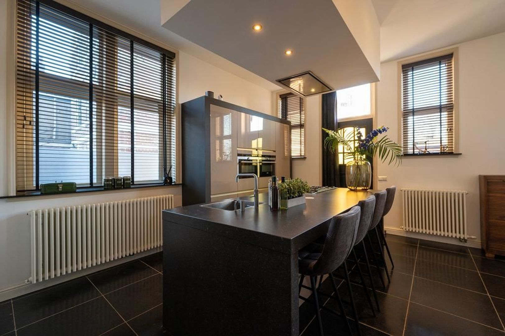 De woon-/eetkamer is voorzien van een tweede zithoek met elektra haard. Verder vindt u hier zeer hoge plafonds met strakke decoratie wat een perfecte mix is tussen de allure van weleer en het hedendaagse comfort.