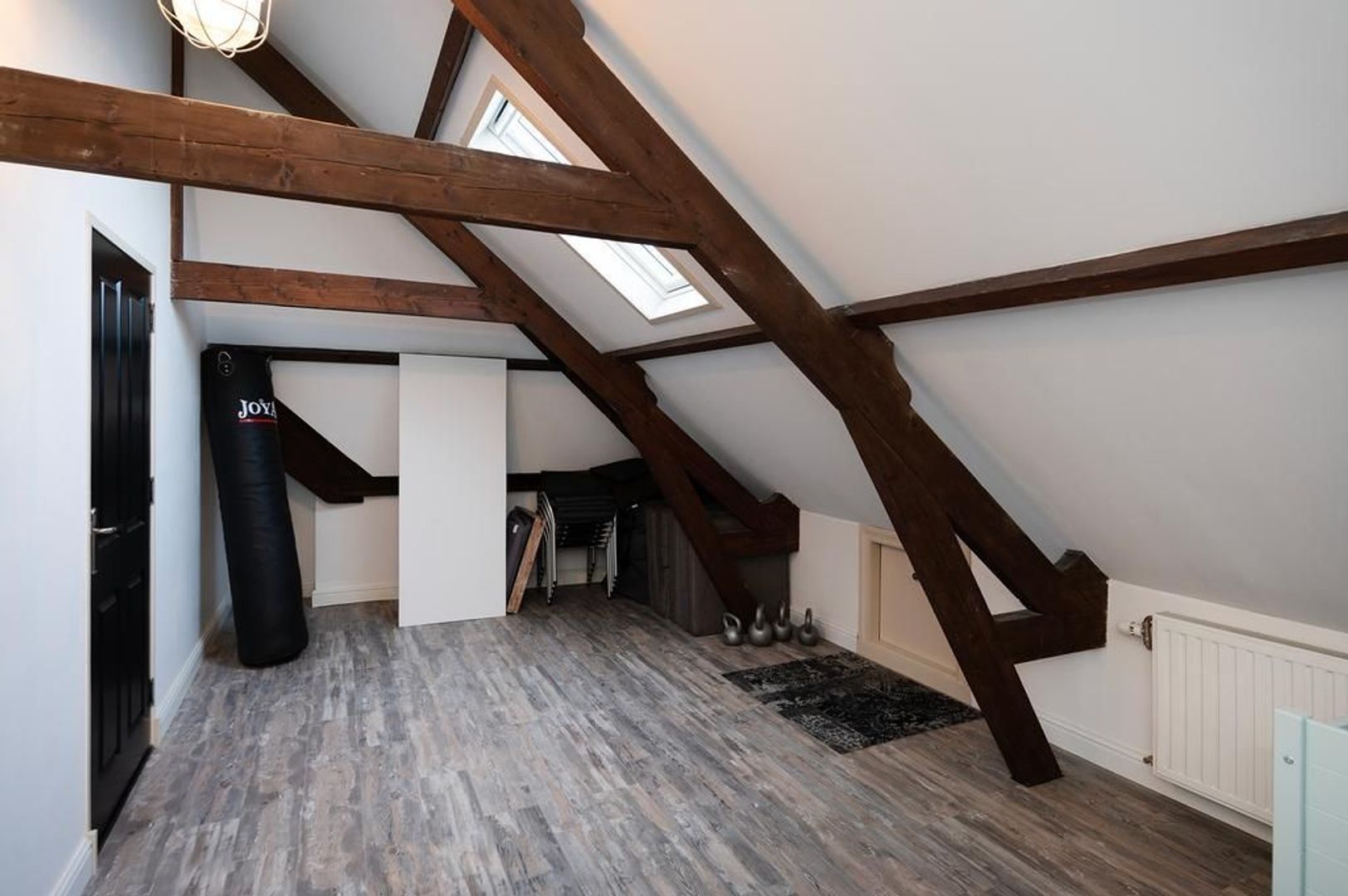 Vanuit de vierde slaapkamer heeft u toegang tot de berging en de opstelling van de wasmachine en de wasdroger. Ook op deze etage vinden we nog veel traditionele kenmerken zoals de plafonds, mooie gebrandschilderde ramen en glas in lood.
