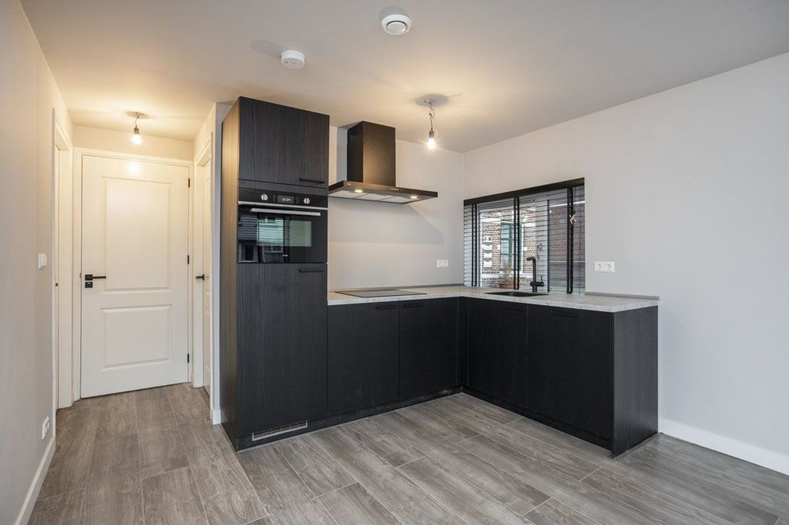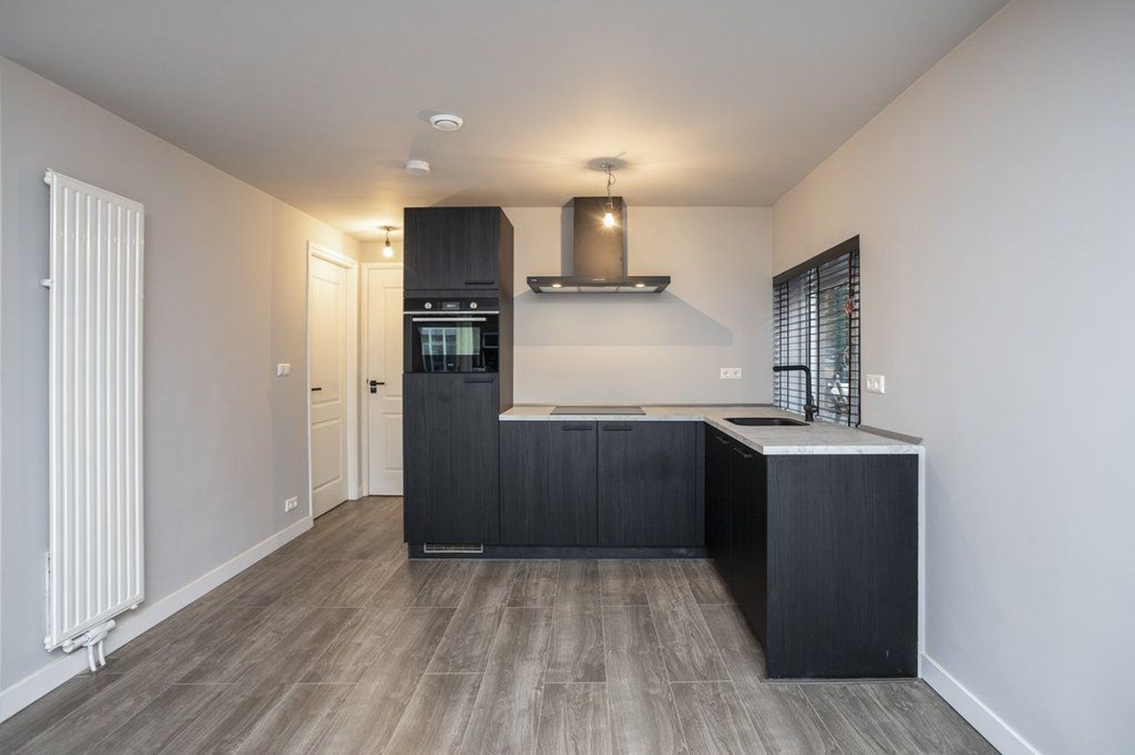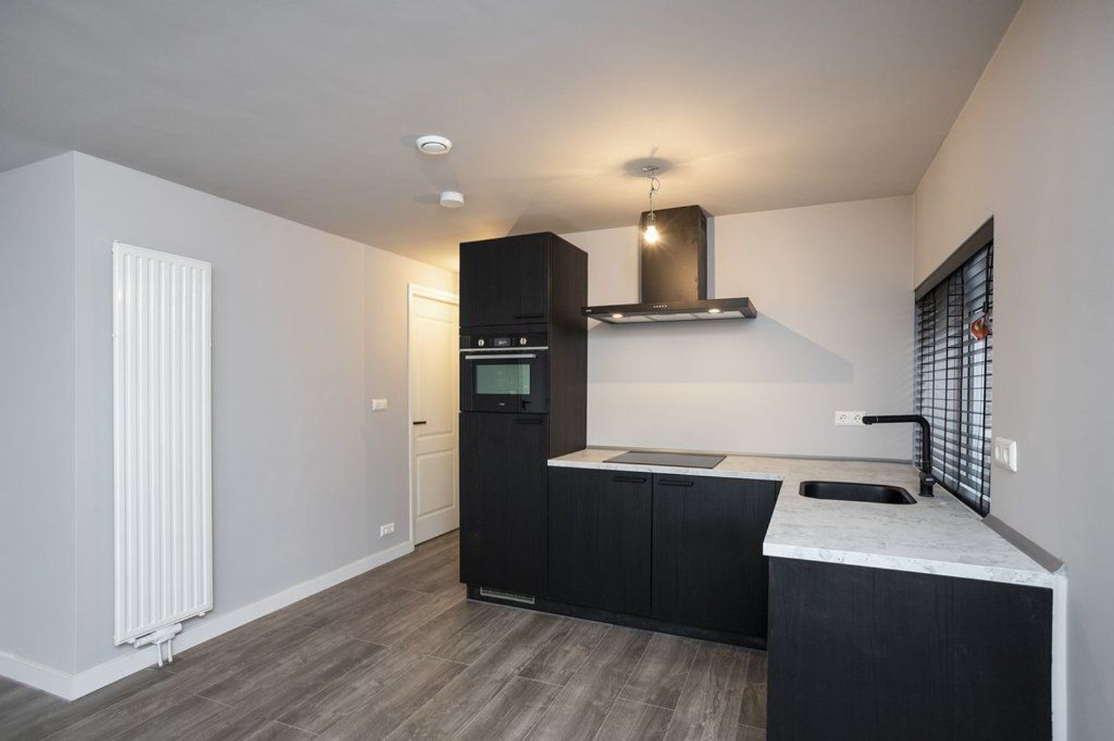 De luxe keuken is in L- opstelling en voorzien van inbouwapparatuur. Hier zorgt het zijraam weer voor veel lichtinval.