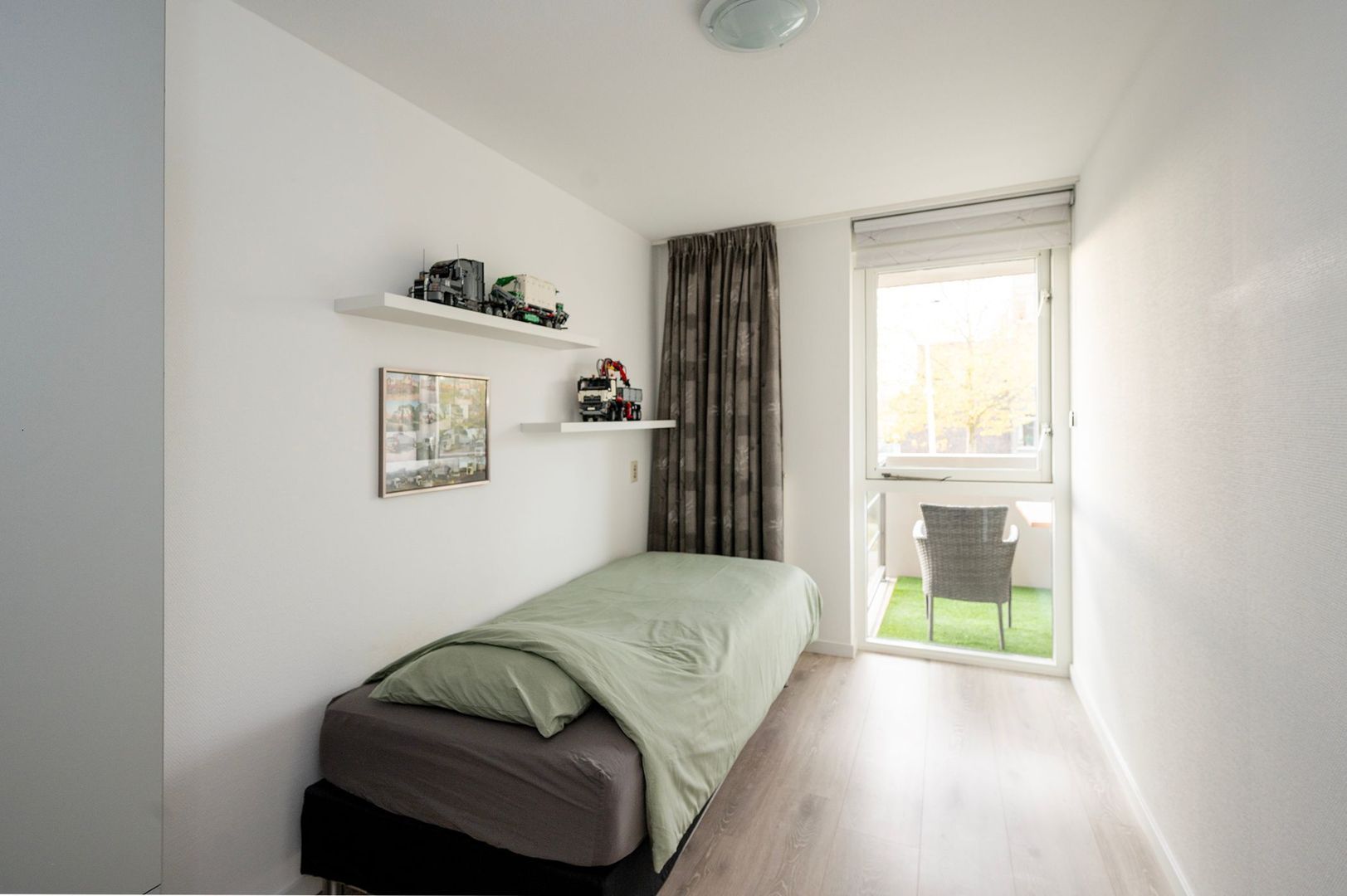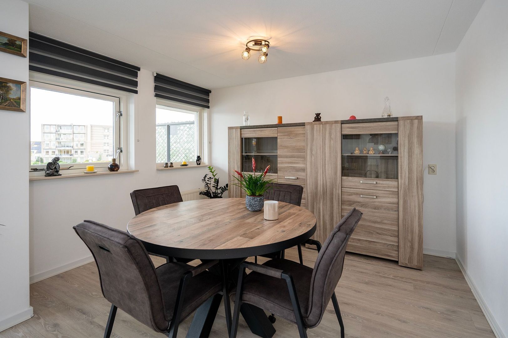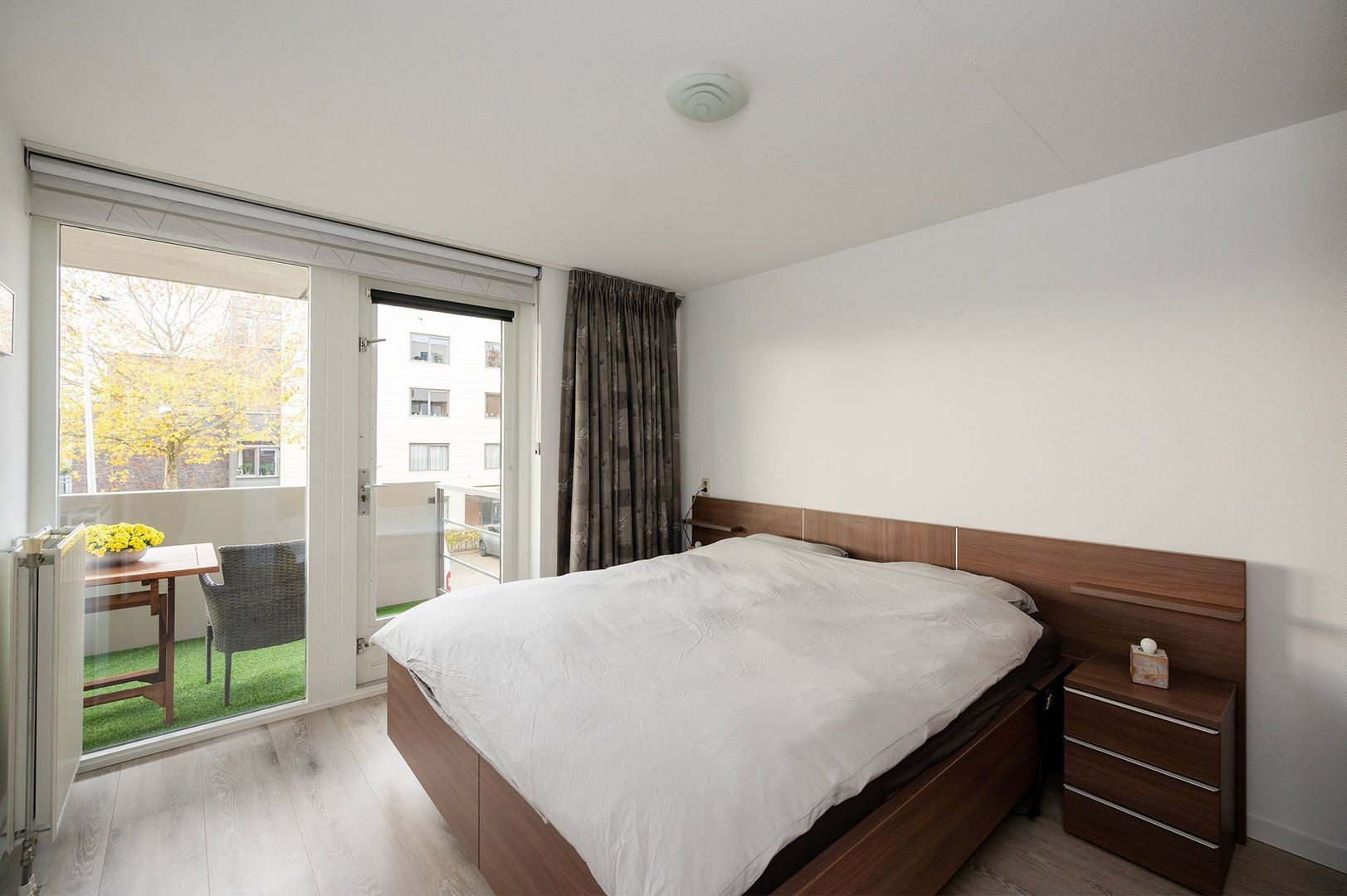 - Dankzij de grote ramen is er veel natuurlijk licht in het appartement