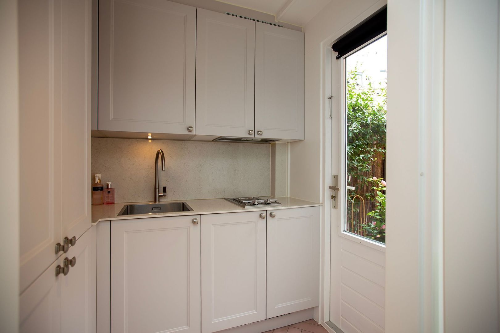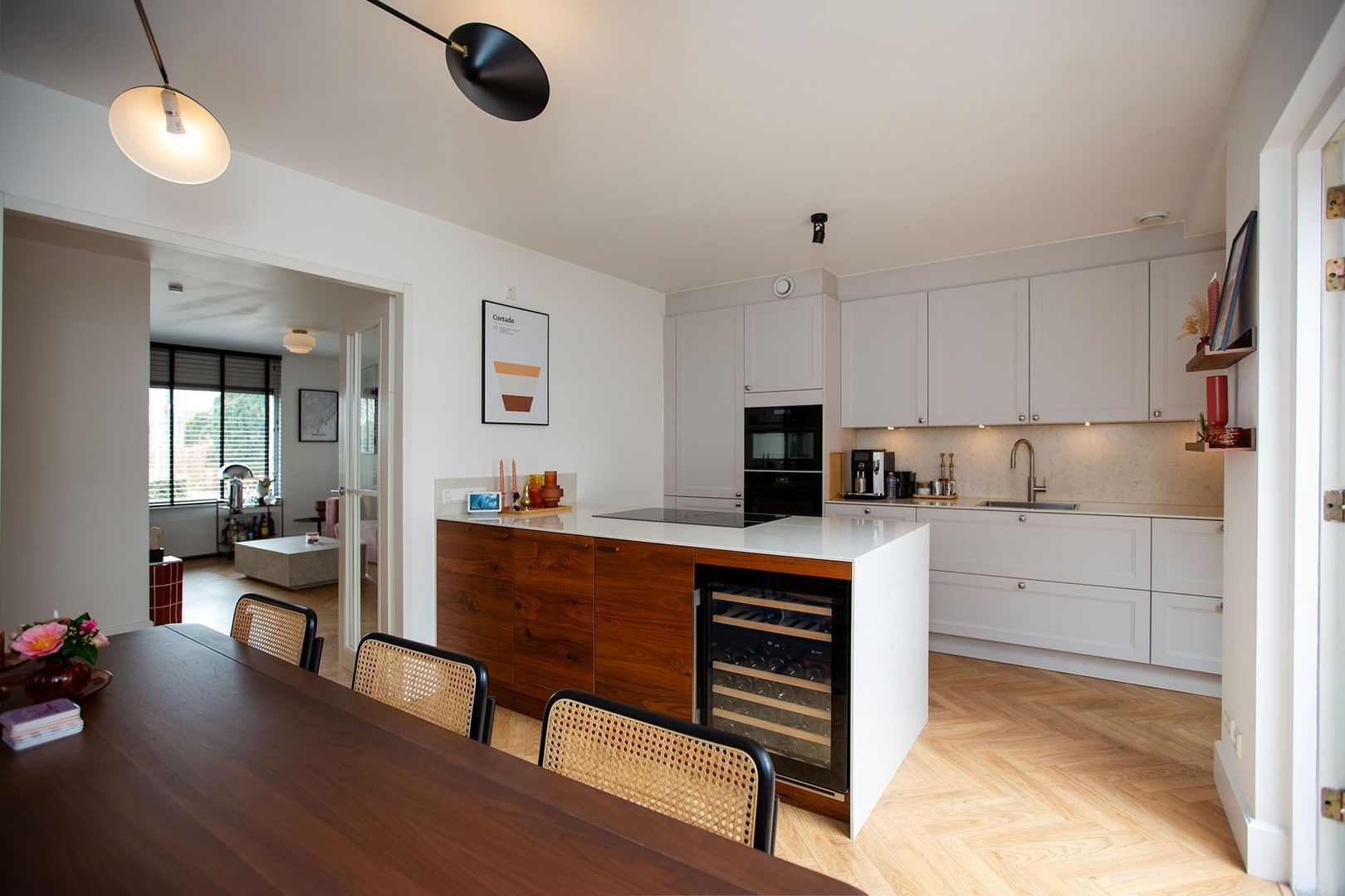 De keuken vormt het hart van de woning en is luxe uitgevoerd met een hoogwaardige opstelling en alle denkbare inbouwapparatuur, waaronder een dubbele koel-vriescombinate side-by-side geplaatst, vaatwasser, Quooker en wijnklimaatkast.