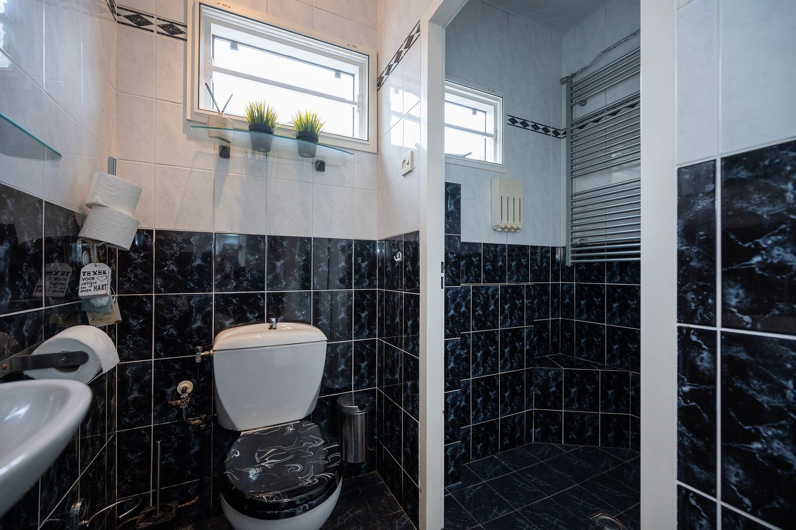 De aanbouw van de woning herbergt een bijkeuken en badkamer, praktische ruimtes die eenvoudig met moderne accenten en functionele oplossingen nog praktischer te maken is. De bijkeuken herbergt de C.V.-installatie en biedt aansluitingen voor een wasmachine en droger, waardoor het een veelzijdige ruimte is die aan de behoeften voldoet.