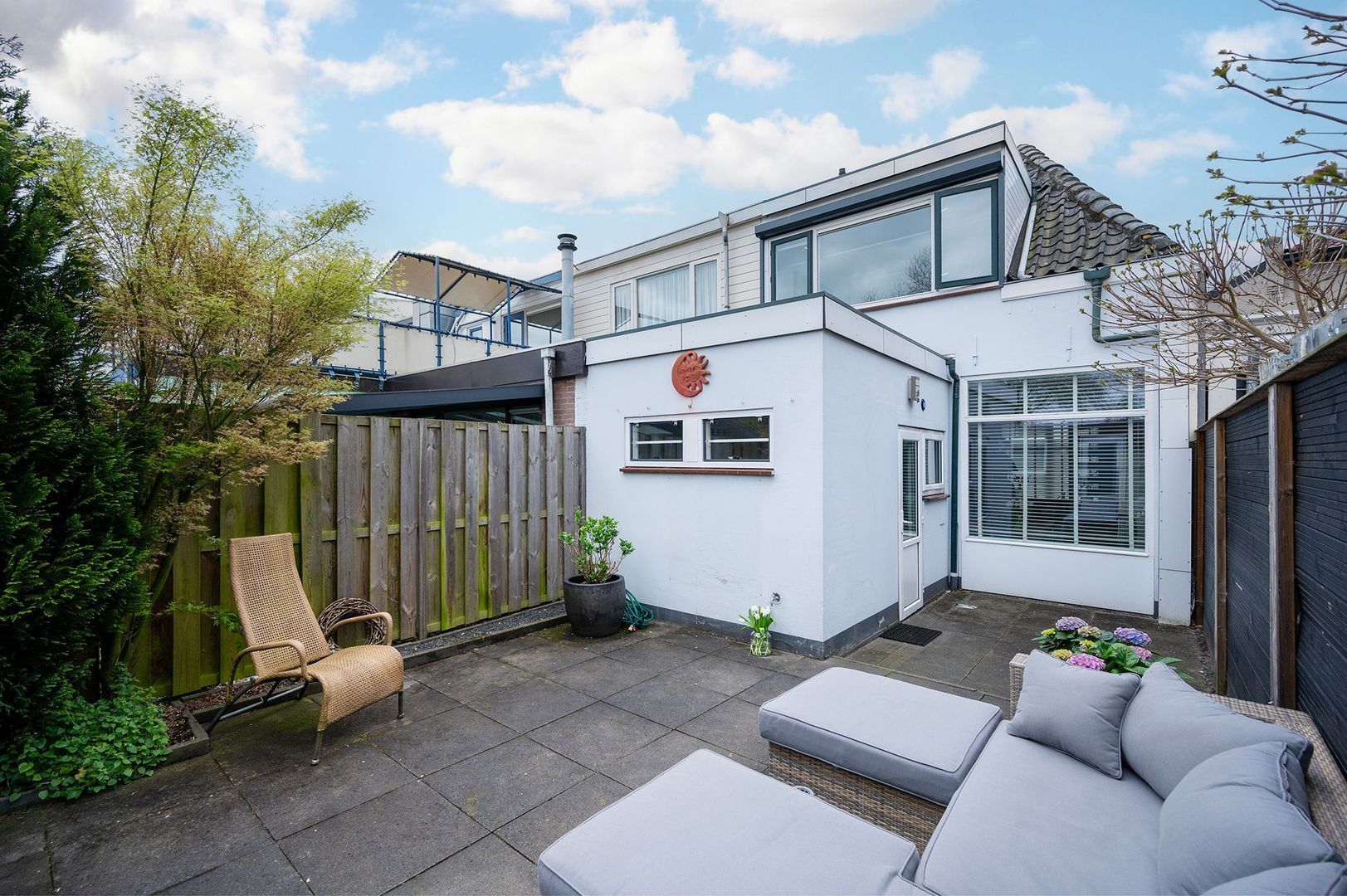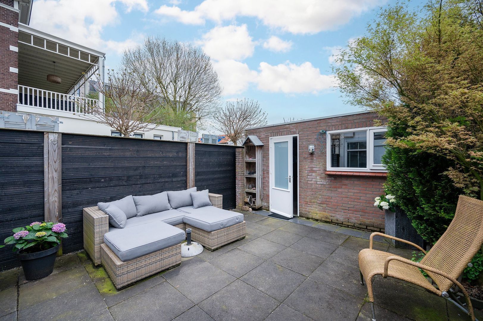Stap door naar de heerlijke achtertuin, een oase van rust en mogelijkheden. Met een grote stenen berging die toegang biedt tot het achtergelegen parkeerterrein, is deze buitenruimte een waardevol extraatje voor klussers met een passie voor tuinieren of het creëren van een gezellige buitenruimte.