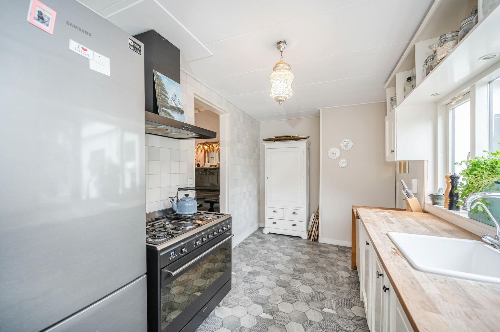 Bij binnenkomst in de woonkamer wordt u direct verrast door de ruimte en het zicht op de voorgelegen straat. Aan de achterzijde van de woning bevindt zich de keuken welke voorzien is van een groot fornuis met 5 pitten, afzuigkap, vaatwasser en voldoende bergruimte in laden en kasten. Vanuit de keuken is er toegang tot de bijkeuken met opstelling voor de wasmachine en droger. Daarnaast is hier een toilet gerealiseerd.