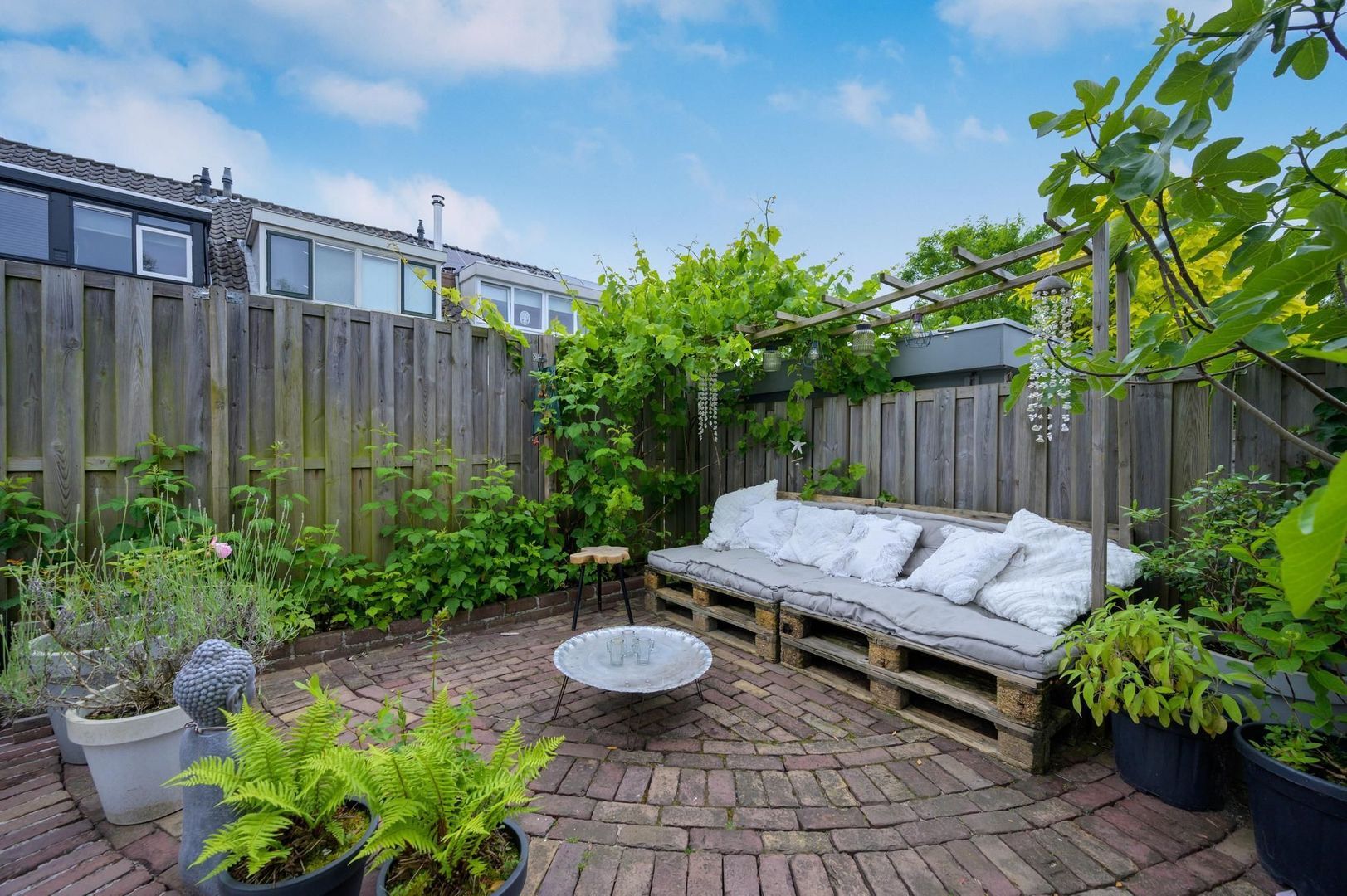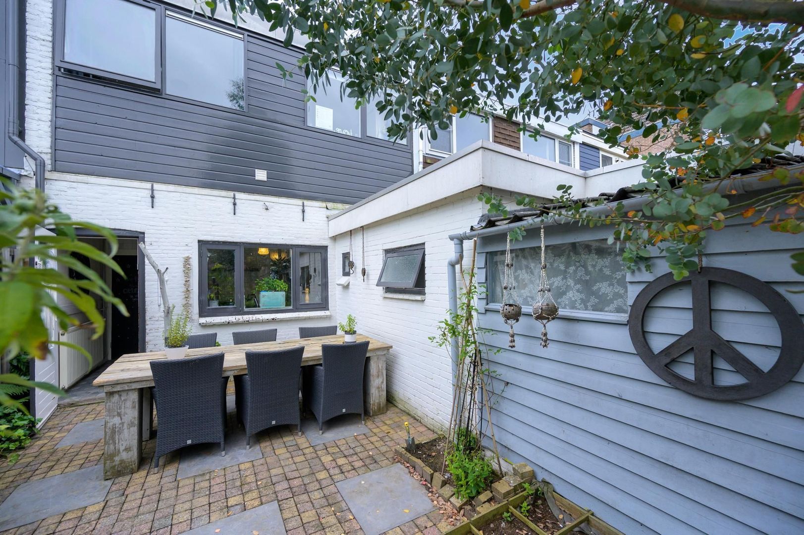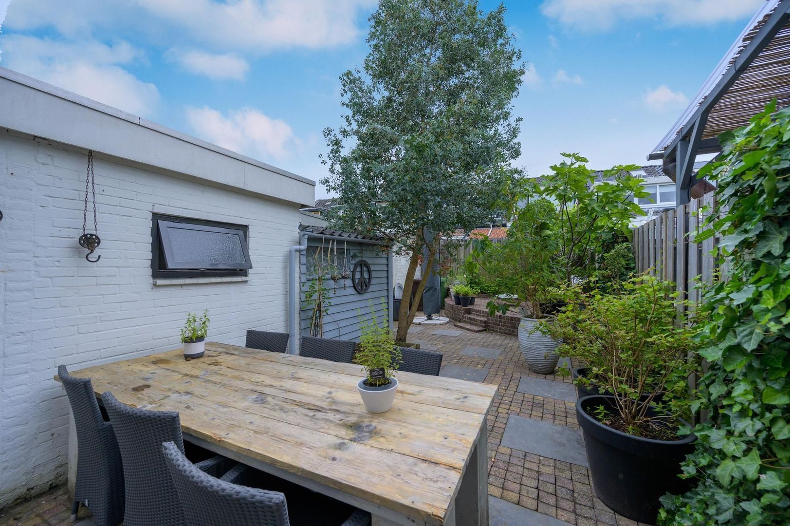 Ook is vanuit de keuken de gezellige achtertuin te bereiken met meerdere zithoeken en een berging.