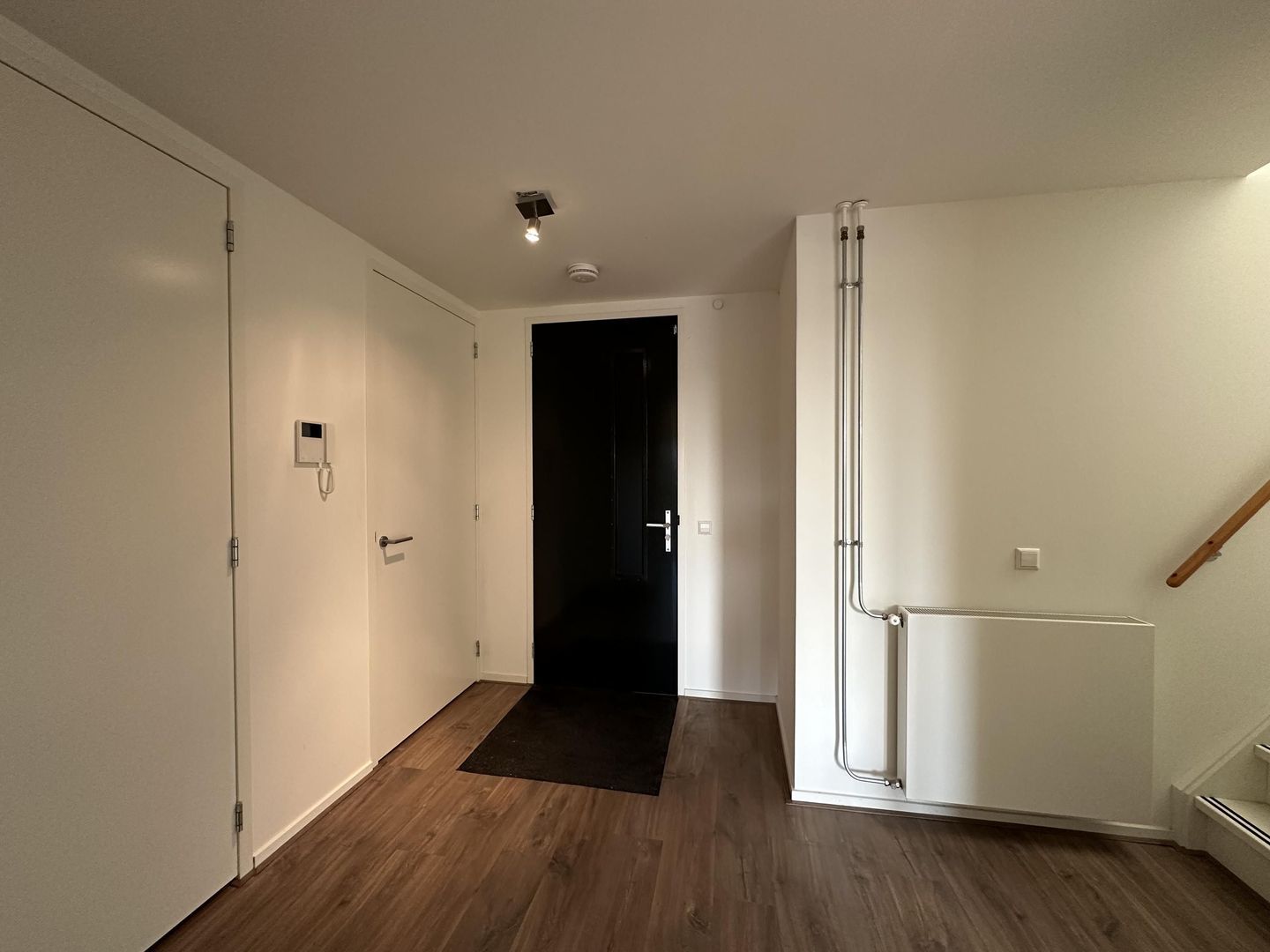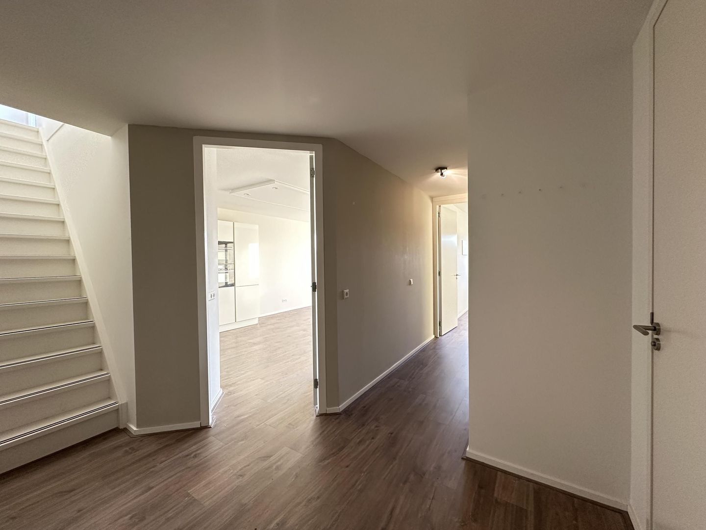 Privé-entree, ruime hal met kast waar zich de technische installatie bevindt, alsmede de wasmachine/droger aansluiting. De hal geeft verder toegang tot alle overige vertrekken, de toiletruimte met vrij-hangend closet met fonteintje plus de trapopgang naar het dakterras.