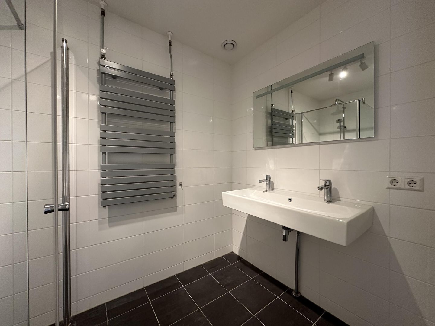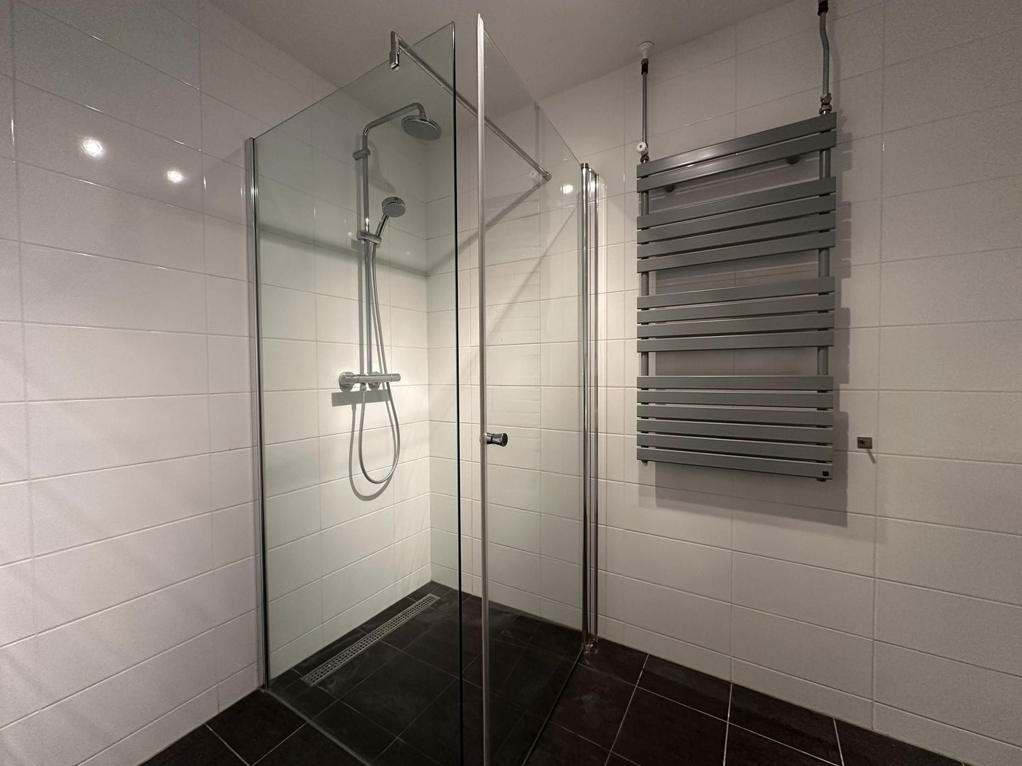 De witte hoogglans keuken beschikt over een 5-pits gaskookplaat, RVS afzuigkap, koelvrieskast, wijnkoelkast, combi oven/magnetron, praktische grote (voorraad)laden, inbouwspots en een mooi hardstenen aanrechtblad. De badkamer is fraai uitgevoerd en voorzien van een grote douchehoek met hardglazen wand, dubbele wastafel, spiegel met verlichting en designradiator. De grote slaapkamer heeft een praktische inbouwkast en airco-unit.