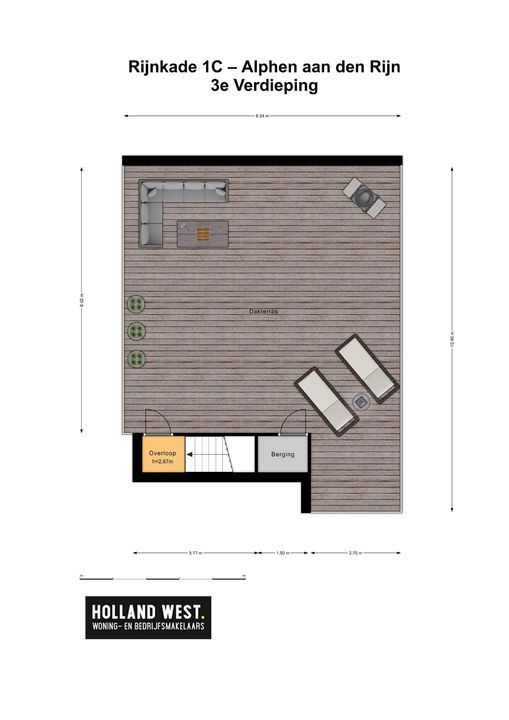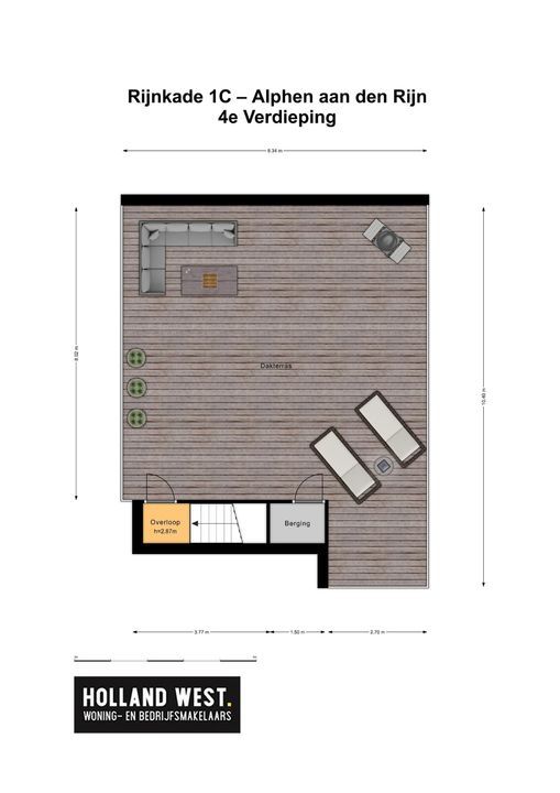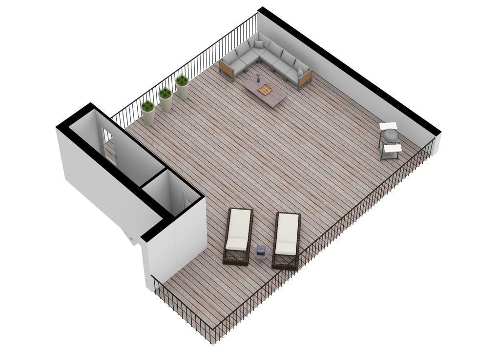 - Uniek riant en zonnig dakterras van ca. 74 m2 met zicht op de Oude Rijn