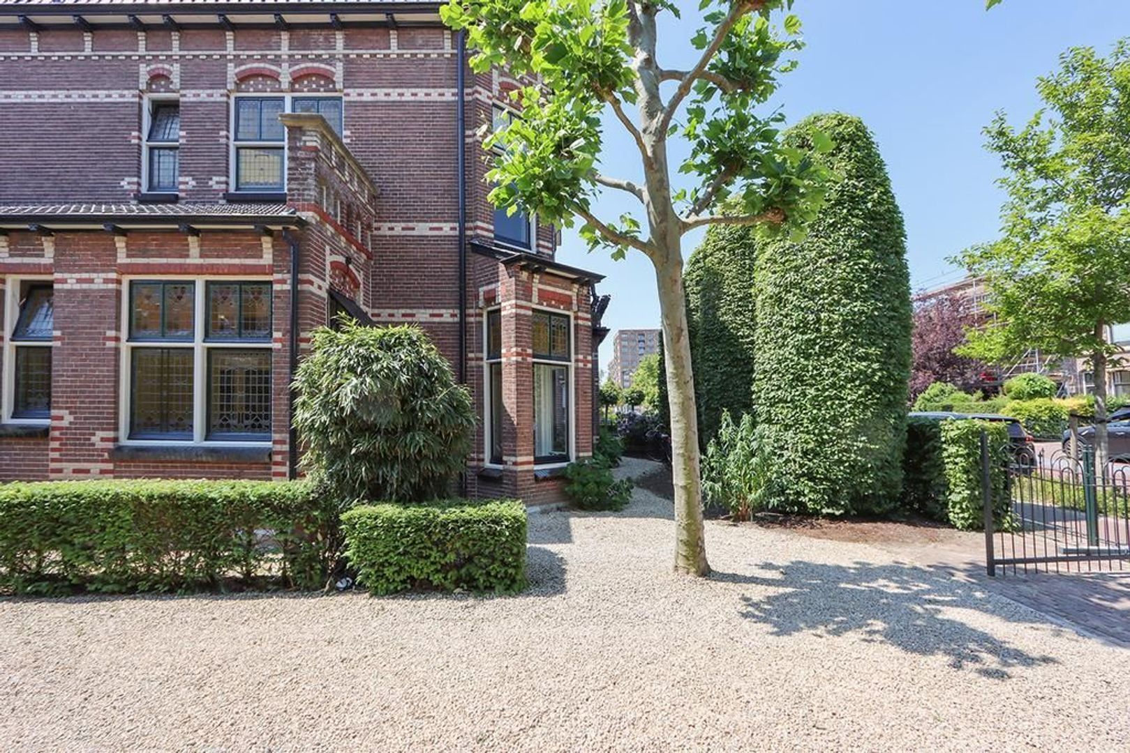 Het afgesloten perceel is direct vanaf de straat via een elektrisch bedienbaar sierlijk smeedijzeren hekwerk te bereiken, waarbij aan de voorzijde ruimte is voor het parkeren van meerdere voertuigen op eigen terrein. De voortuin is voorzien van diverse volgroeide bomen, welke de woning enige vorm van privacy bieden. Vanaf het voorterrein is er toegang tot de entree van zowel het privégedeelte van de villa, de achtergelegen praktijkruimte alsmede de achtertuin.