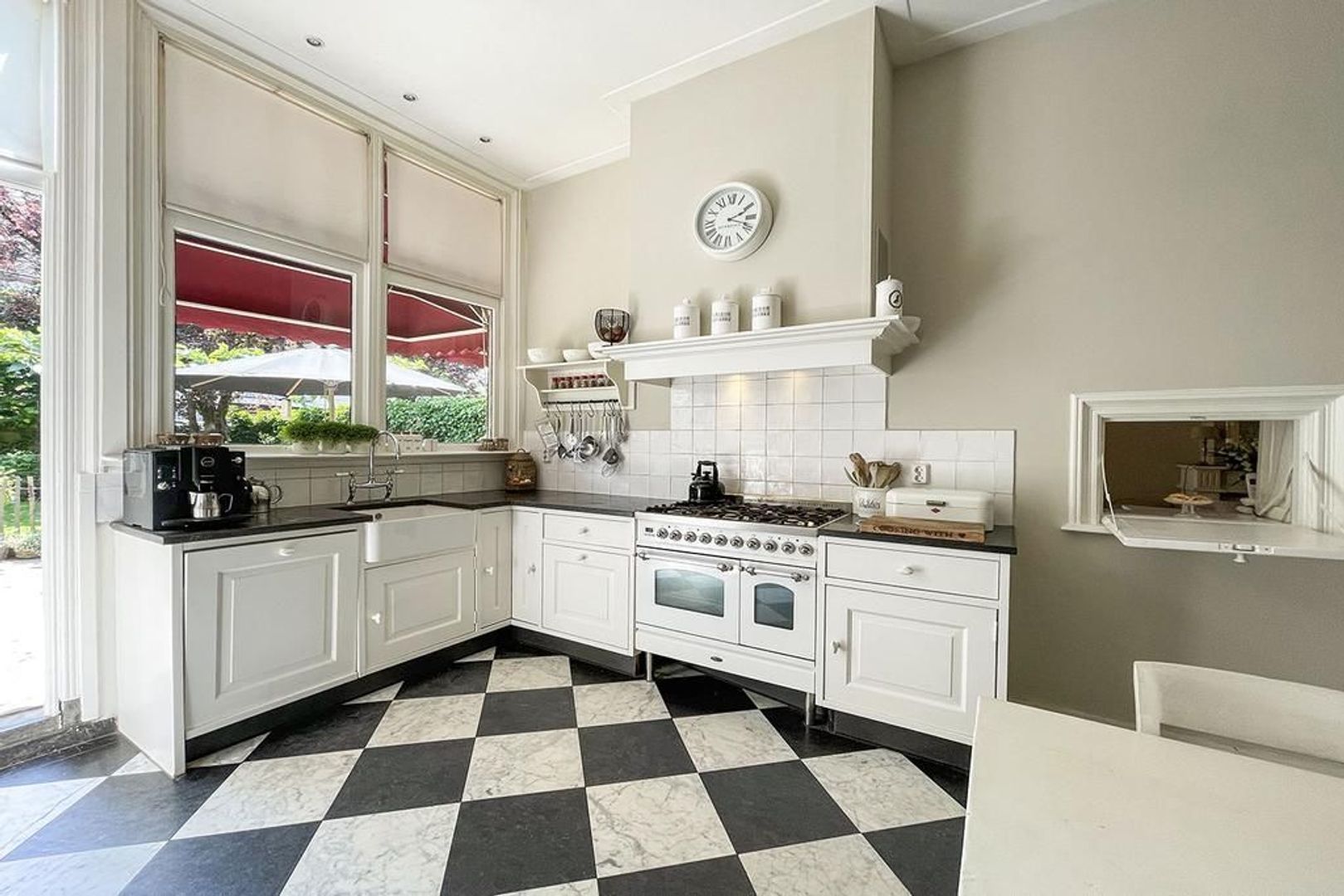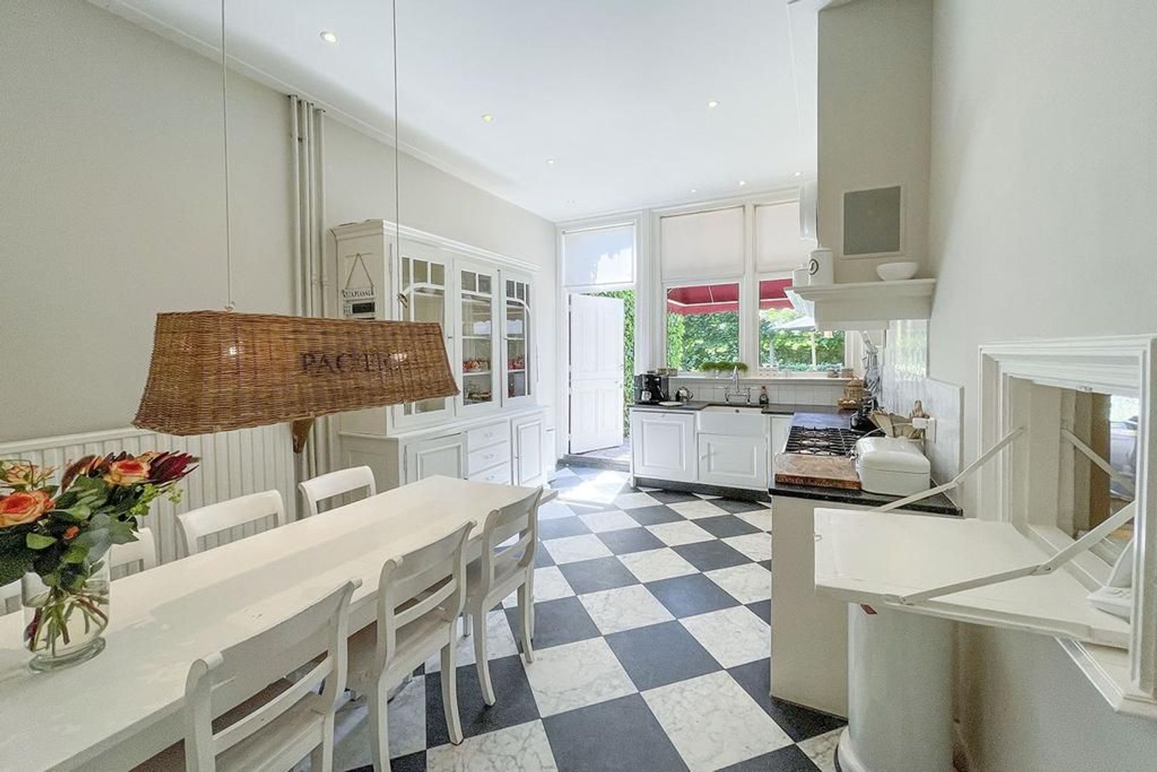 De keuken bevindt zich aan de achterzijde van de woning en staat door middel van een klein doorgeefluik in verbinding met de eetkamer wat zorgdraagt voor een feeëriek effect. De keuken is van alle gemakken voorzien en een prachtige royale ruimte om heerlijke maaltijden in te bereiden. Zo treft u hier onder andere een Boretti gaskookplaat met 6 gaspitten, een vaatwasser, een riante spoelbak en veel bergruimte.