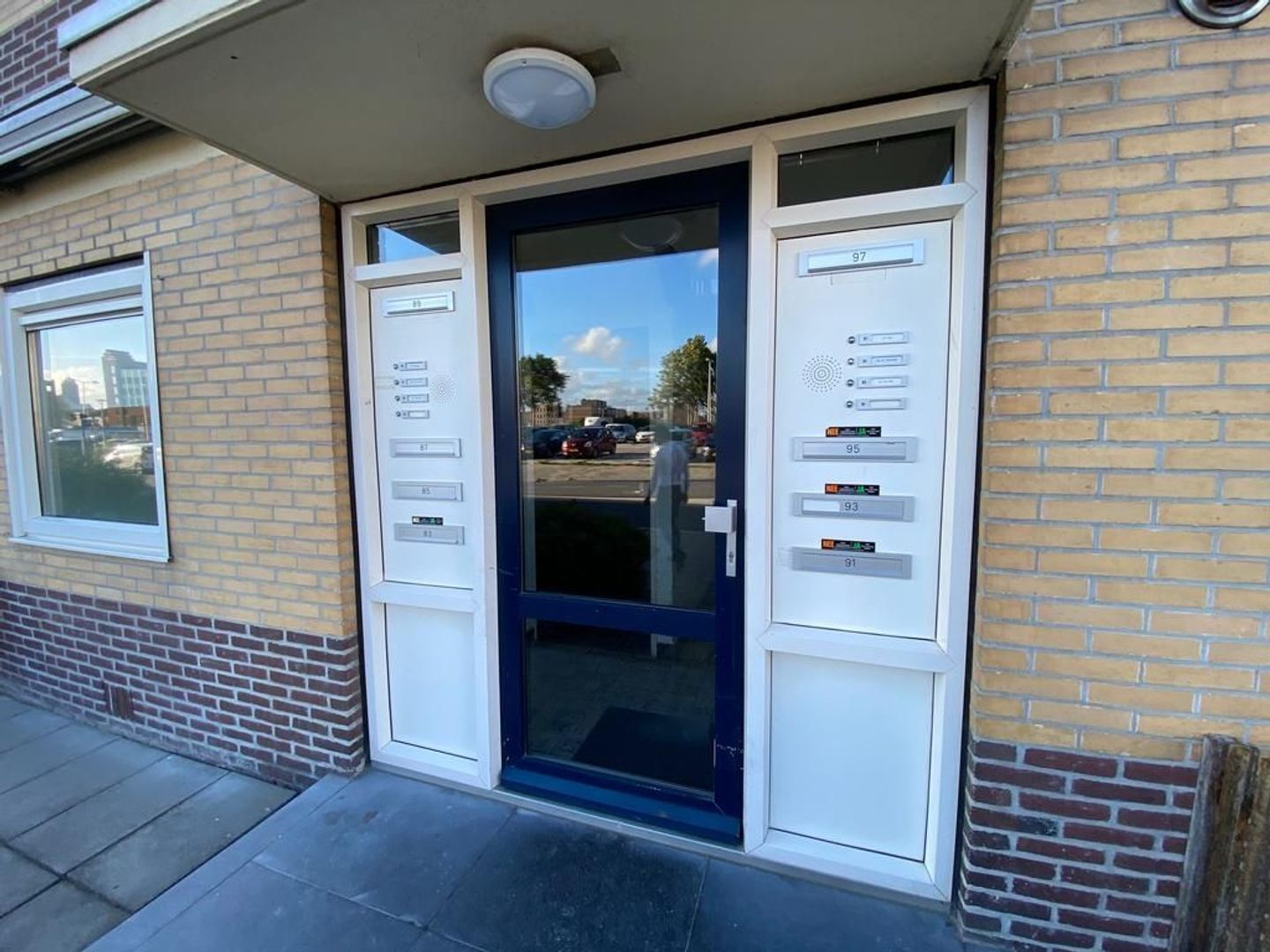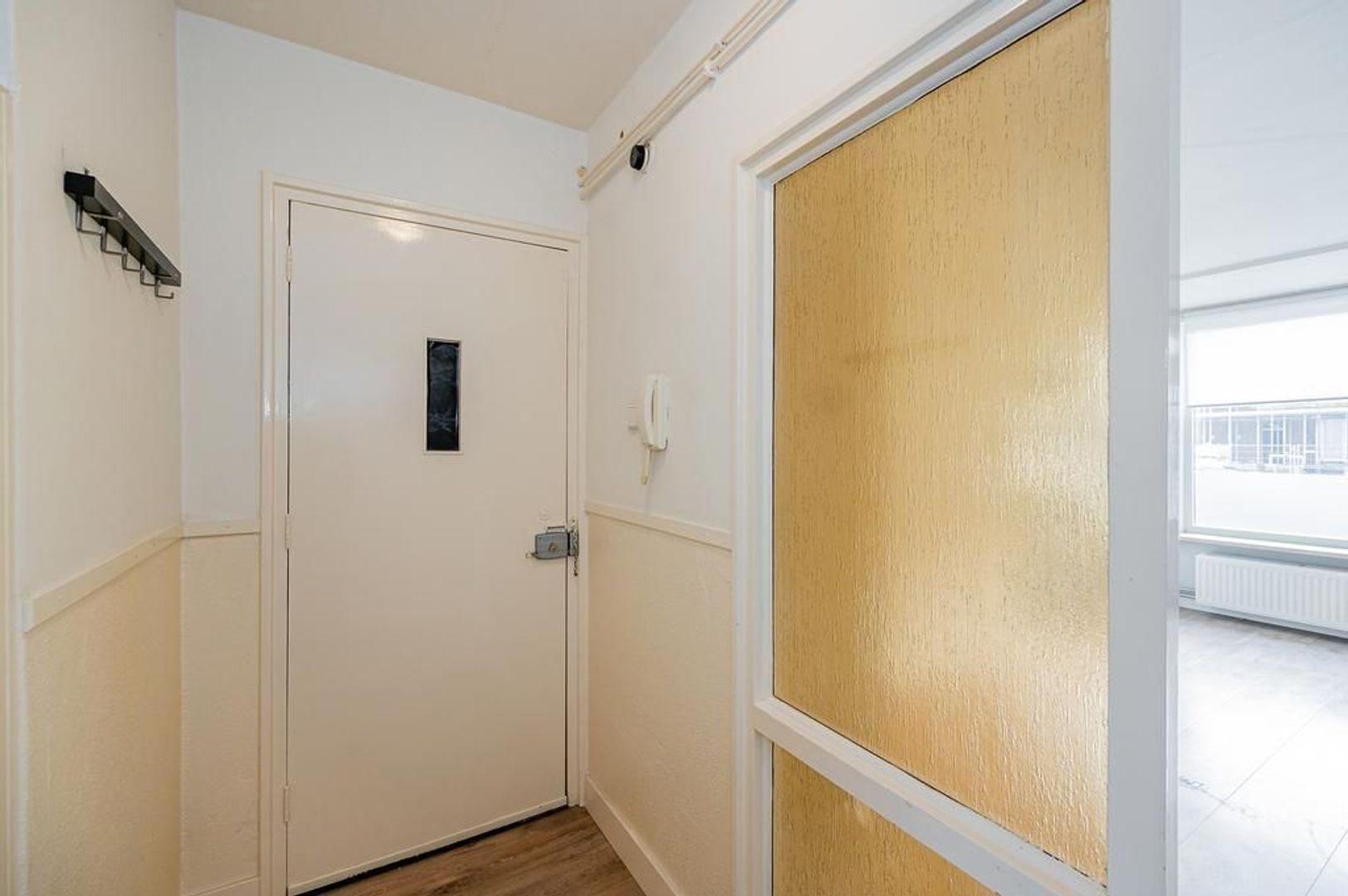 Entree van het appartement met gelijk daarnaast de deur van de berging/bijkeuken.