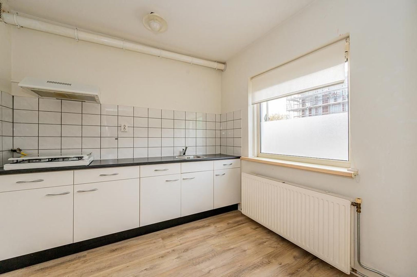 De hal met garderobe biedt toegang tot alle overige vertrekken. De woonkamer en keuken bevinden zich aan de straatzijde en hebben een fijne lichtinval. Vanuit de woonkamer komt je uit op het voorterras (zuid ligging) welke voorzien van een brede elektrisch bedienbare zonwering. Via de woonkamer komt je in de royale maar eenvoudige keuken (2013) welke is voorzien van een eenvoudige keukenblok en losse kookplaat, een afzuigkap en een vaste provisiekast. Vanuit de keuken bereikt u de berging/bijkeuken waar tevens de CV-stelling (Vaillant VHR 2020) en de aansluiting voor de wasautomaat en droger is.