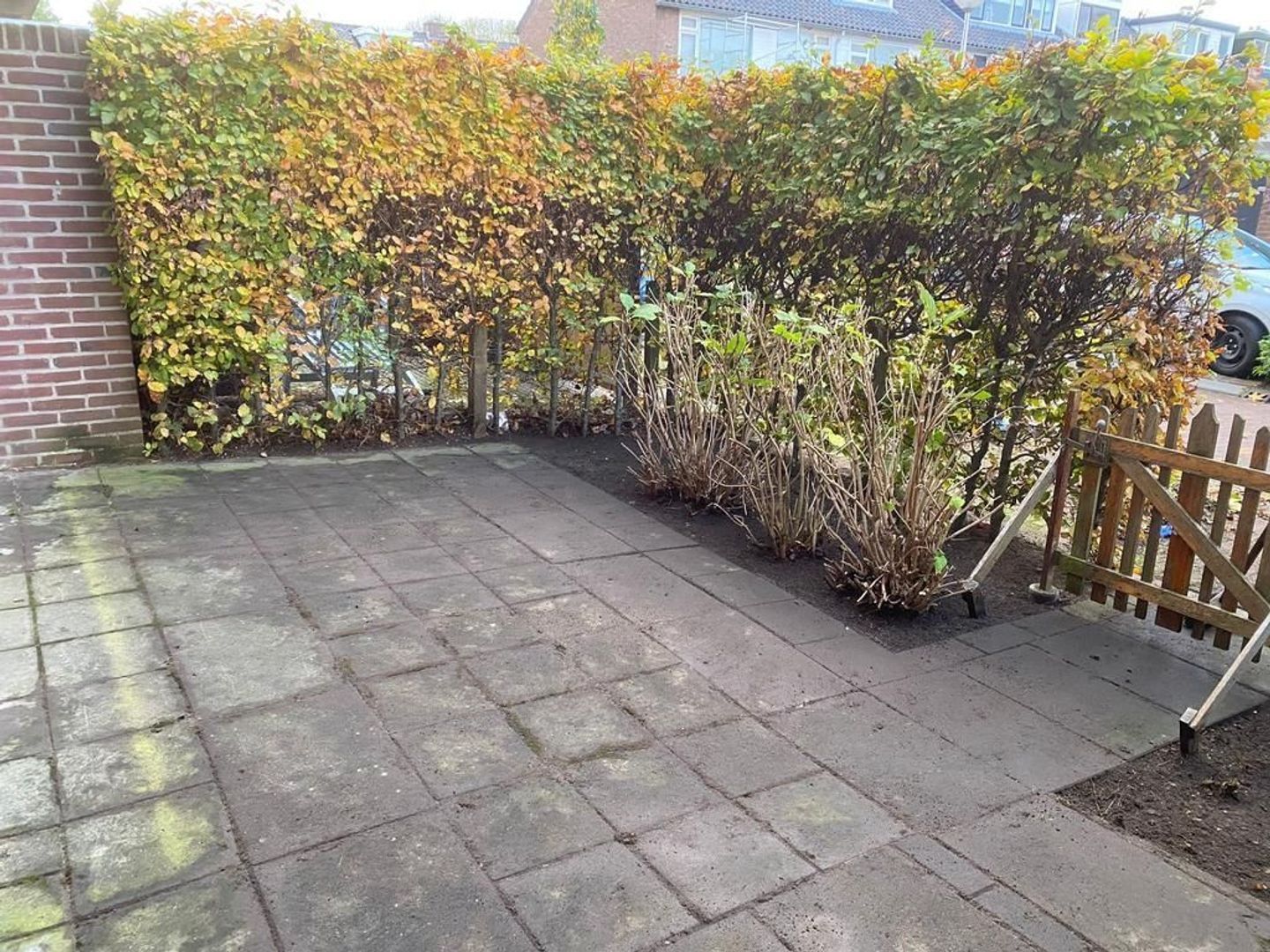 - In de achtertuin een grote bergbox voor tuinmeubels en fietsen/motor/scooter