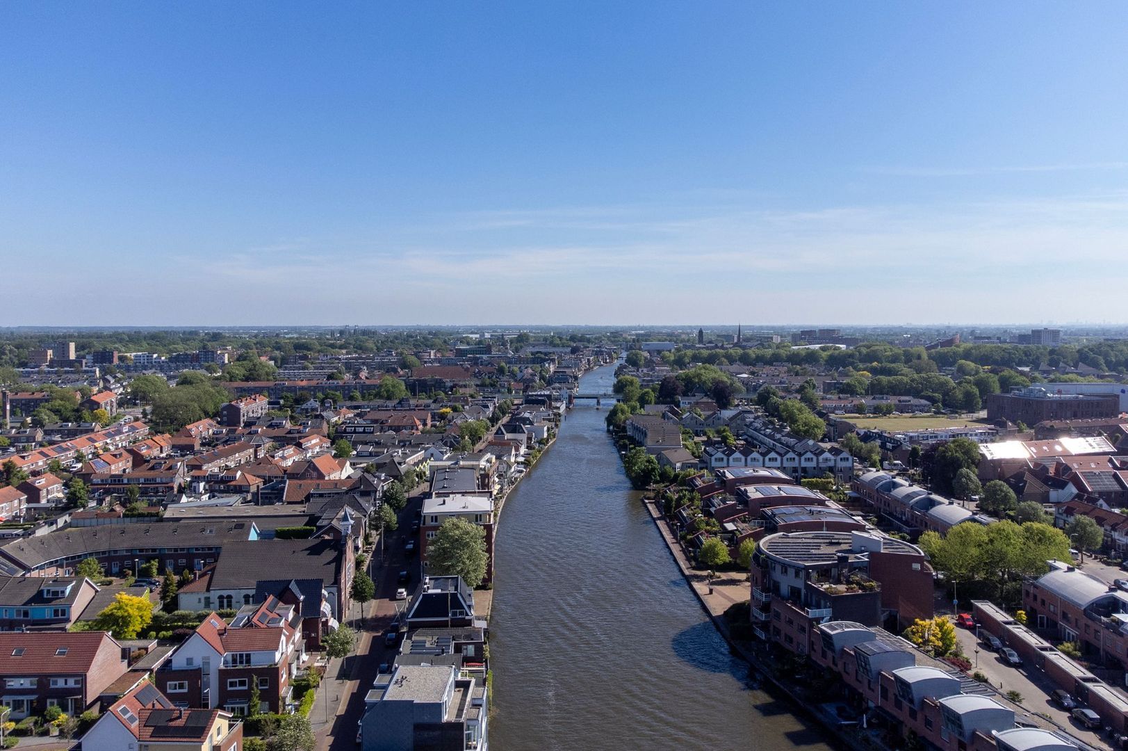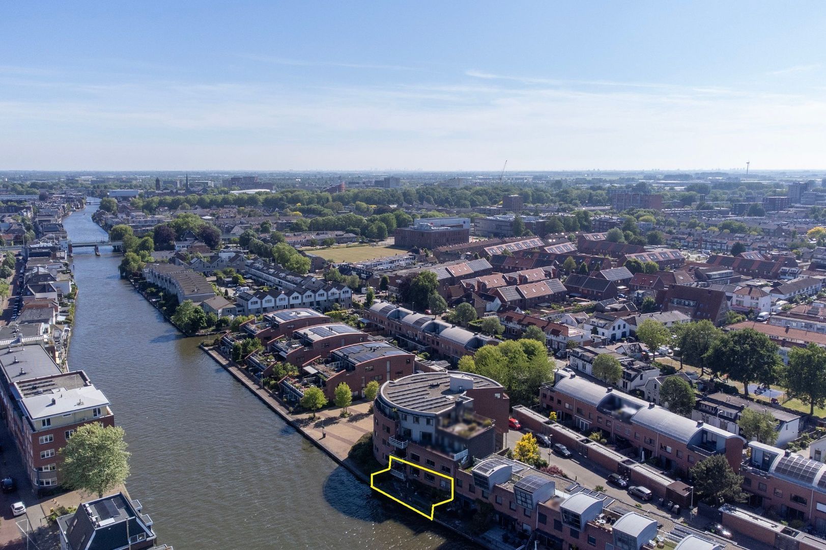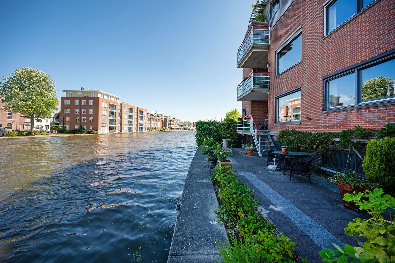 De keuken is uitgevoerd in een moderne stijl en voorzien van alle gemakken: een gaskookplaat, afzuigkap, oven, vaatwasser en koelkast zijn volledig geïntegreerd. De woonkamer is stijlvol afgewerkt met een warme houten vloer en lichte wanden die de ruimte een rustige en eigentijdse uitstraling geven. Vanuit de woonkamer heeft u directe toegang tot het balkon én de privétuin – een zeldzame combinatie die het gevoel van binnen en buiten wonen perfect met elkaar verbindt. Het uitzicht op de langsvarende boten op de Oude Rijn is elke dag weer anders en blijft fascineren.