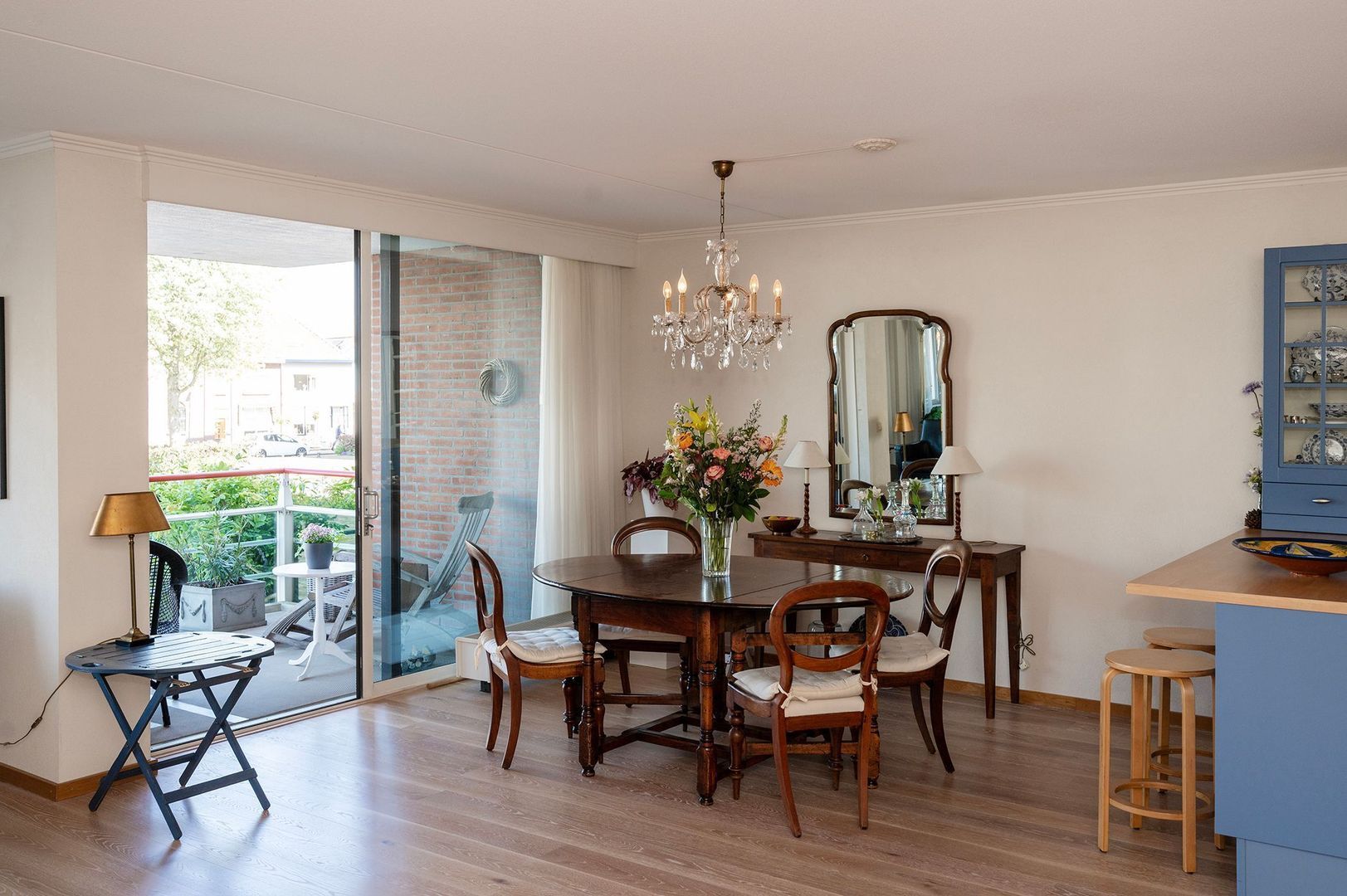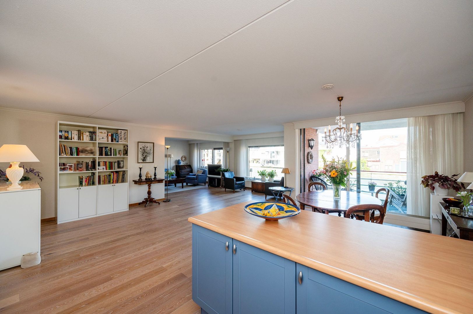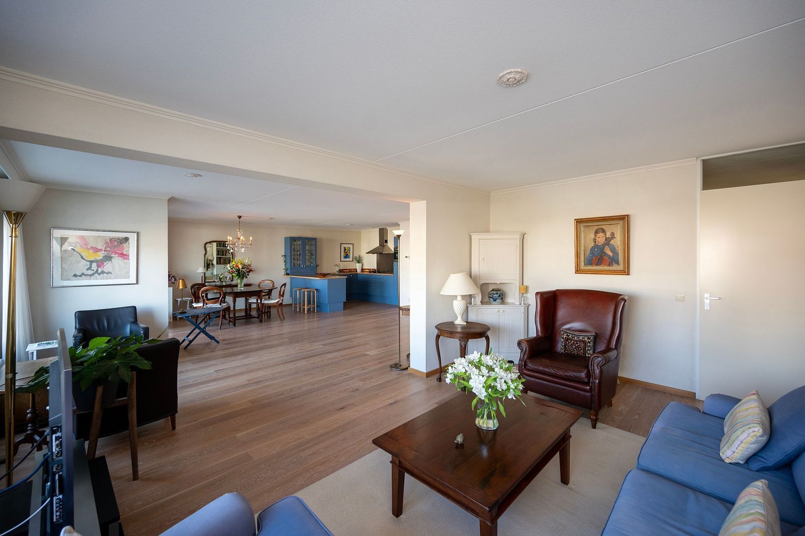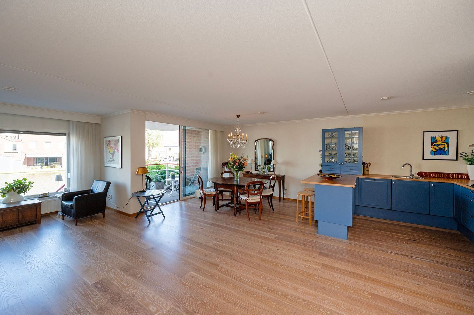 De ruime woonkamer vormt het hart van het appartement en is dankzij de grote raampartijen heerlijk licht. De ruimte sluit naadloos aan op de open keuken, waardoor een fijne, open leefomgeving ontstaat die uitermate geschikt is voor zowel dagelijks wonen als het ontvangen van gasten.