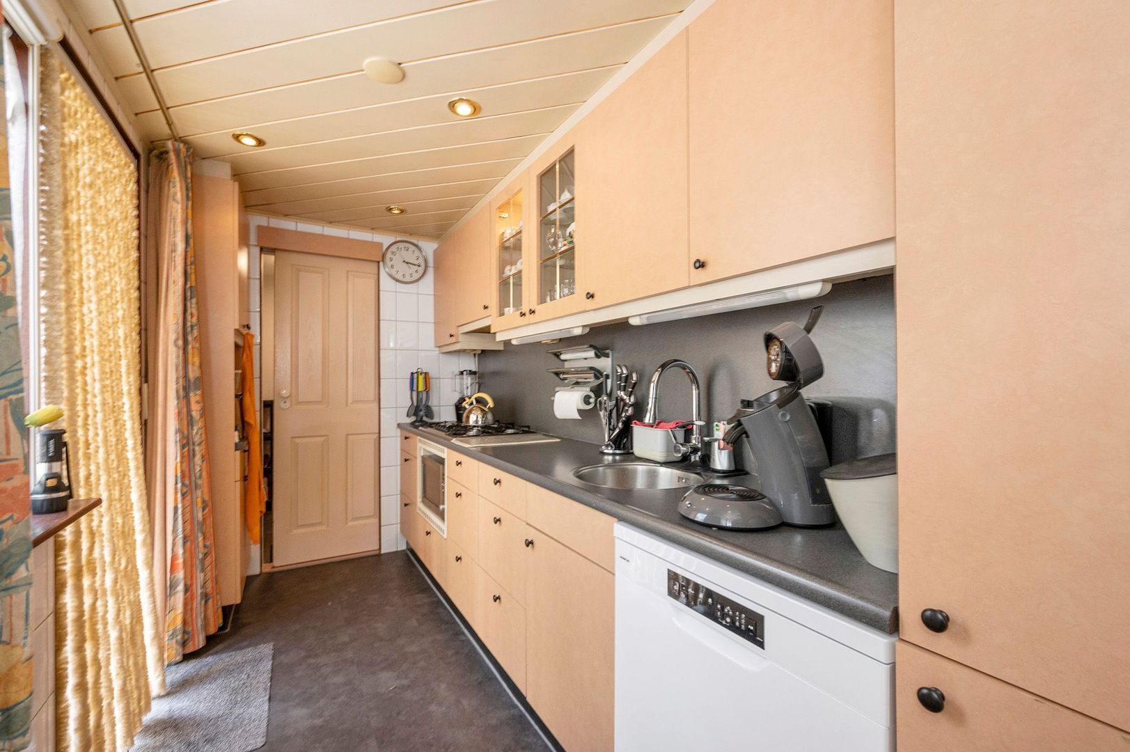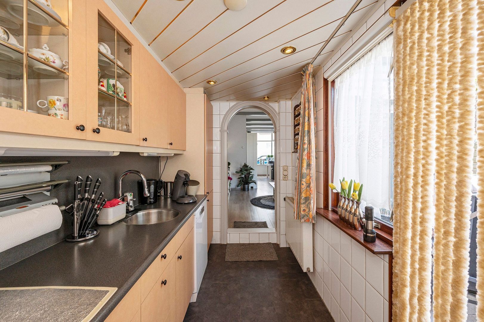 De keuken bevindt zich aan de achterzijde van de woning en beschikt over diverse inbouwapparatuur. Vanuit de keuken is er toegang tot een tweede hal met de toiletruimte, wasruimte en de achterplaats.