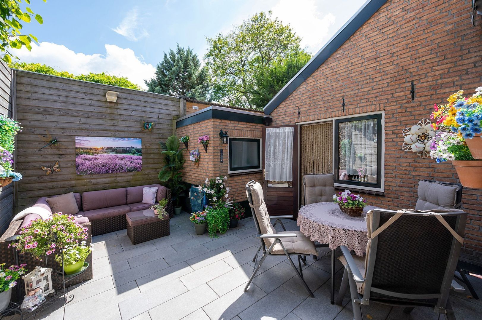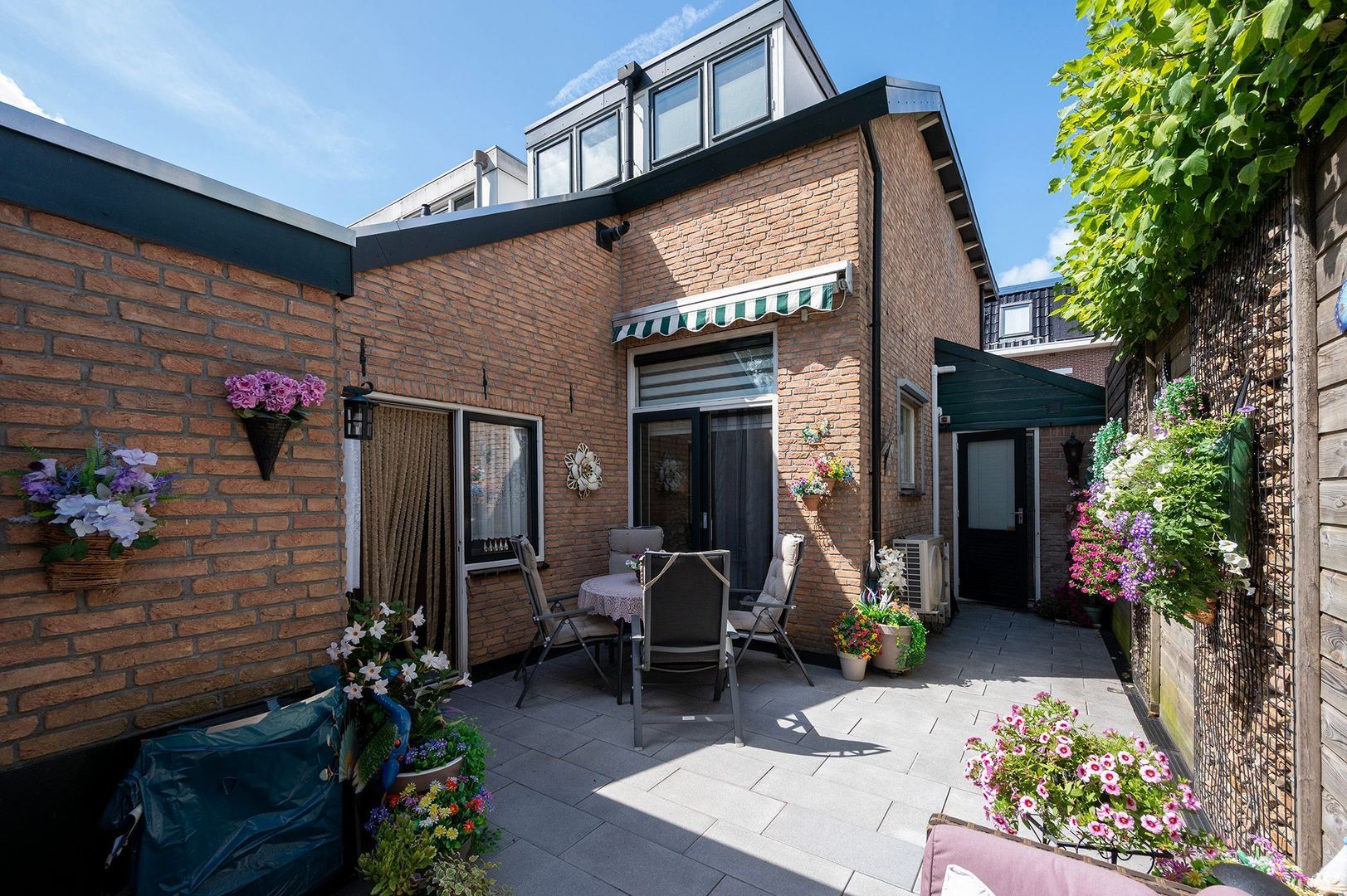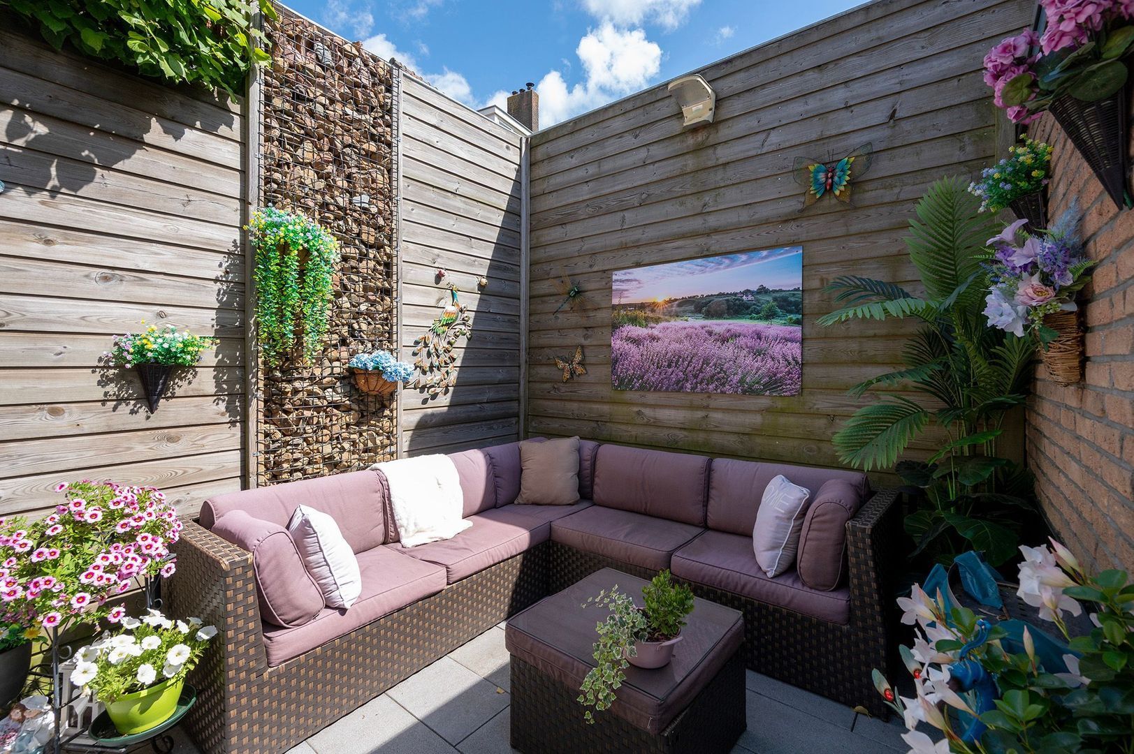 De achterplaats is gelegen op het zuidoosten en daarmee ideaal voor de ochtendzon. Hier kun je heerlijk in alle rust genieten van een kop koffie of ontbijt in de zon. De plaats is groot genoeg voor een fijne tuinset en biedt zo een prettige plek om te ontspannen, terwijl je toch op loopafstand van het centrum woont. Over de gehele zijkant van de woning zijn twee bergingen die direct toegang geven tot de achterplaats en de woonkamer.