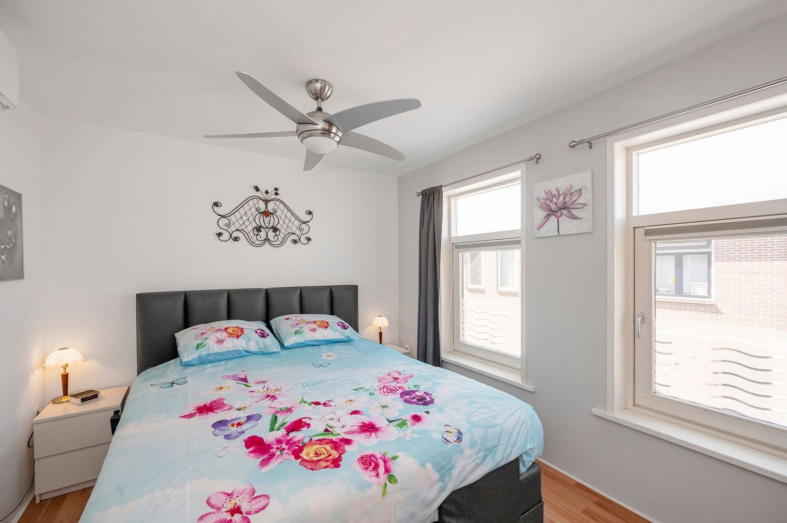 De eerste verdieping bestaat uit een ruime overloop, twee slaapkamers en de badkamer. De slaapkamer aan de voorzijde beschikt over een vaste kast en een airco. De slaapkamer aan de achterzijde is woning breed, heeft een ruime kast onder het dak waarin tevens de cv-ketel is geplaatst, beschikt over een wastafel en is eveneens voorzien van een airco.