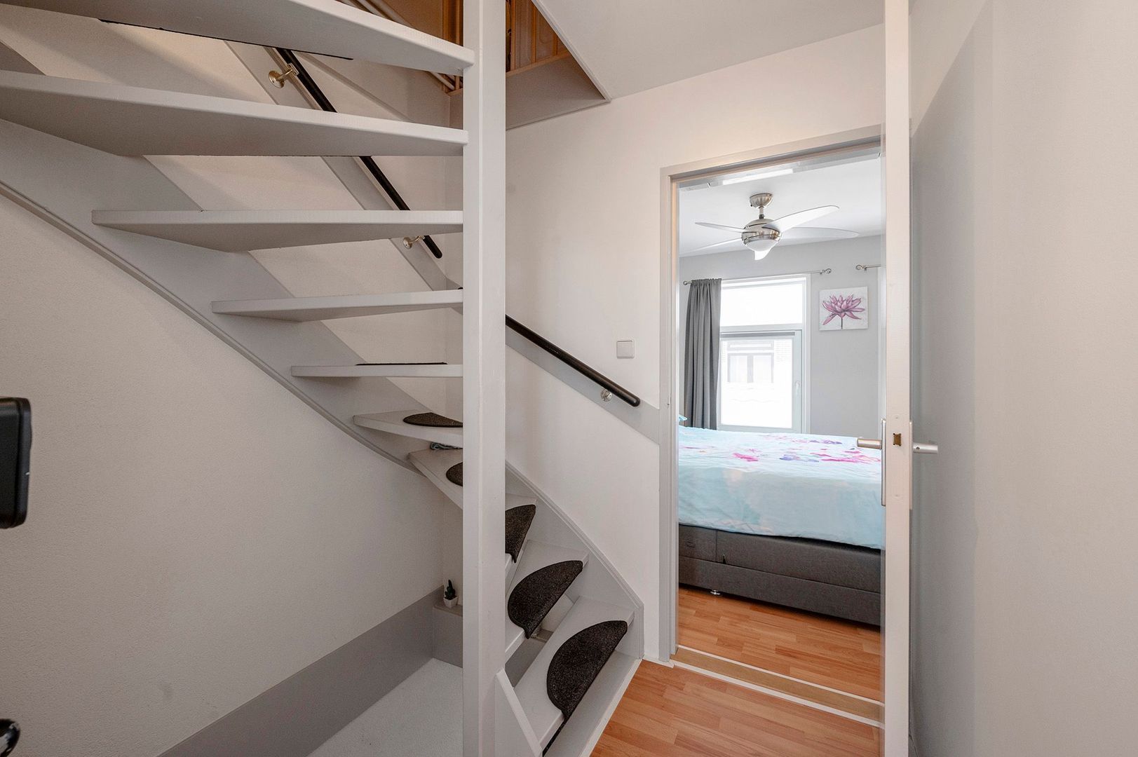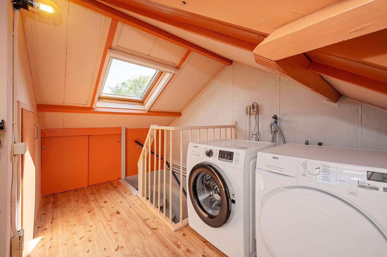 De tweede verdieping is bereikbaar via een vaste trap en biedt volop mogelijkheden voor extra slaapkamers of een werkruimte. Onder het gehele schuine gedeelte zijn praktische schuifkasten geplaatst, waardoor er veel bergruimte beschikbaar is. Voor nu wordt deze verdieping gebruikt als bergzolder.