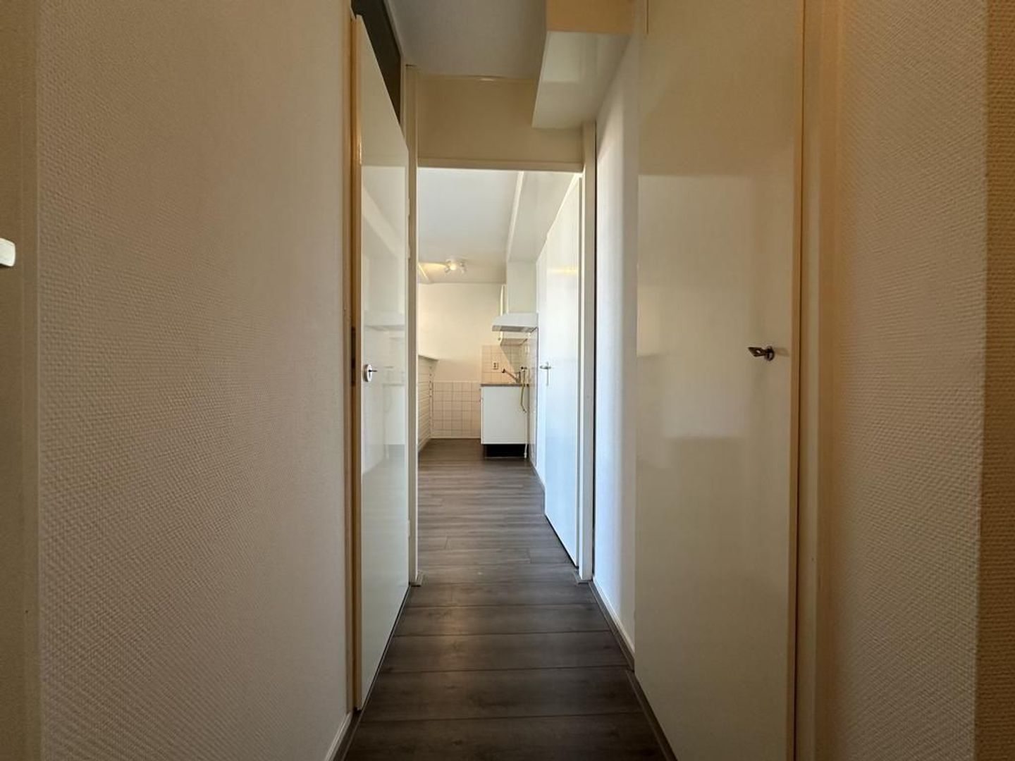 Hal met toegang tot woonkamer met open keukenopstelling, badkamer, cv-kast en meterkast. Woonkamer met open keukenopstelling en toegang tot slaapkamer. De woonkamer en de slaapkamer hebben uitzicht op een groenstrook met speeltuin welke achter het complex is gelegen. De badkamer is voorzien van een douche, wastafel, toilet en wasmachine-aansluiting.