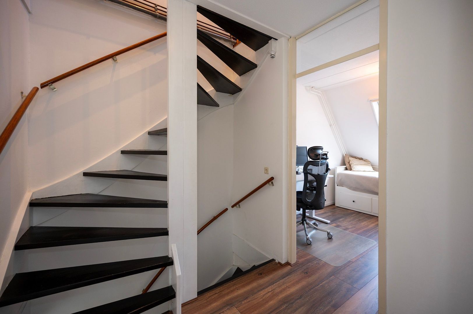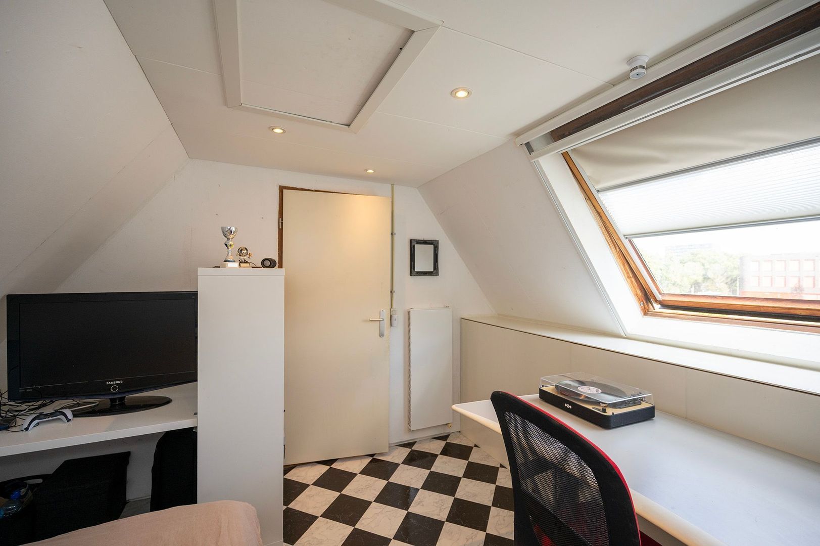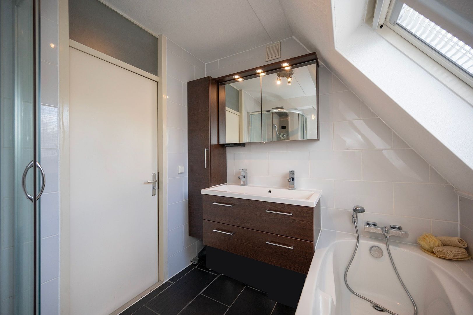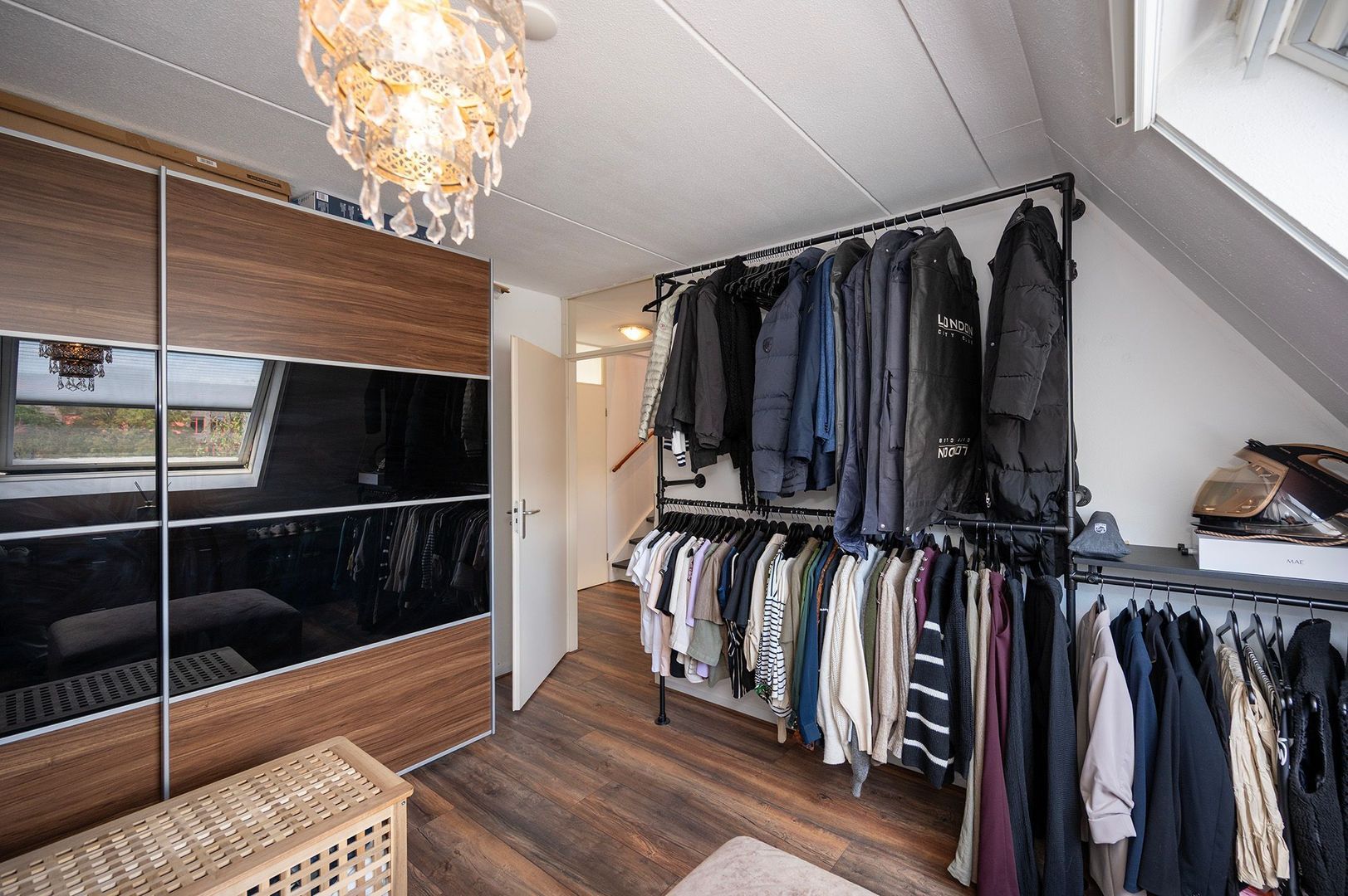De zolder is bereikbaar via een vaste trap. Hier vindt u de voorzolder met aansluitingen voor wasmachine en droger, de cv-installatie, mechanische ventilatie en toegang tot de vliering. Daarnaast is er een ruime zolderkamer met dakraam (voorzien van hor en verduistering) en extra bergruimte achter de knieschotten.