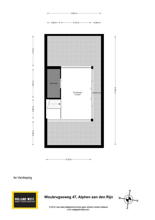 De Meetinstructie is gebaseerd op de NEN2580. De Meetinstructie is bedoeld om een meer eenduidige manier van meten toe te passen voor het geven van een indicatie van de gebruiksoppervlakte. De Meetinstructie sluit verschillen in meetuitkomsten niet volledig uit, door bijvoorbeeld interpretatieverschillen, afrondingen of beperkingen bij het uitvoeren van de meting. Het nen2580 meetrapport wordt aan de koopakte gekoppeld. Deze informatie is door ons met de nodige zorgvuldigheid samengesteld. Onzerzijds wordt echter geen enkele aansprakelijkheid aanvaard voor enige onvolledigheid, onjuistheid of anderszins, dan wel de gevolgen daarvan. Alle opgegeven maten en oppervlakten zijn indicatief.